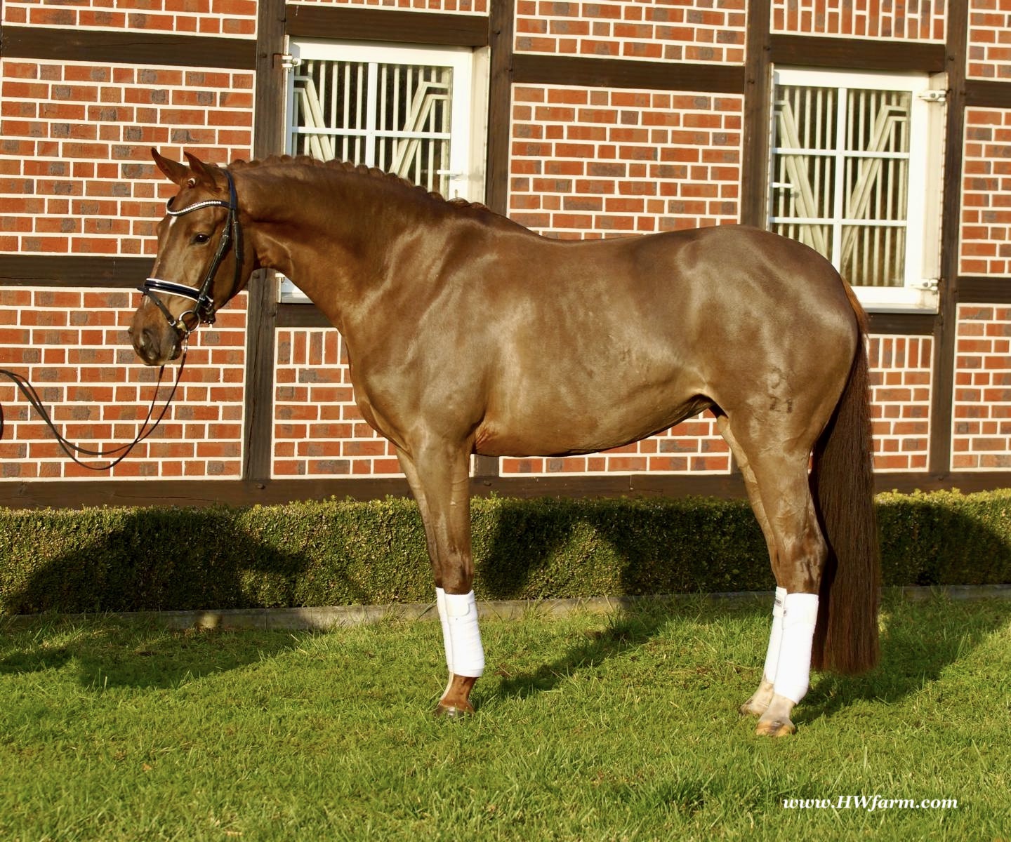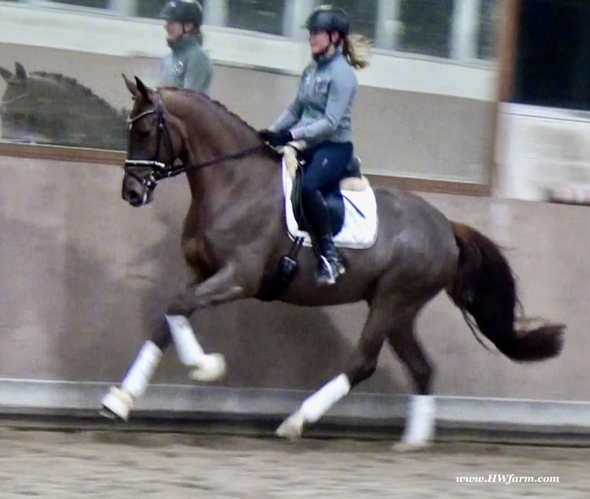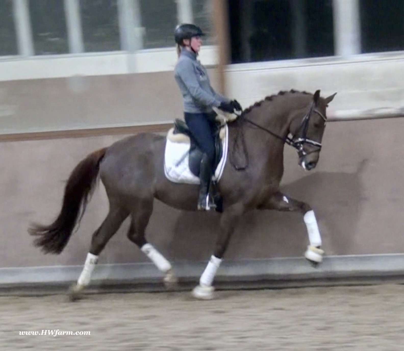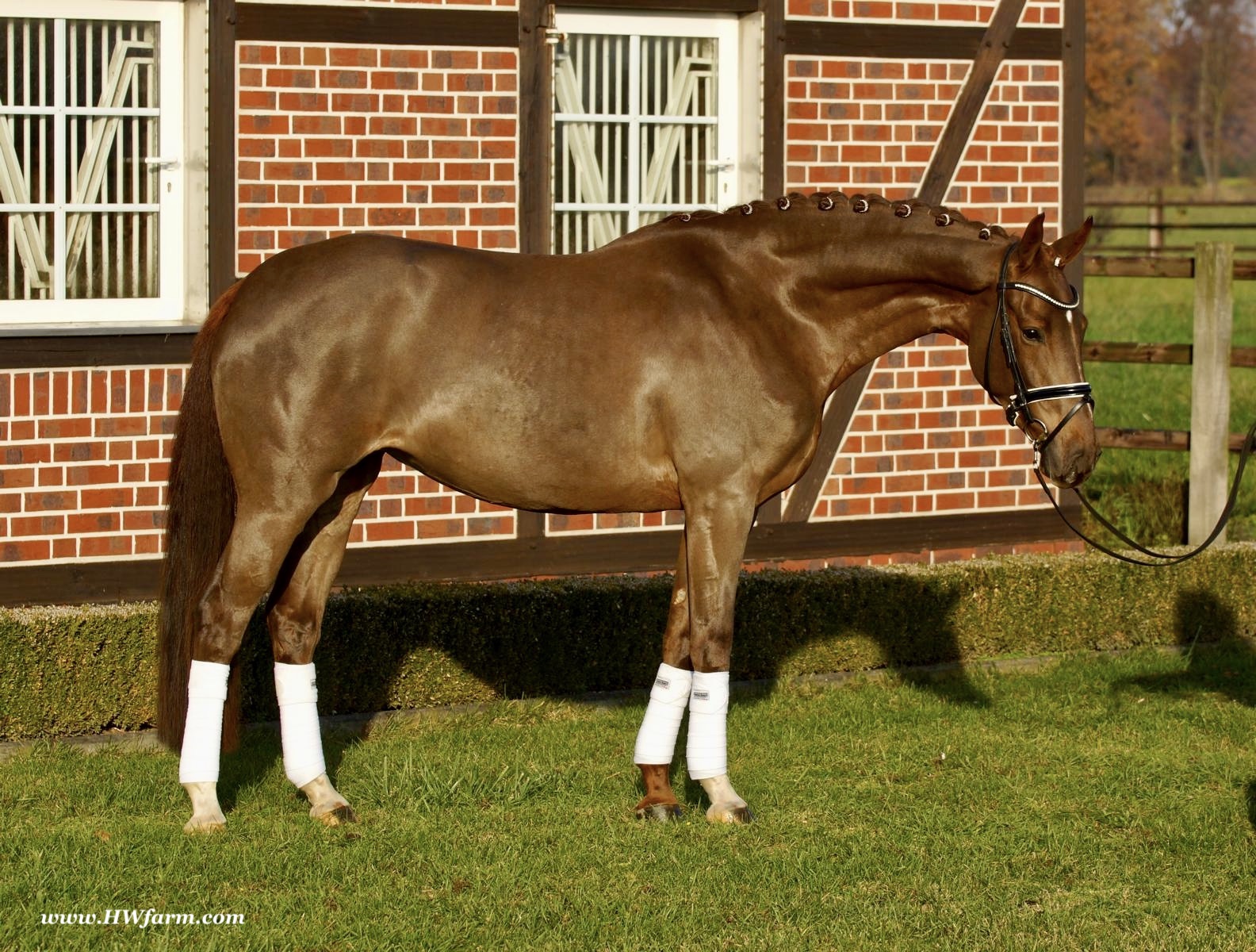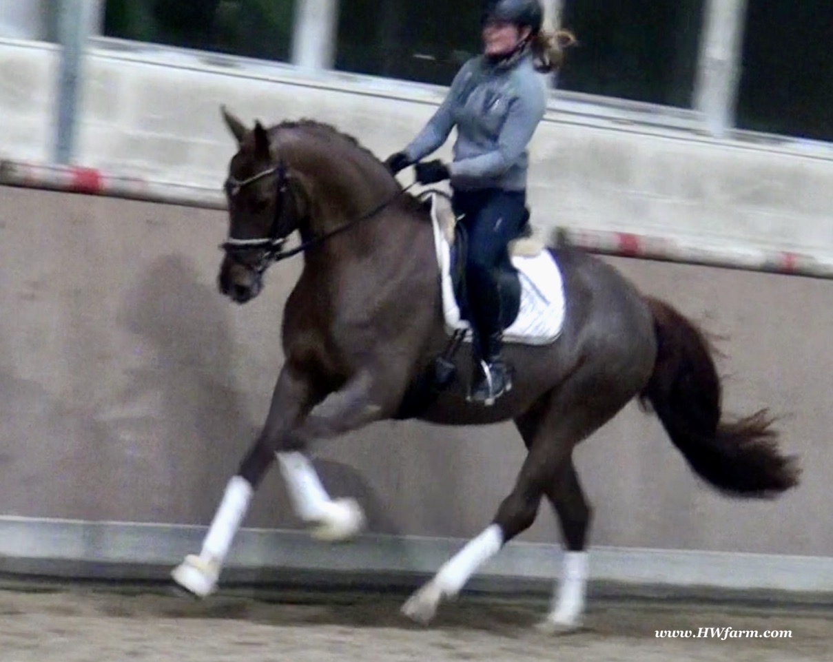 Vogue HW, liver chestnut Hanoverian mare, by Veneno/Feedback, born in 2016, standing approximately 167 cm or 16.2 hands. Vogue HW is a clone to her sire Veneno. His sire Vitalis was the 2009 reserve champion at his licensing in Münster-Handorf, then went to the State Stud Warendorf and enjoyed great popularity among breeders. Already with his first first crop of foals made the KWPN stallion clear that he is a sire of special quality. 2012 Vitalis was sold in the US and moved "across the pond". 2013 took the Vivaldi-son under the saddle of Charlotte Jorst (USA) at the World Championships for six year old dressage horses in Verden in part and reached the final. Vitalis' sons are especially attractive. Veneno has what it takes to also be an important sire, because even on the maternal side his pedigree has much to offer. Among the successful dressage horses of the parent strain in the S class includes Adrian v. Akzent II (until Interm. under Vanessa Stehl), Bergerac v. Bergamon (up Interm. I under Ursula Kufner), Bosun v. Bergamon (under Yvonne Tilke), effect v. Ecuador xx (under Reinhard Schönert), Joy of Jazz v. Jazz (under Christine Kühn), Pandora v. Rivero II (under Jessica Schneeberger) and Rubina v. Rubirando (up Interm. I under Frank Friend). Numerous licensed stallions out of this dam line produced:.. Copperfield v Classiker, Richard the Lionheart by Rubinstein I (up to Grand Prix de Dressage successful and team silver at the European Championships for young dressage riders 2009, Friederike Hahn), Radclife v Rivero II (successful up. S-dressage with Goetz Brinkmann), Sir Caramello v. Sir Donnerhall I, Spirit of the Age OLD v. Stony (international Grand Prix victory by Bernadette Brune). His mother, St.Pr.St. Diamond Lady (Diamond Hit - gentry - Argentinus - Furioso), previously brought forth seven children and all of them are very successful and promising. Her first offspring was awarded the title of state premium mare and was sold to South Germany. Diamond Ladie's second successor, a black stallion from Dresden Mann, is a highly successful dressage horse in England. Vogue HW's dam sire is Feedback. Starting with his outstanding performance at the 2009 NRW licensing where he was crowned reserve champion, Feedback has called a great deal of attention to his qualities as a sire and sport horse. In 2012, he sired champion and gold medal foals at foal shows in Rhineland and Westphalia. At auctions, his offspring were sought after as well. Out of a Grafenstolz mare, he produced the top priced horse (20,000 Euros) in Rhineland-Palatinate-Saar. In 2012, with his rider Mathias Bouten he won novice and elementary dressage tests with scores up to 9.2 points. Feedback also qualified for the German Young Horse Championships and was nominated for the World Championships of the five year old dressage horses in Verden. In 2013, he was placed and victorious in elementary and medium young horse dressage tests. In 2014, Feedback placed for the first time in advanced level dressage tests. His sire, Fidertanz, has presented many top foals, more than 45 licensed sons, and two German Young Horse Champions. He is also the sire of the German Young Horse Champion, Fürst Fohlenhof. Feedback's dam, premium mare Scarlett, was first runner-up in her ring. She is the dam of the premium stallion Fiderhit, St.Pr.St. Fleet Street (who is the dam of Quotenkönig, second runner-up of the NRW-licensing in 2011) and of more champion foals. Feedback's dam sire, Sandro Hit, is the sire of the record-breaking mare Poetin and of champion stallion Stedinger, not to mention numerous well-known top stallions and dressage horses worldwide. The Holstein C- and L-lines perfect the pedigree in the third and fourth generations. The successful dam line produced "Dahlhoff" (by De Niro) as well who was a premium stallion of the NRW-licensing in 2012 and half brother of Quotenkönig. Vogue HW herself, is an extremely fancy lady. Beauty, elasticity, and suspension outline this stunning creature. Three rhythmic, big, expressive gaits - that will blow any and all competition out of the park. She is fabulous and easy to ride, super nice to sit and light in the bridle. Ideal for a AA, young rider, or professional alike, everybody wants fun! Vogue HW, equipped with phenomenal competition genes, is a horse of amazing quality and super fancy mover who knows to impress due to her type and work ethic. This stunning horse has it all, big stallion neck (even as a girl!), a total dream come true. Her hooves barley touch the ground. She loves to please her handler and rider and is a fast learner. This lady eagerly works under saddle and does an excellent job, with her free shoulder and huge suspension, she swings nicely through her back. She is breathtaking to watch in the dressage arena and with her quick, far reaching hind leg, passage and piaffe will come naturally to her. Vogue HW is supple and has a ton of air time. This extremely talented mare has true FEI potential, 2nd level work comes super easy to her. With her great ride ability, she makes a lasting impression on whom ever sees her. She loves her personal grooming time and puts her head right in your lap, striving for attention and searching for treats. With this horse, you will be the star in FEI classes and at clinics, the judges and onlookers will remember her where ever she goes. Her bloodlines are very much sought after, she is your ticket to the top! Vogue HW is used to go in the hot walker, loves her shower and solarium time. Stands for the farrier, loads and appreciates grooming time. She is a superb Young Horse Candidate, just what the judges are looking for and will make her way up the levels. X-rays on file! video clip!!! Please contact Irene: Irene@HWfarm.com 239-772-7722 (ask for Irene, managing member of HorseSales LLC) We take pride in answering every e-mail right away (at least at the same day) and to return each call. If you don't get a reply - please try again, our 