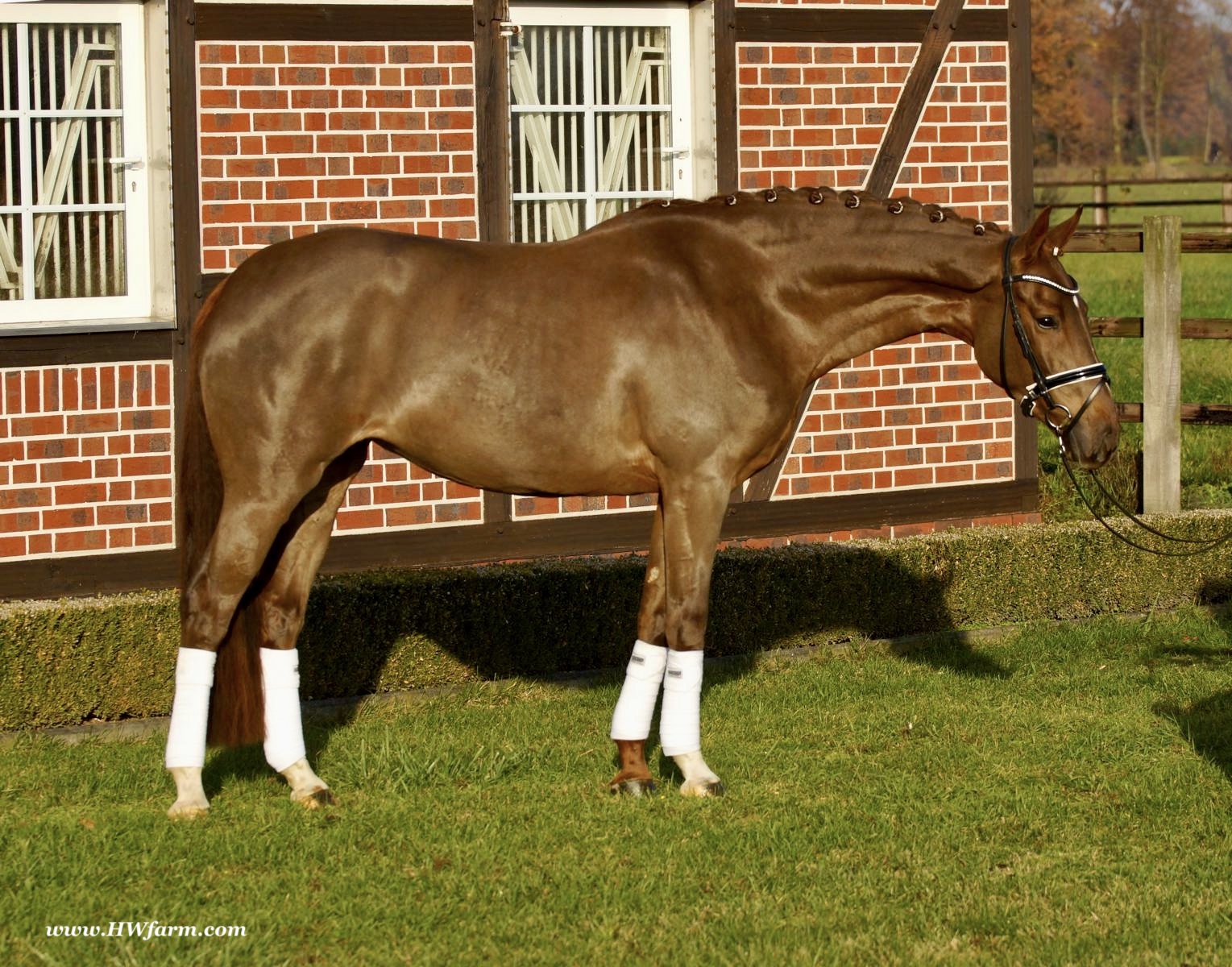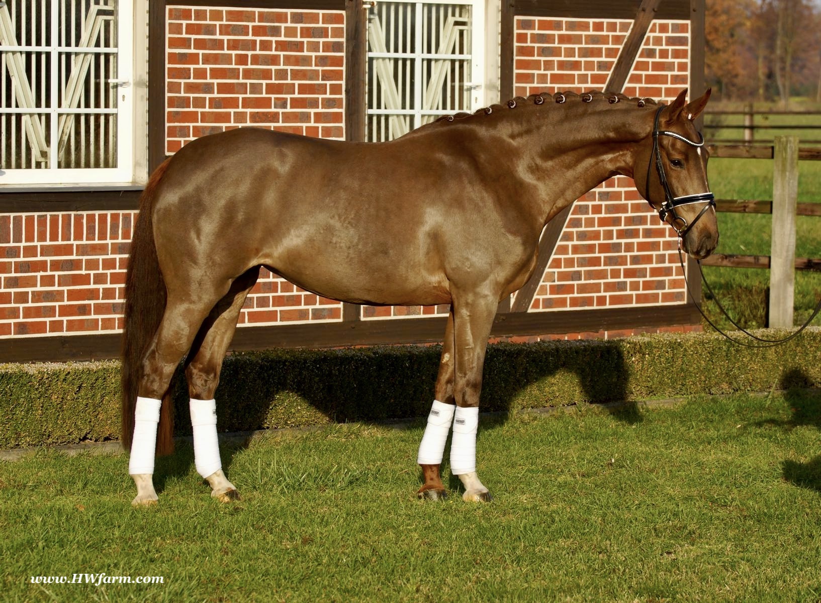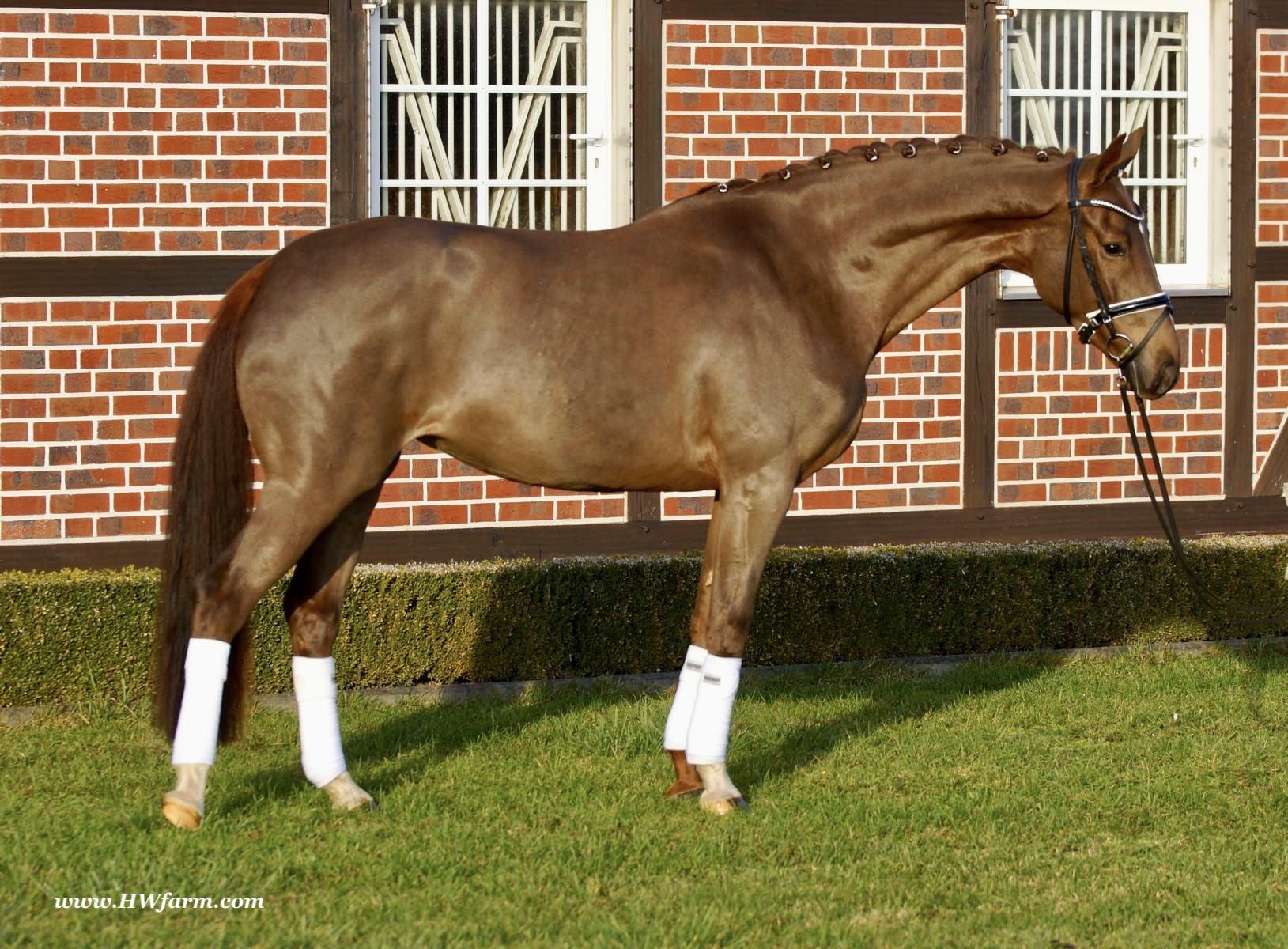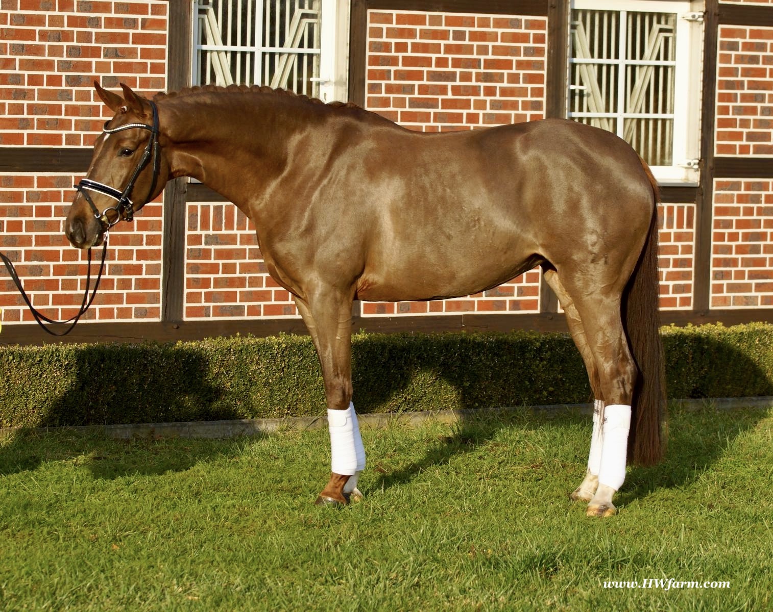 Vogue HW, liver chestnut Hanoverian mare, by Veneno/Feedback, born in 2016, standing approximately 167 cm or 16.2 hands. Vogue HW is a clone to her sire Veneno. His sire Vitalis was the 2009 reserve champion at his licensing in Münster-Handorf, then went to the State Stud Warendorf and enjoyed great popularity among breeders. Already with his first first crop of foals made the KWPN stallion clear that he is a sire of special quality. 2012 Vitalis was sold in the US and moved "across the pond". 2013 took the Vivaldi-son under the saddle of Charlotte Jorst (USA) at the World Championships for six year old dressage horses in Verden in part and reached the final. Vitalis' sons are especially attractive. Veneno has what it takes to also be an important sire, because even on the maternal side his pedigree has much to offer. Among the successful dressage horses of the parent strain in the S class includes Adrian v. Akzent II (until Interm. under Vanessa Stehl), Bergerac v. Bergamon (up Interm. I under Ursula Kufner), Bosun v. Bergamon (under Yvonne Tilke), effect v. Ecuador xx (under Reinhard Schönert), Joy of Jazz v. Jazz (under Christine Kühn), Pandora v. Rivero II (under Jessica Schneeberger) and Rubina v. Rubirando (up Interm. I under Frank Friend). Numerous licensed stallions out of this dam line produced:.. Copperfield v Classiker, Richard the Lionheart by Rubinstein I (up to Grand Prix de Dressage successful and team silver at the European Championships for young dressage riders 2009, Friederike Hahn), Radclife v Rivero II (successful up. S-dressage with Goetz Brinkmann), Sir Caramello v. Sir Donnerhall I, Spirit of the Age OLD v. Stony (international Grand Prix victory by Bernadette Brune). His mother, St.Pr.St. Diamond Lady (Diamond Hit - gentry - Argentinus - Furioso), previously brought forth seven children and all of them are very successful and promising. Her first offspring was awarded the title of state premium mare and was sold to South Germany. Diamond Ladie's second successor, a black stallion from Dresden Mann, is a highly successful dressage horse in England. Vogue HW's dam sire is Feedback. Starting with his outstanding performance at the 2009 NRW licensing where he was crowned reserve champion, Feedback has called a great deal of attention to his qualities as a sire and sport horse. In 2012, he sired champion and gold medal foals at foal shows in Rhineland and Westphalia. At auctions, his offspring were sought after as well. Out of a Grafenstolz mare, he produced the top priced horse (20,000 Euros) in Rhineland-Palatinate-Saar. In 2012, with his rider Mathias Bouten he won novice and elementary dressage tests with scores up to 9.2 points. Feedback also qualified for the German Young Horse Championships and was nominated for the World Championships of the five year old dressage horses in Verden. In 2013, he was placed and victorious in elementary and medium young horse dressage tests. In 2014, Feedback placed for the first time in advanced level dressage tests. His sire, Fidertanz, has presented many top foals, more than 45 licensed sons, and two German Young Horse Champions. He is also the sire of the German Young Horse Champion, Fürst Fohlenhof. Feedback's dam, premium mare Scarlett, was first runner-up in her ring. She is the dam of the premium stallion Fiderhit, St.Pr.St. Fleet Street (who is the dam of Quotenkönig, second runner-up of the NRW-licensing in 2011) and of more champion foals. Feedback's dam sire, Sandro Hit, is the sire of the record-breaking mare Poetin and of champion stallion Stedinger, not to mention numerous well-known top stallions and dressage horses worldwide. The Holstein C- and L-lines perfect the pedigree in the third and fourth generations. The successful dam line produced "Dahlhoff" (by De Niro) as well who was a premium stallion of the NRW-licensing in 2012 and half brother of Quotenkönig. Vogue HW herself, is an extremely fancy lady. Beauty, elasticity, and suspension outline this stunning creature. Three rhythmic, big, expressive gaits - that will blow any and all competition out of the park. She is fabulous and easy to ride, super nice to sit and light in the bridle. Ideal for a AA, young rider, or professional alike, everybody wants fun! Vogue HW, equipped with phenomenal competition genes, is a horse of amazing quality and super fancy mover who knows to impress due to her type and work ethic. This stunning horse has it all, big stallion neck (even as a girl!), a total dream come true. Her hooves barley touch the ground. She loves to please her handler and rider and is a fast learner. This lady eagerly works under saddle and does an excellent job, with her free shoulder and huge suspension, she swings nicely through her back. She is breathtaking to watch in the dressage arena and with her quick, far reaching hind leg, passage and piaffe will come naturally to her. Vogue HW is supple and has a ton of air time. This extremely talented mare has true FEI potential, 2nd level work comes super easy to her. With her great ride ability, she makes a lasting impression on whom ever sees her. She loves her personal grooming time and puts her head right in your lap, striving for attention and searching for treats. With this horse, you will be the star in FEI classes and at clinics, the judges and onlookers will remember her where ever she goes. Her bloodlines are very much sought after, she is your ticket to the top! Vogue HW is used to go in the hot walker, loves her shower and solarium time. Stands for the farrier, loads and appreciates grooming time. She is a superb Young Horse Candidate, just what the judges are looking for and will make her way up the levels. X-rays on file! video clip!!! Please contact Irene: Irene@HWfarm.com 239-772-7722 (ask for Irene, managing member of HorseSales LLC) We take pride in answering every e-mail right away (at least at the same day) and to return each call. If you don't get a reply - please try again, our 