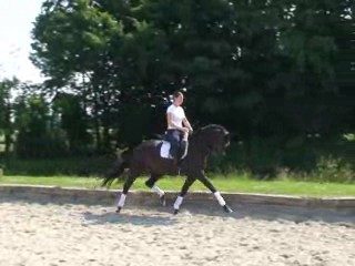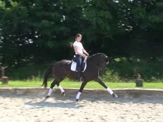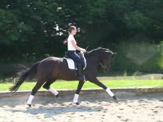 Walk of Fame, black Hanoverian mare by Wolkenstein II / Donnerhall, born in 2004, standing approximately 15.3 hands. Walk of Fame is a sensational mover and she is already going very nicely under saddle. This mare will for sure make her way up the levels with a very active hind leg and a flashy front leg with lots and lots of freedom in the shoulder, a typical Wolkenstein II daughter, with a nice touch of air time to her movement. In addition she carries the valuable and more than famous Donnerhall blood, you’ll buy the most desired bloodlines in the dressage and breeding field. She is just beautiful, with her elegance and way above average gaits. Her pictures and videos do not do her justice, she is much better then what you can see with your bare eye here. She is under saddle since some months and very willing to learn and her ride ability is the best. She is in daily training and is a definite FEI prospect. She is uncomplicated with a super character and an even keeled temperament, according to the seller, everybody can ride her. She will be suitable for a young rider, great ladies horse, amateur or professional rider alike, she is the quality that everybody wishes to own. Rider her now and breed her later or do an embryo transfer with her and enjoy both worlds at once. Super bloodlines, looks and brains are a price less combination for success. Walk of Fame is easy to handle, stands quiet for the farrier and loves her work sessions. Buy her now and start collecting the ribbons for yourself. She is well behaved. You can enjoy her every day and she will be the same over and over again but with enough power to be fun and to go up the levels. She is forward without being hot and loves to learn new things all the time. She remembers where she left off the day before and continues to learn from there. Recently vetted with x-rays and clinical examination! Please contact Irene: Irene@HWfarm.com 239-772-7722 (ask for Irene, managing member of Horse Sales LLC)