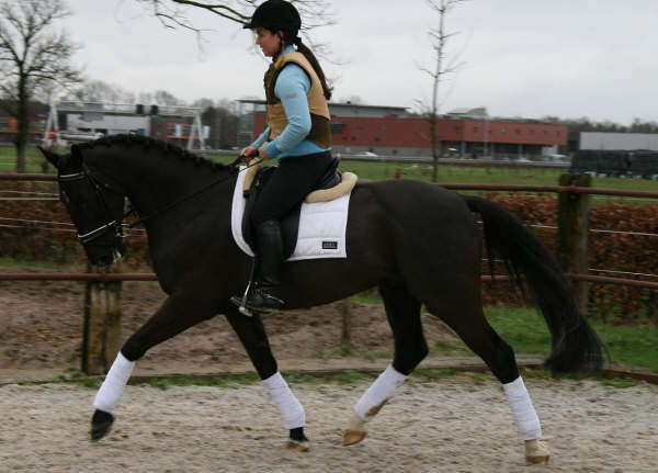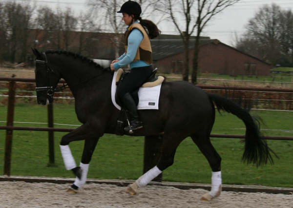 Warner, black KWPN gelding by Negro (Ferro)/Joost (Keur)/Pastrocio (Keur/Preferent), born 2003, standing approximately16.3 hands. Warner is a horse you can trust and have fun with.