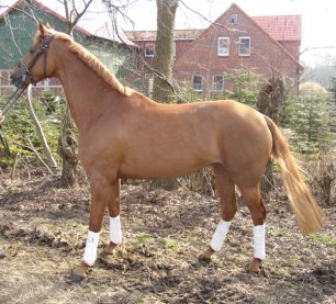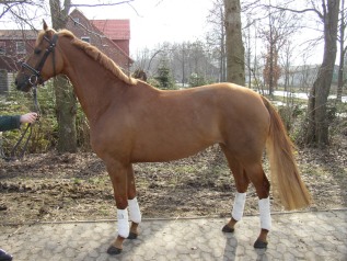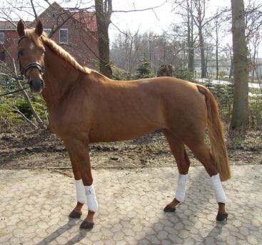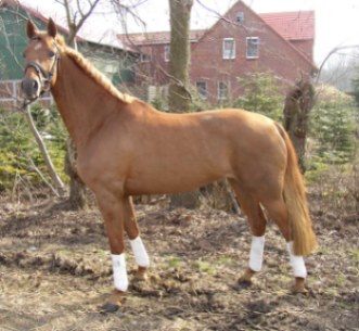 Weltissa, chestnut Hanoverian mare by Weltissimo/Akzent, born in 2002, standing 16.1 hands. Weltissa is a very beautiful smaller