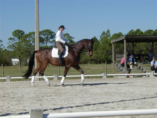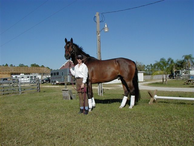 Wiener Waltzer (Baer) is a bay Hanoverian gelding by Weltmeyer, born in 1989, standing 17.1 hands. Baer was a “custom order”,