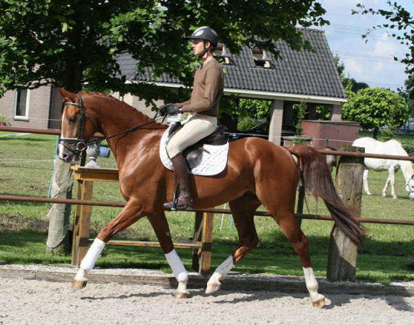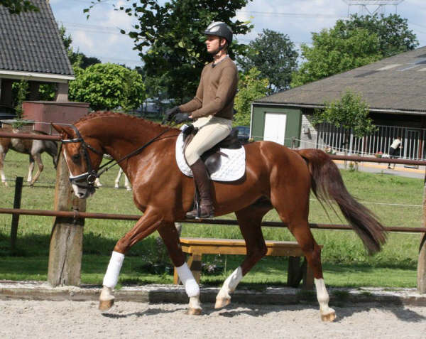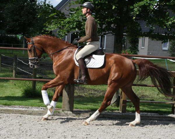 Wino, chestnut gelding by Lennard/Bredero/Formateur/Amor, born 2003, standing approximately 16.3 hands. Wino is a true partner for all disciplines with a great attitude. You will have fun with this boy, as his work ethic is really great. He is very willing and does come with great ride ability. Stunning to look at and well mannered he’ll be on the fast track into your heart. He is just green broke and already doing very well under saddle. He is a talented mover with great gaits, good use of hind end and a nice reach with the front and already a good balance. He shows a lot of promise. Wino is a sweet horse, thriving for attention and he was just recently gelded. He is ready for his new rider at anytime. Pick your discipline and train him to your likings, everything does come easy to this boy. You will see him in the video clips, the very first time over jumps – he is doing a great job, check him out! Vetted with x-rays from August 2006, new vetting on request. Please contact Irene: Irene@HWfarm.com 239-772-7722 (ask for Irene, managing member of Horse Sales LLC)
