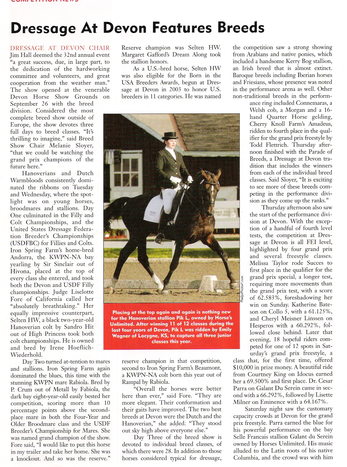 Champion, the most recent being Hilton Farm’s Elite Stallion Liberty