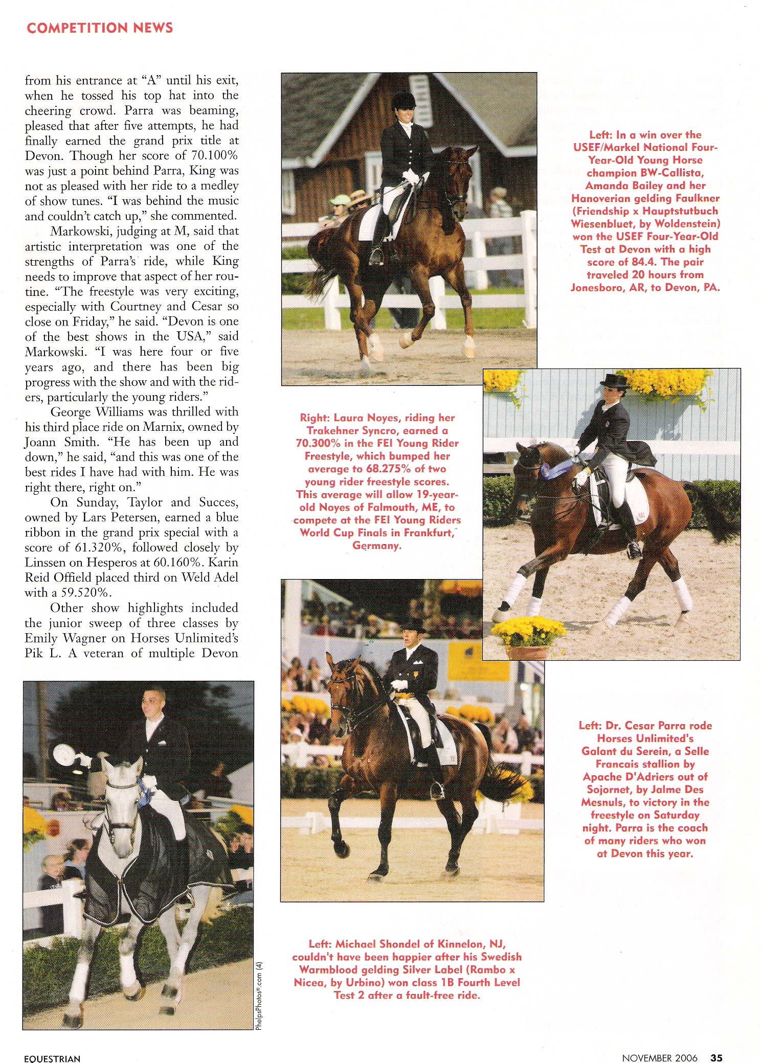 exciting, cold and windy Ocala Dressage show, January 2006: