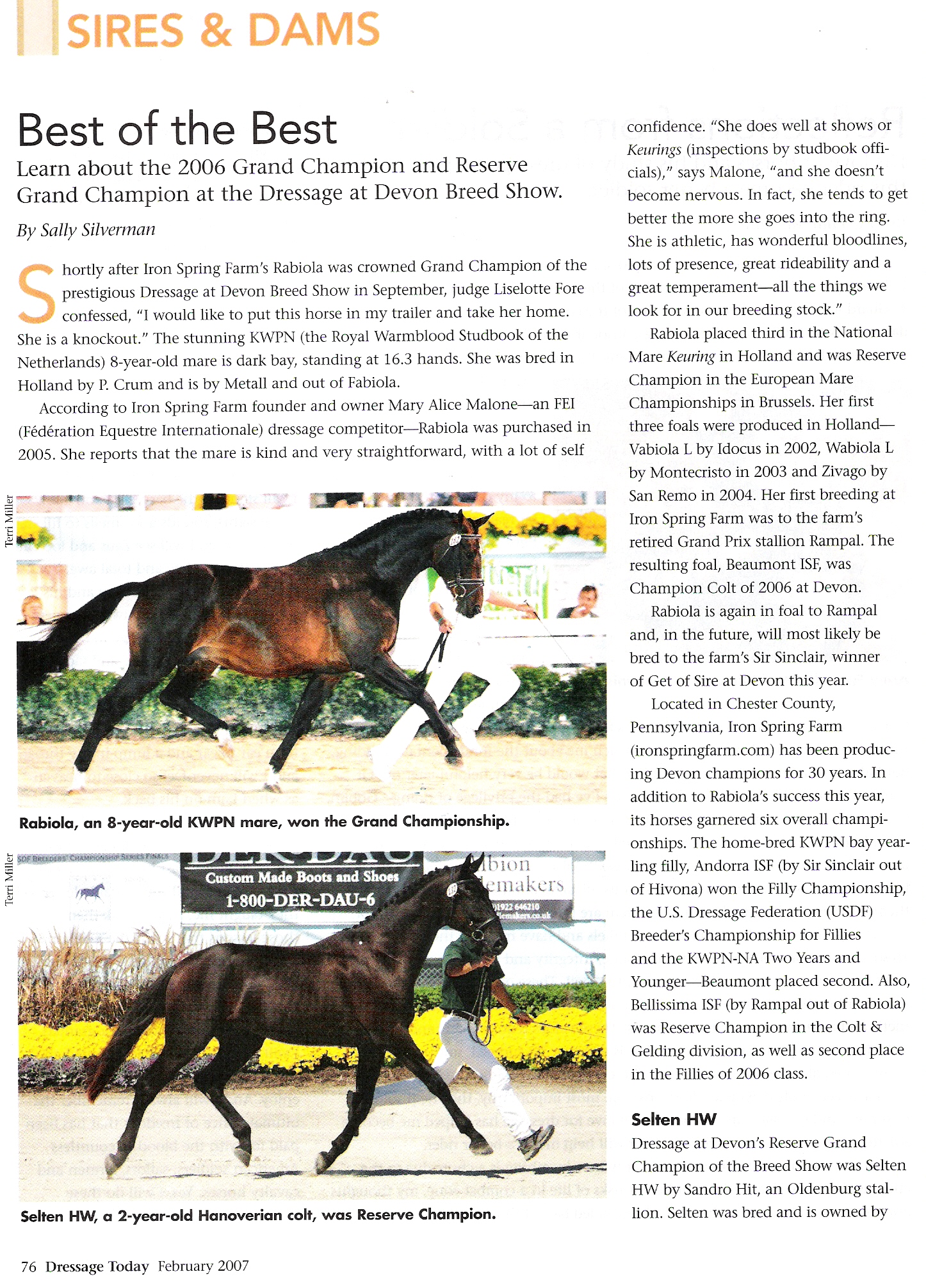 Elite Mare. Next year we plan to tackle the performance test. The judges