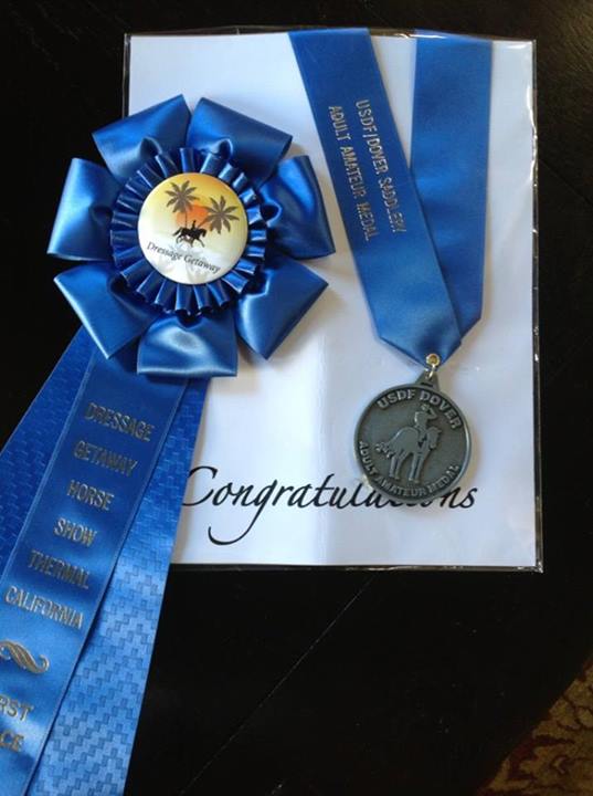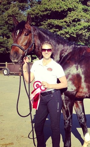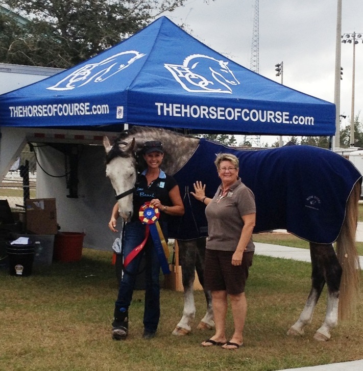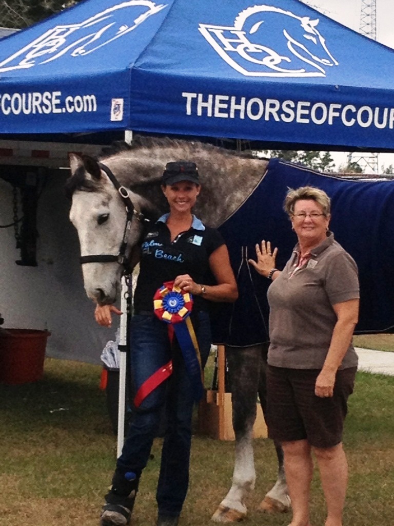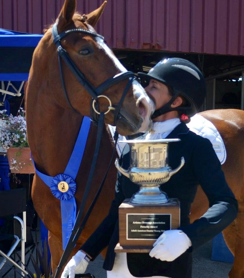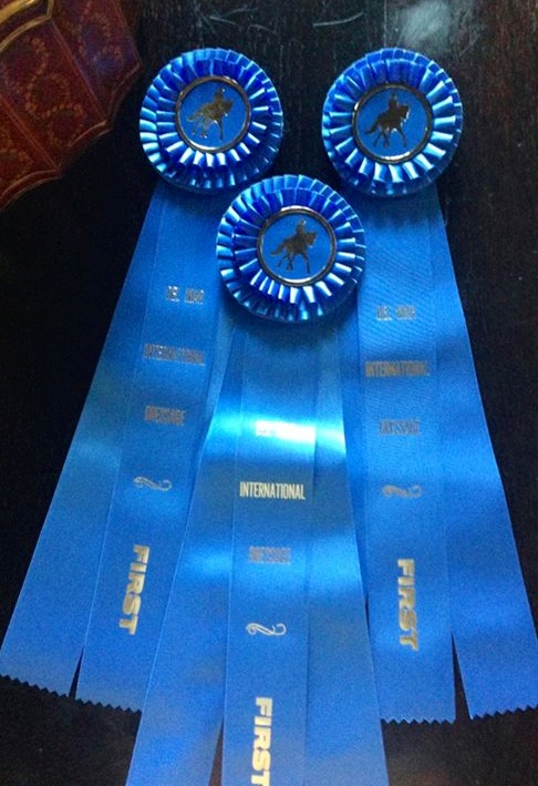 celebrated a victory in a huge field of high quality horses, dressage class A,
