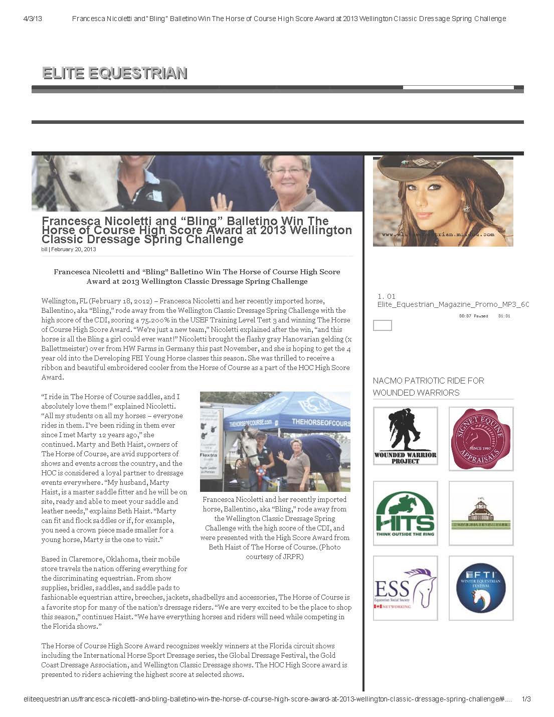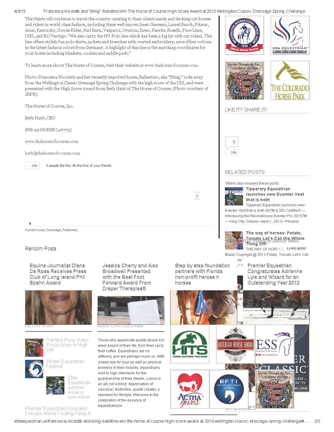 HW, aka Balletino or barn name Bling ;-) High Point of the show,