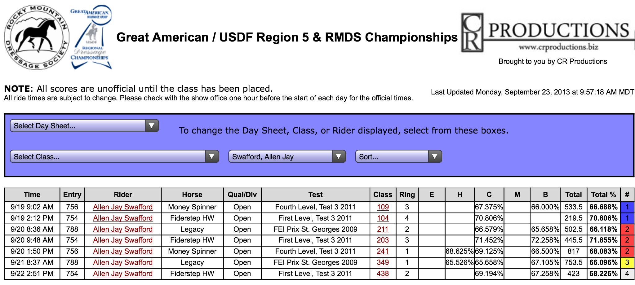 Champion at Dressage Regionals Winner, Prix St. Georges jackpot!