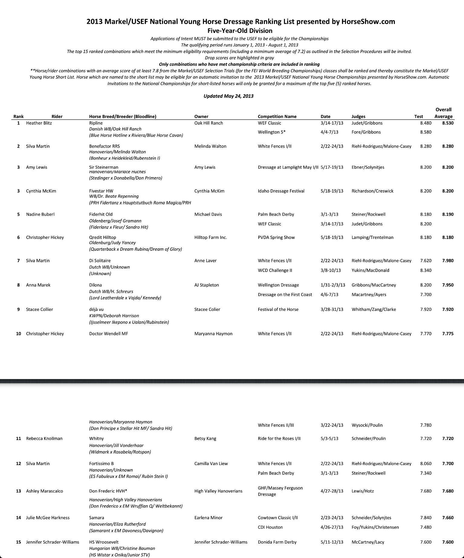 Update: By Nadine Schwartsman FiveStar got an 8.2 in the Markel Qualifier FEI 5