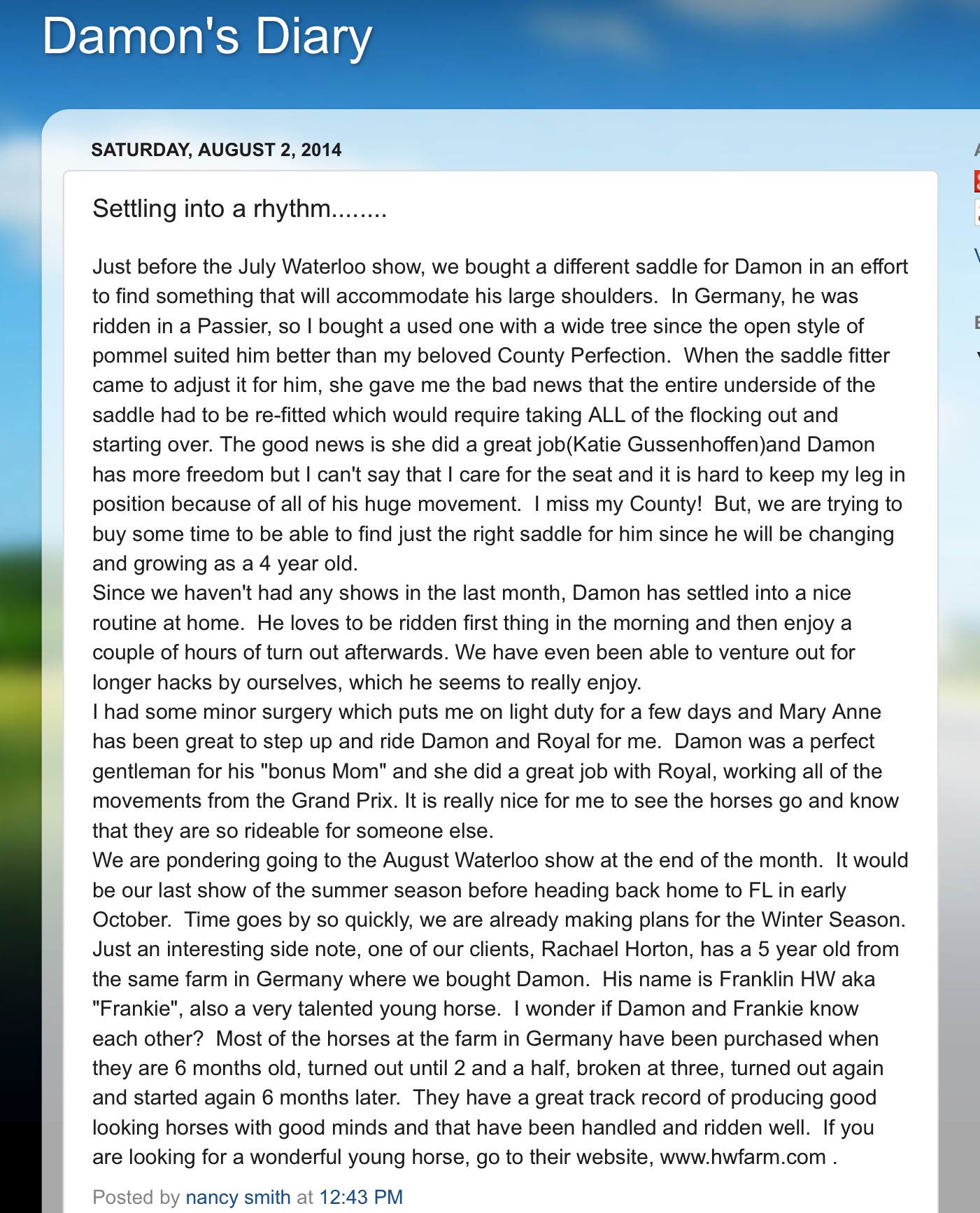 HW), from you at Jennifer Williams' barn 2 years ago as a 4 yr old. He