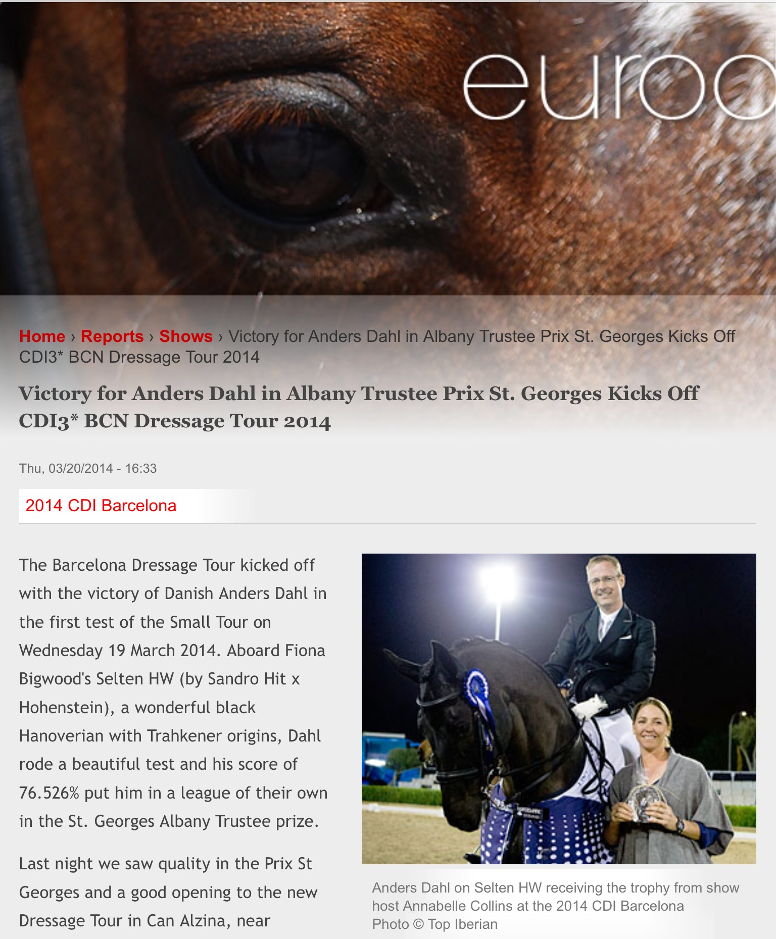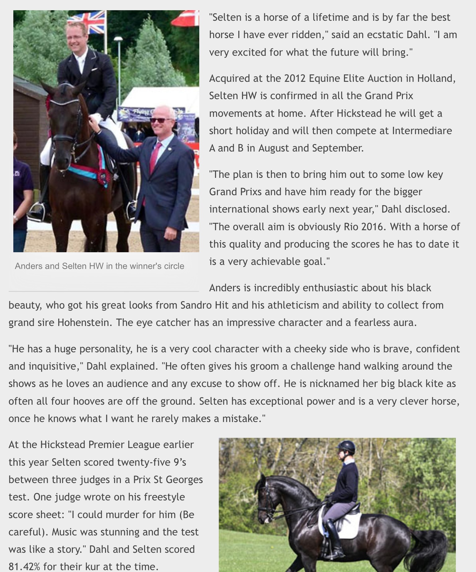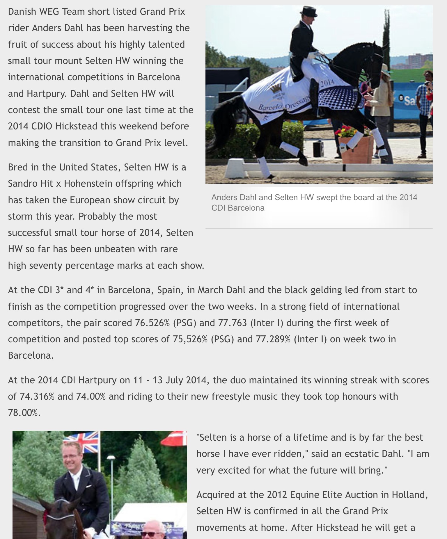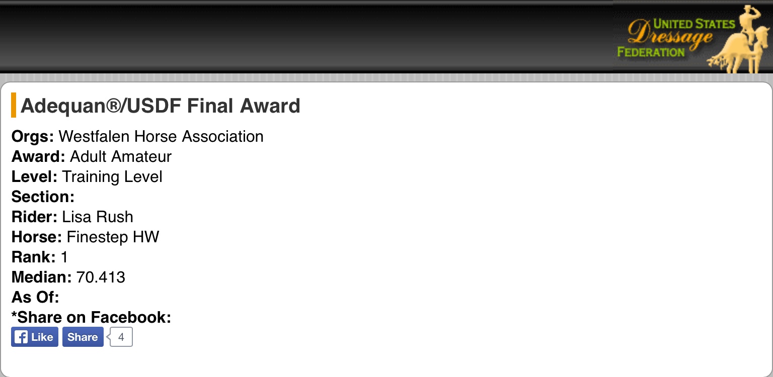 plaquette. Fin was 2014 Open and AA Westfalen Training Level Champion.