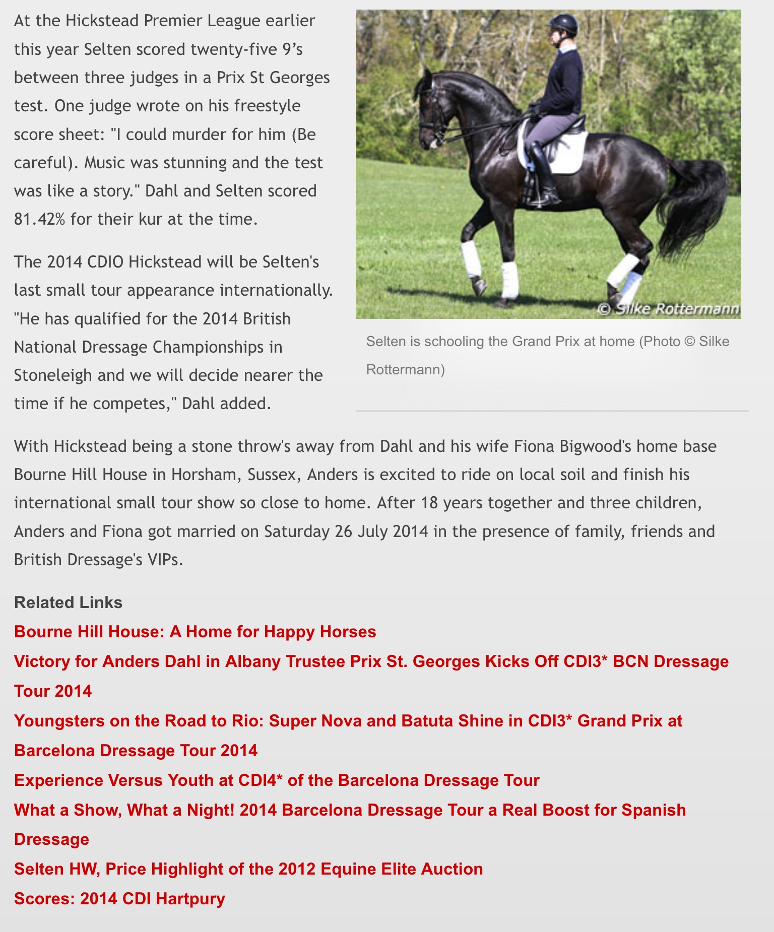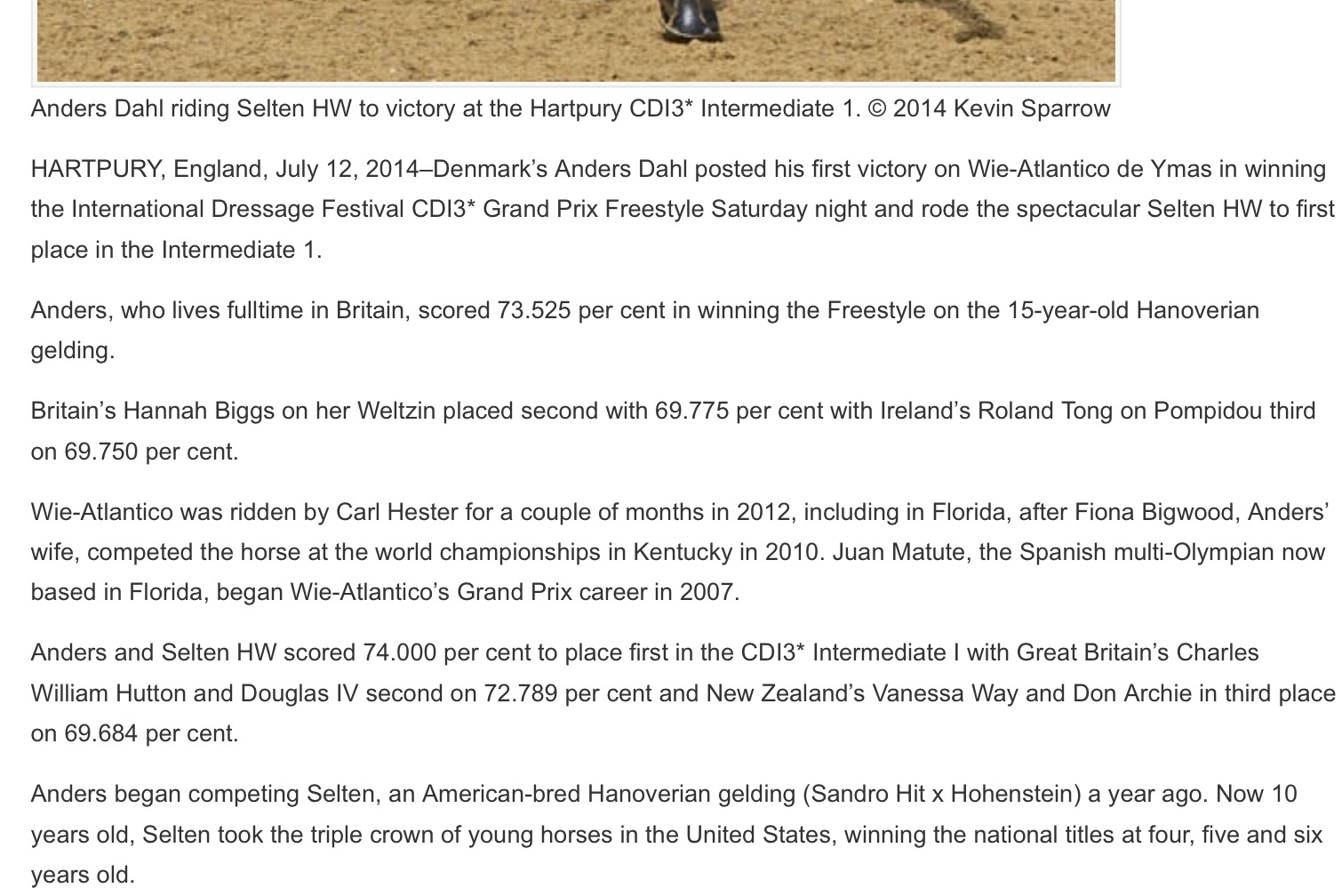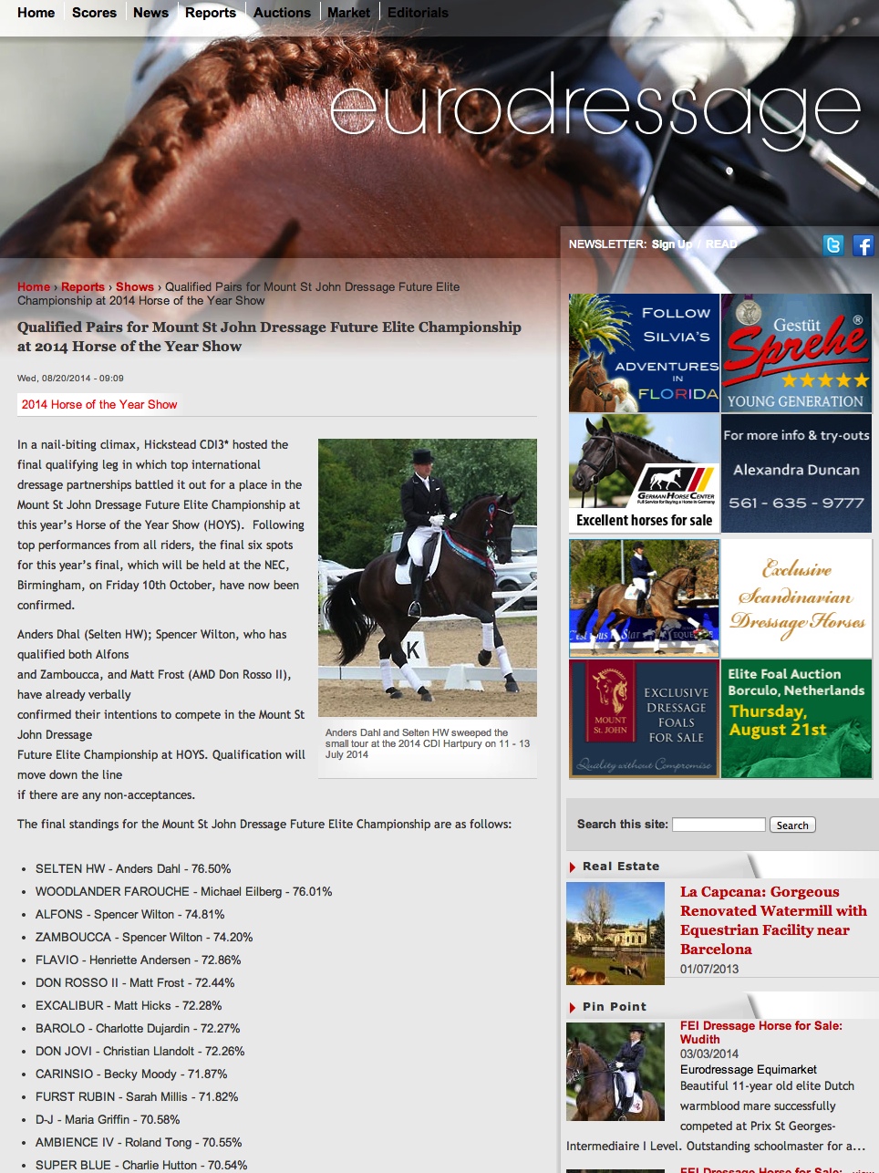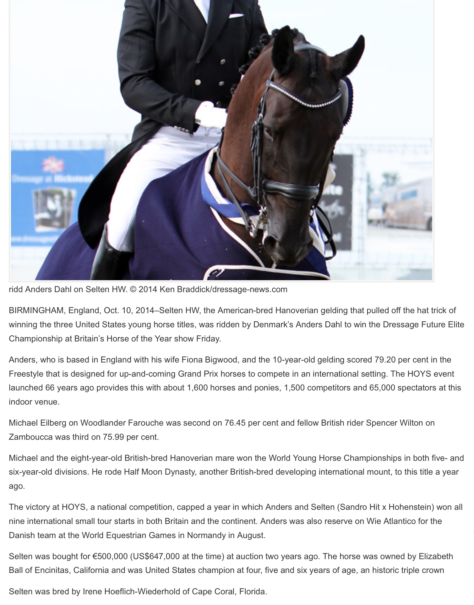 plaquette. Fin was 2014 Open and AA Westfalen Training Level Champion.