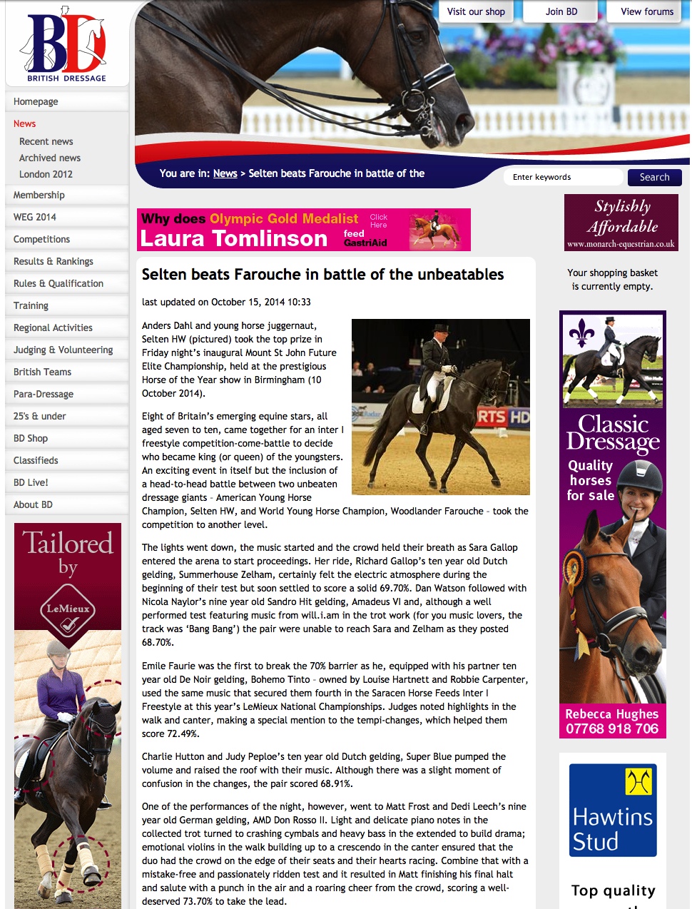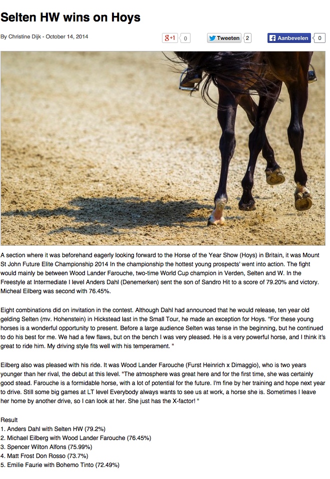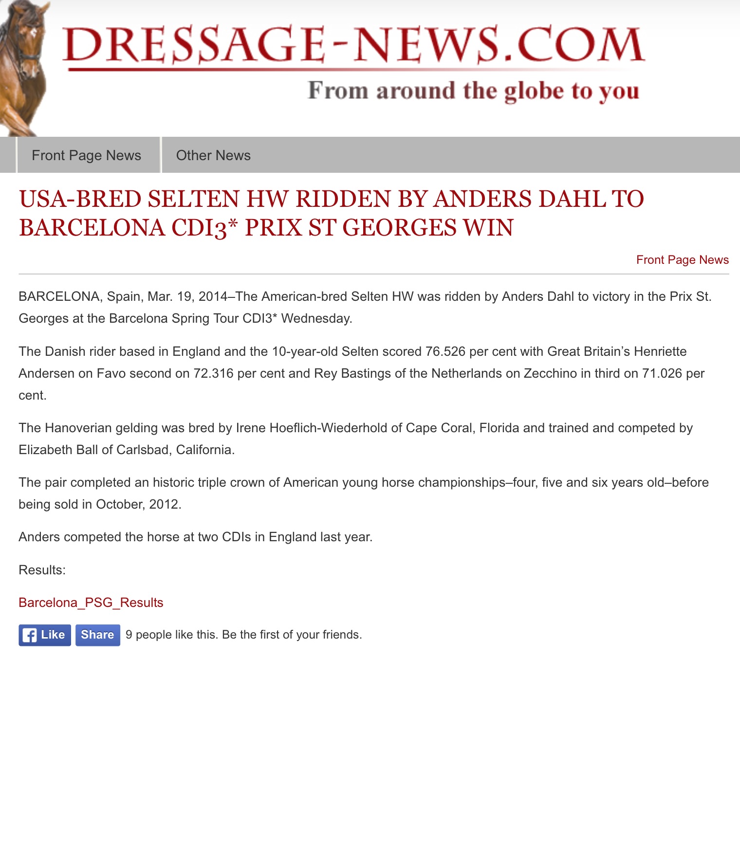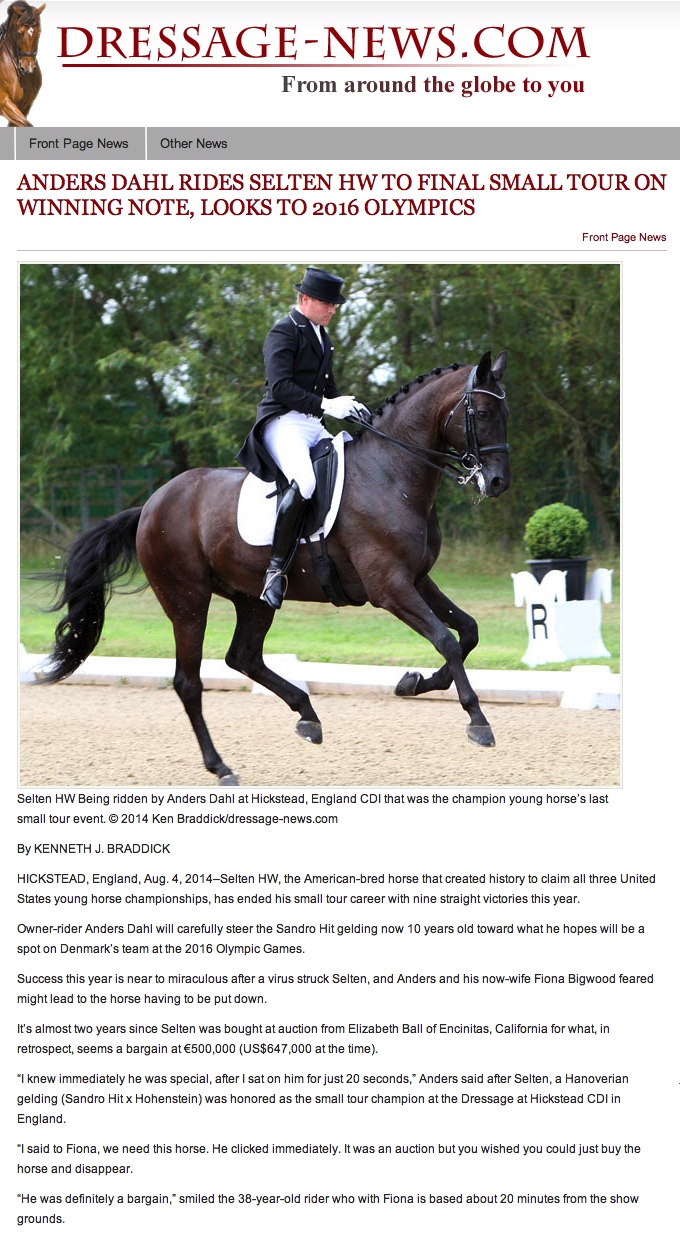 plaquette. Fin was 2014 Open and AA Westfalen Training Level Champion.