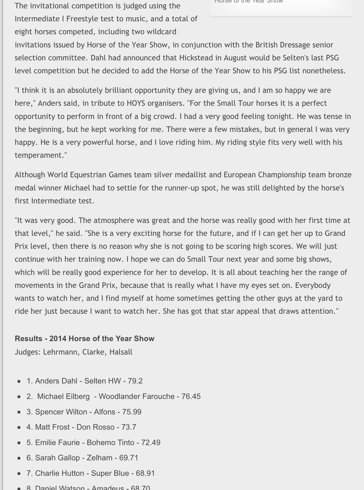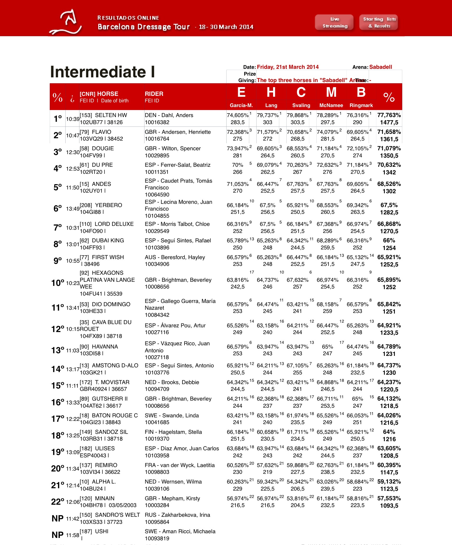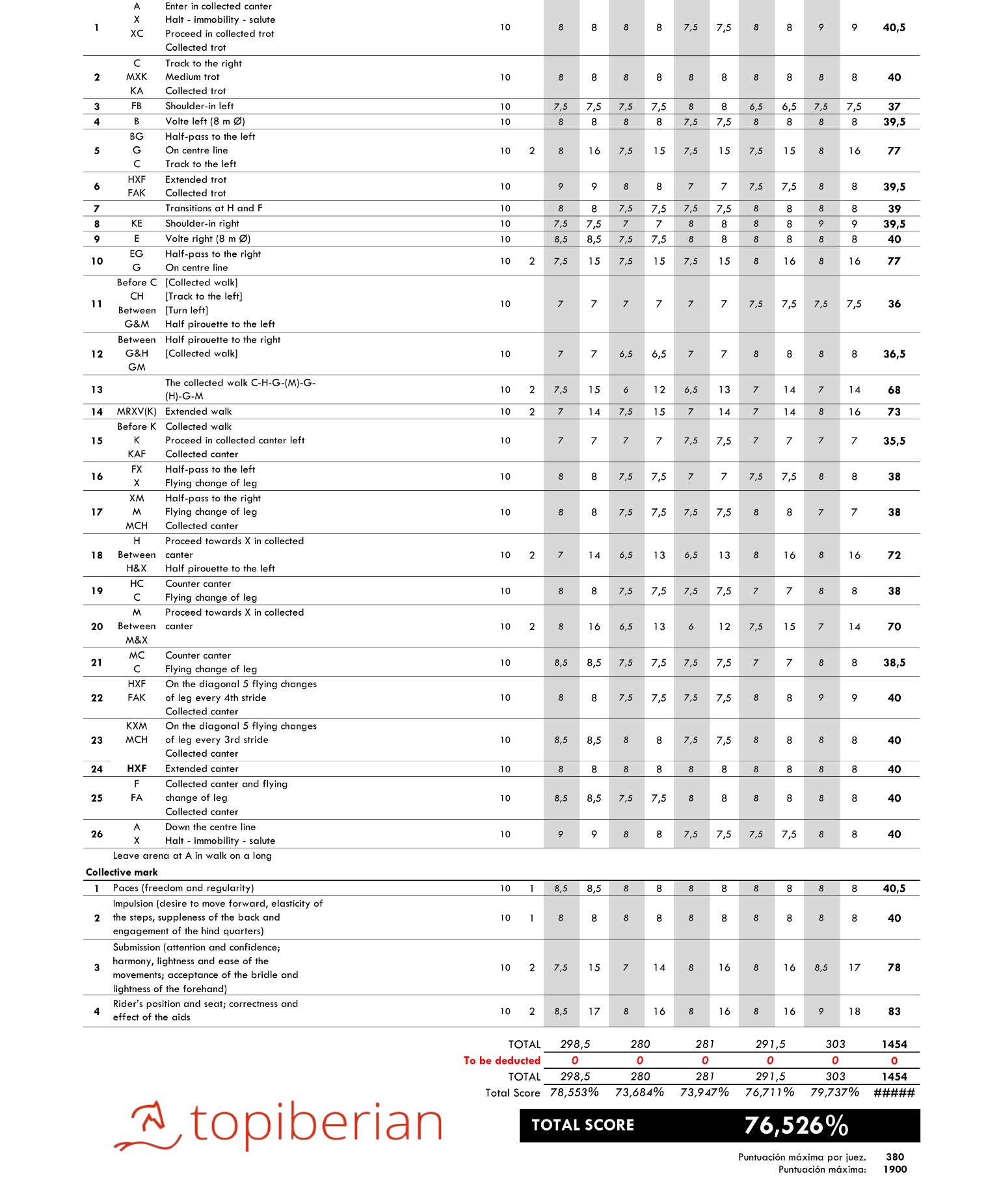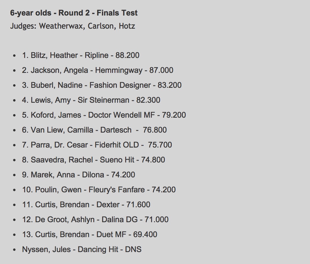 Lamplight with scores of 8.16 and 8.28. > I have been training him