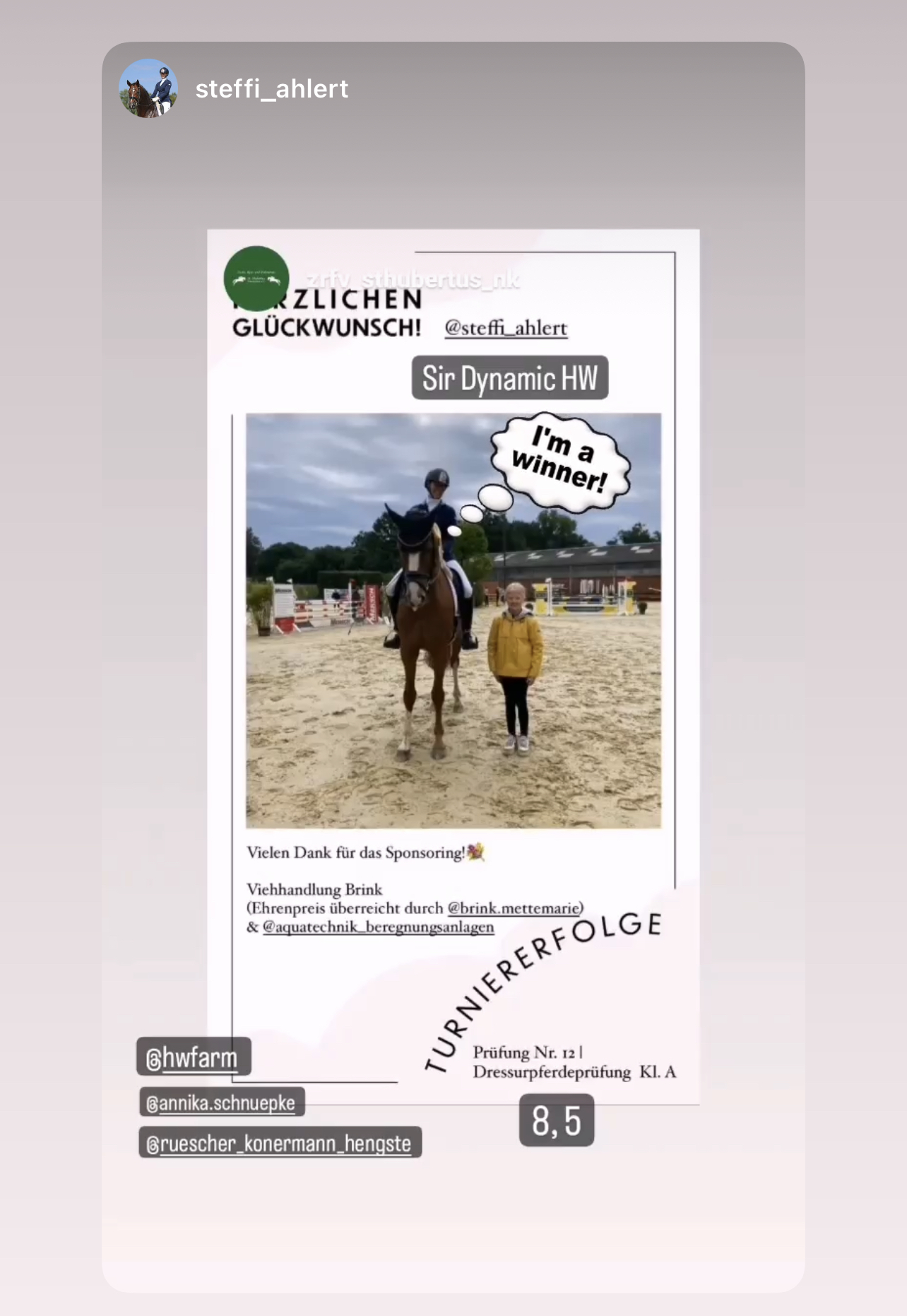 is a stunning and successful HW horse, raised by Irene Hoeflich-Wiederhold's