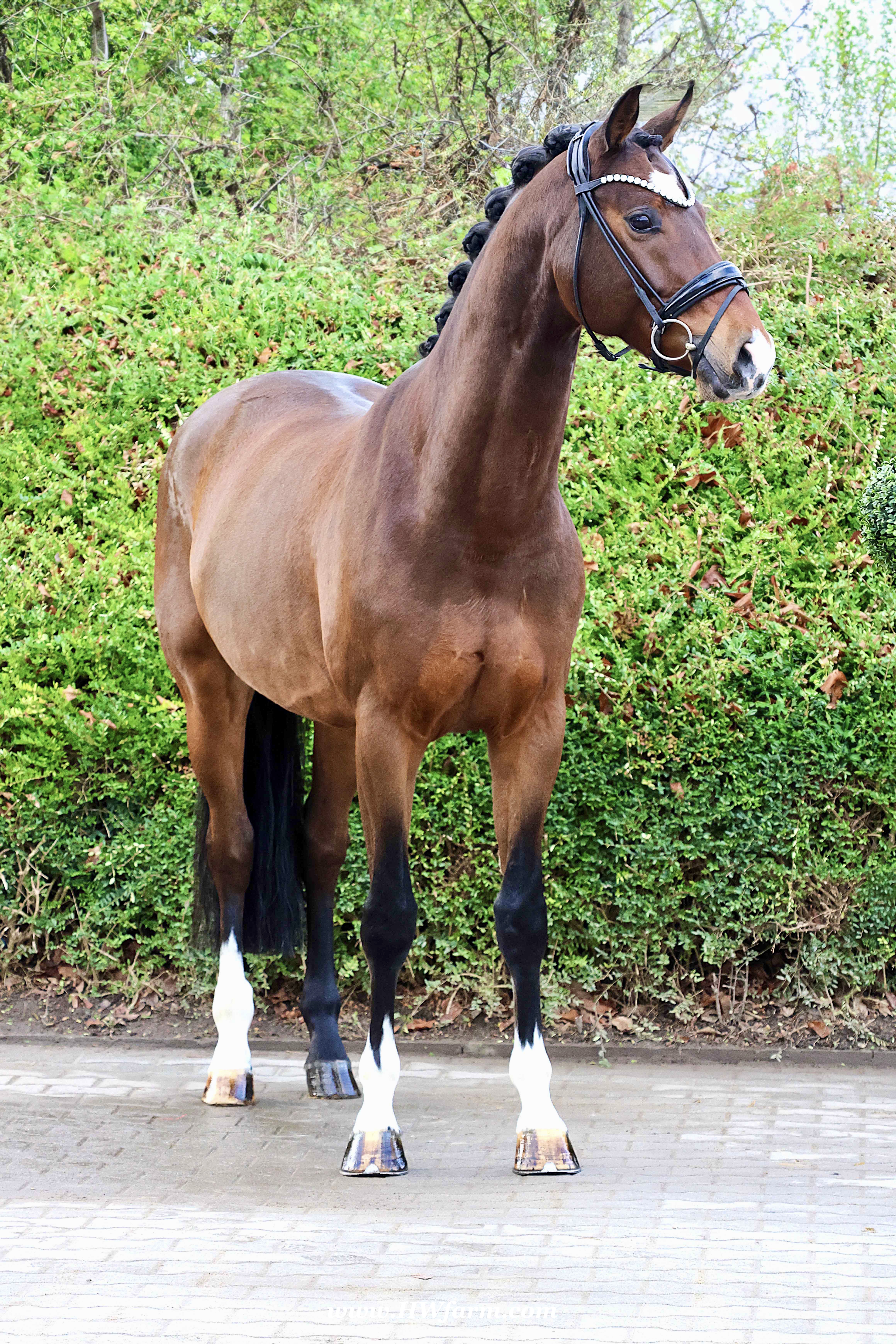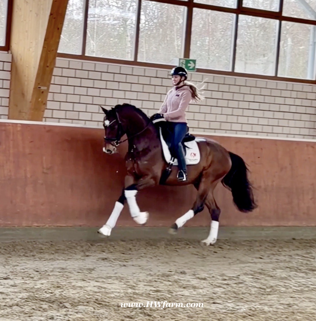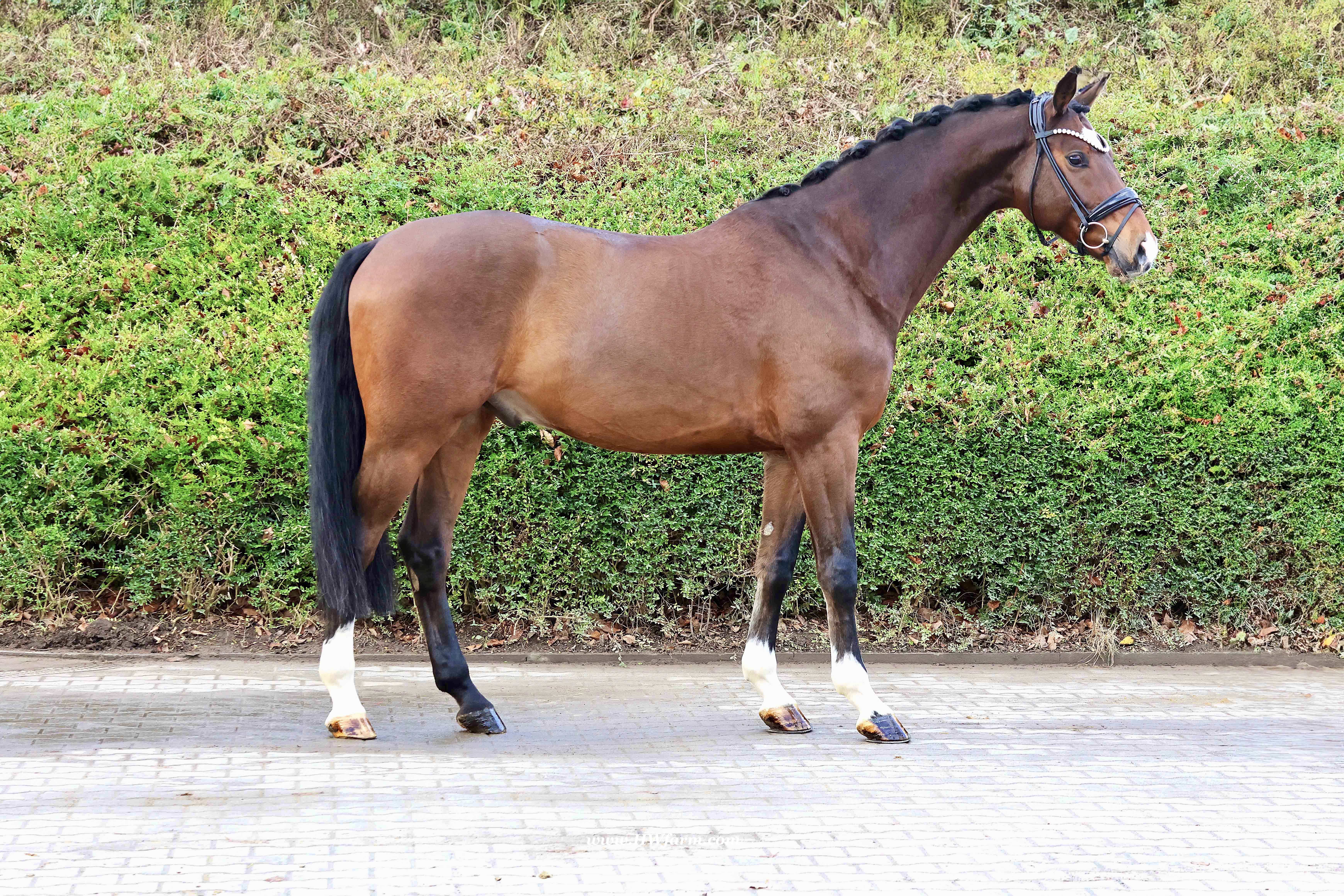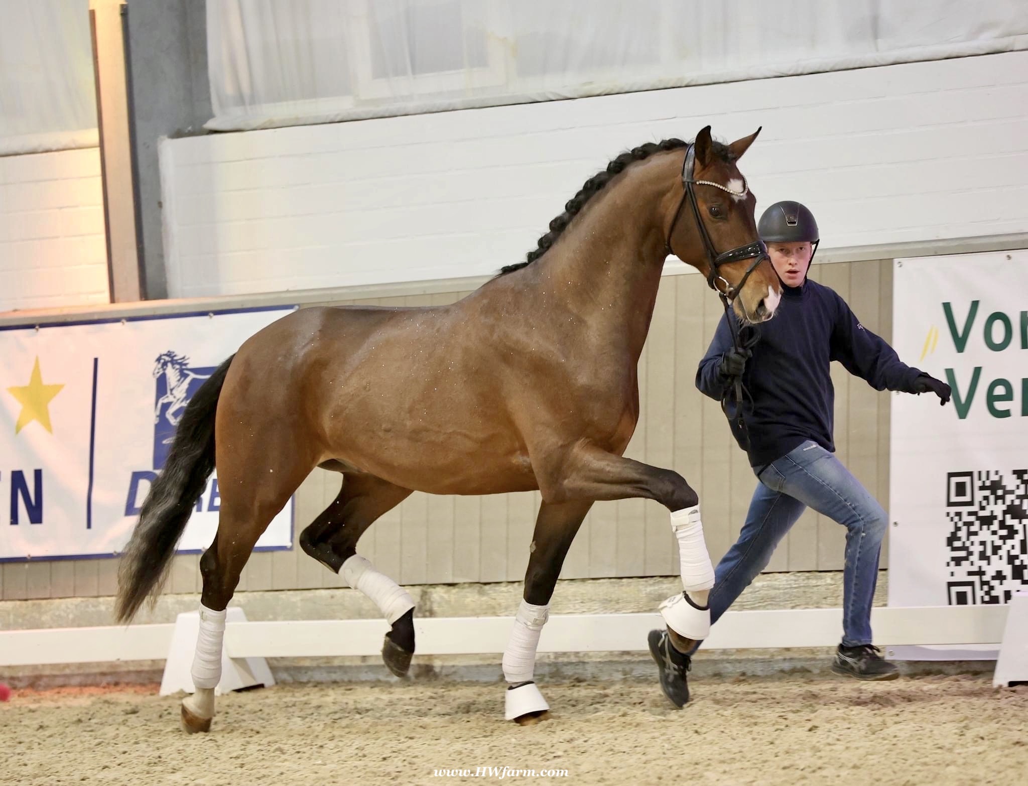 Armani Gold HW, brown Westphalian gelding by Arcachon NRW/Sezuan born in 2020, standing approximately 170 cm or 16.2 hands. Armani Gold HW, is a clone to his sire, in everything we could hope for. The famous Arcachon NRW - series winner in young horse competitions. Arcachon NRW was premium stallion und reserve champion at the licensing in Münster in 2017. With the best dressage result of 8,11 he finished the 14-day-test in Neustadt. In Summer 2018 he managed to impress by winning three consecutive young horse competitions, a series he was able to repeat as a four year old, where one of these competitions was nothing less than the NRW-youth meeting, which he won with a whopping 8,6. But nevertheless the biggest success of his young career took place at the "Bundeschampionat" 2019, the German championships for young horses. After the win in the preliminary test of the four year old stallions, he managed to win the bronze medal in a thrilling final. The quality of his foals became clear after his offspring had presented itself in an great way at several different foal shows. On the basis of his promising offspring and his sports career, the Westphalian association honored him with the name suffix "NRW". It serves as a seal of quality, usually given to top-performing dressage horses, show jumpers, or licensed stallions that have achieved distinction. The beautiful Arcachon NRW combines very modern and sportive bloodlines with the three international Grand Prix winners Apache, Blue Hors Hotline and TCN Partout in the direct pedigree. His father Apache, who died far too early, is one of the most successful sires of the KWPN breeding and had an exemplary career from sporting and breeding perspective. With his rider Emmelie Scholtens he became part of the Dutch Olympian squad in 2015 and was nominated for the European championships in Gothenburg. With his offspring he dominated the licensing in s' Hertogenbosh and turned to became one of the most requested stallions in Europe. Grandfather Hotline won his first GP Special in 2013. In 2016 he was part of the winning Danish squad at the nations cup in Odense and helped the damish squad to succeed at the CHIO Aachen with impressive results over 70%. His most successful offspring is the Grand Prix winner Hermes ridden by the german Uwe Schwanz. The third father in his pedigree, Sunny Boy, is a direct offspring of the "Finnländerin"-damline and was a small-tour-winner. With special pleasure Johann Hinnemann thinks back at TCN Partout, the fourth Father of Arcachon NRW, who was very successful on international Grand Prix Level and contributed to the dutch-german showdown in the international dressage world. Arcachons dutch dameline (Schridde 381) produced numerous successful sport horses. Several Grand Prix horses and licensed stallions are directly related to Arcachon's NRW third mother Ofurstinels.