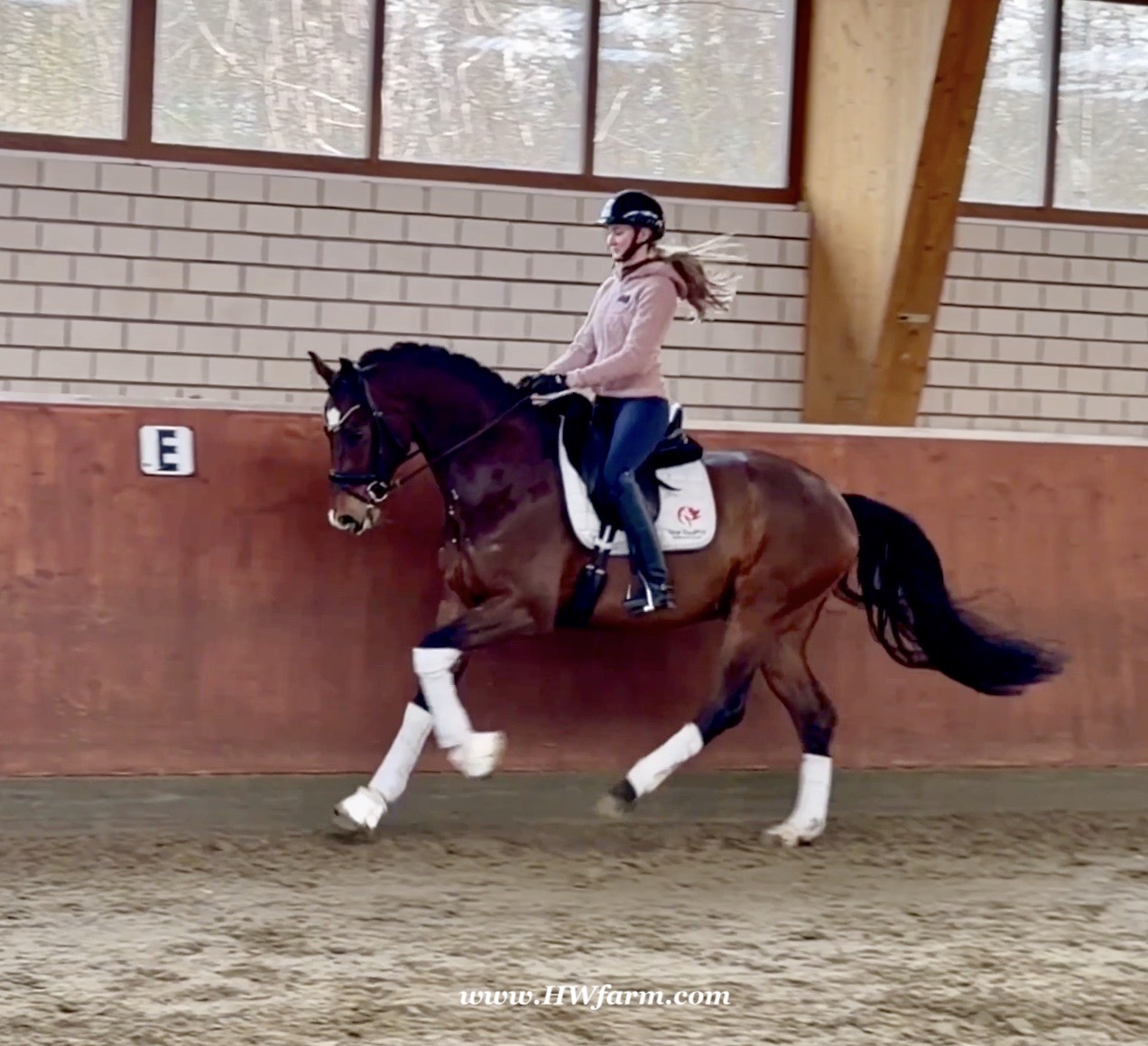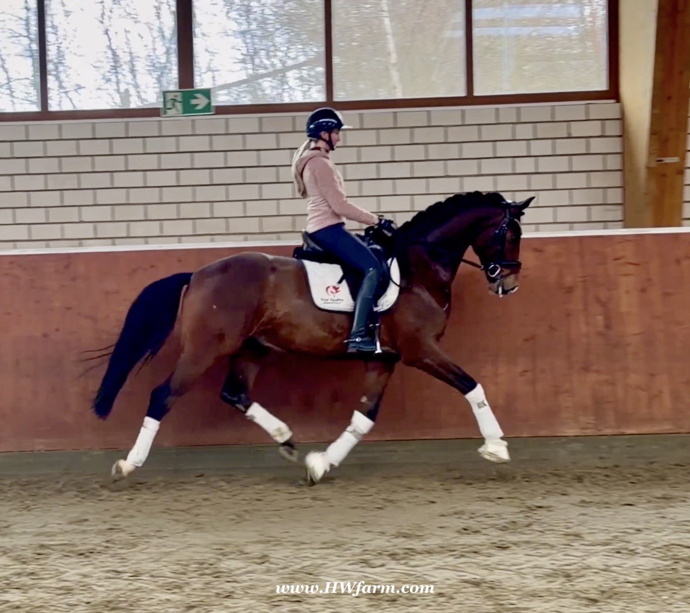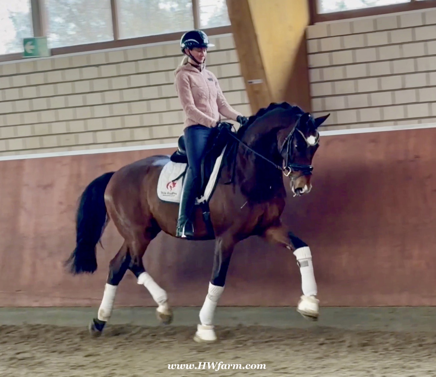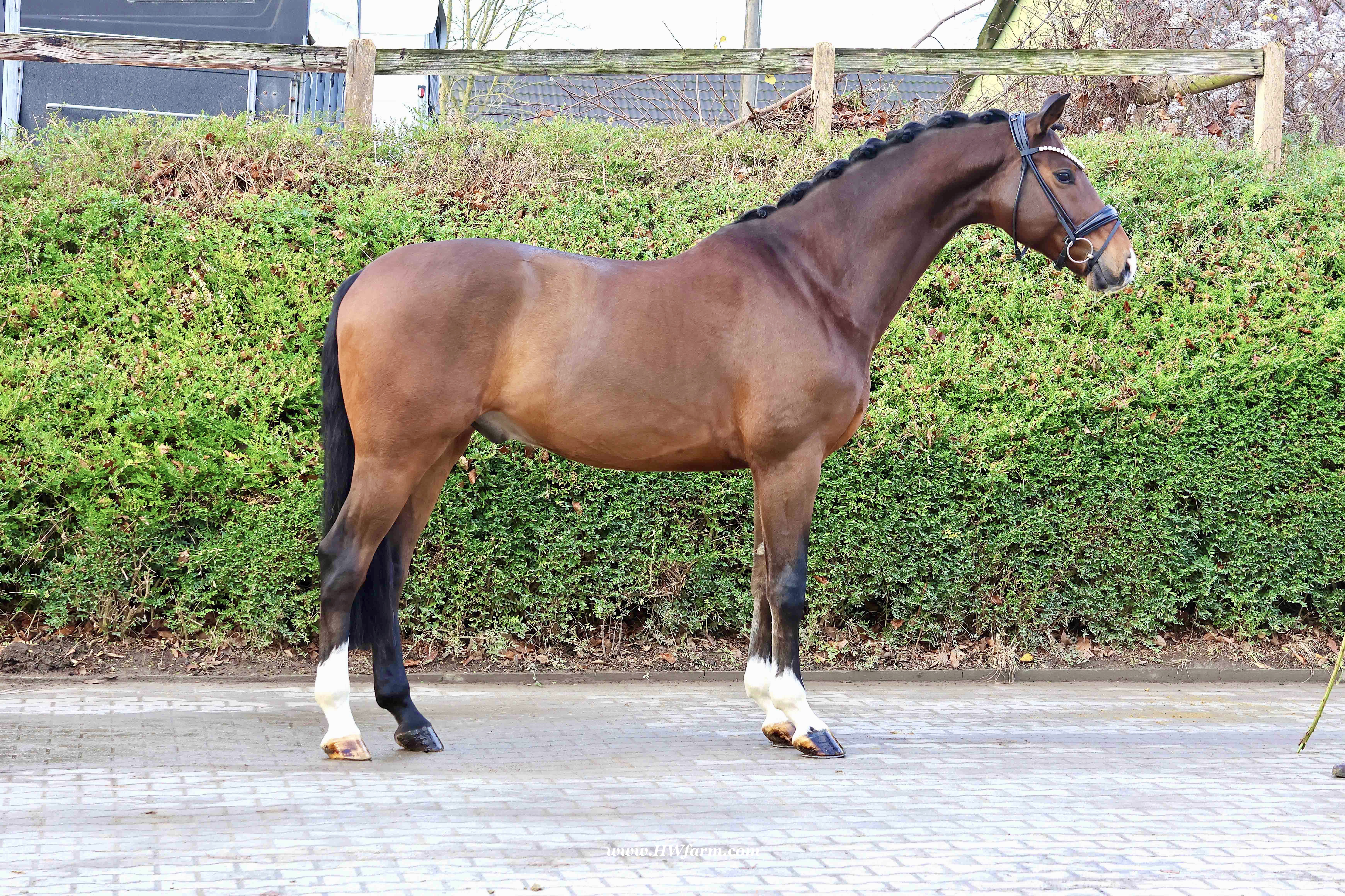 Armani Gold HW, brown Westphalian gelding by Arcachon NRW/Sezuan born in 2020, standing approximately 170 cm or 16.2 hands. Armani Gold HW, is a clone to his sire, in everything we could hope for. The famous Arcachon NRW - series winner in young horse competitions. Arcachon NRW was premium stallion und reserve champion at the licensing in Münster in 2017. With the best dressage result of 8,11 he finished the 14-day-test in Neustadt. In Summer 2018 he managed to impress by winning three consecutive young horse competitions, a series he was able to repeat as a four year old, where one of these competitions was nothing less than the NRW-youth meeting, which he won with a whopping 8,6. But nevertheless the biggest success of his young career took place at the "Bundeschampionat" 2019, the German championships for young horses. After the win in the preliminary test of the four year old stallions, he managed to win the bronze medal in a thrilling final. The quality of his foals became clear after his offspring had presented itself in an great way at several different foal shows. On the basis of his promising offspring and his sports career, the Westphalian association honored him with the name suffix "NRW". It serves as a seal of quality, usually given to top-performing dressage horses, show jumpers, or licensed stallions that have achieved distinction. The beautiful Arcachon NRW combines very modern and sportive bloodlines with the three international Grand Prix winners Apache, Blue Hors Hotline and TCN Partout in the direct pedigree. His father Apache, who died far too early, is one of the most successful sires of the KWPN breeding and had an exemplary career from sporting and breeding perspective. With his rider Emmelie Scholtens he became part of the Dutch Olympian squad in 2015 and was nominated for the European championships in Gothenburg. With his offspring he dominated the licensing in s' Hertogenbosh and turned to became one of the most requested stallions in Europe. Grandfather Hotline won his first GP Special in 2013. In 2016 he was part of the winning Danish squad at the nations cup in Odense and helped the damish squad to succeed at the CHIO Aachen with impressive results over 70%. His most successful offspring is the Grand Prix winner Hermes ridden by the german Uwe Schwanz. The third father in his pedigree, Sunny Boy, is a direct offspring of the "Finnländerin"-damline and was a small-tour-winner. With special pleasure Johann Hinnemann thinks back at TCN Partout, the fourth Father of Arcachon NRW, who was very successful on international Grand Prix Level and contributed to the dutch-german showdown in the international dressage world. Arcachons dutch dameline (Schridde 381) produced numerous successful sport horses. Several Grand Prix horses and licensed stallions are directly related to Arcachon's NRW third mother Ofurstinels.