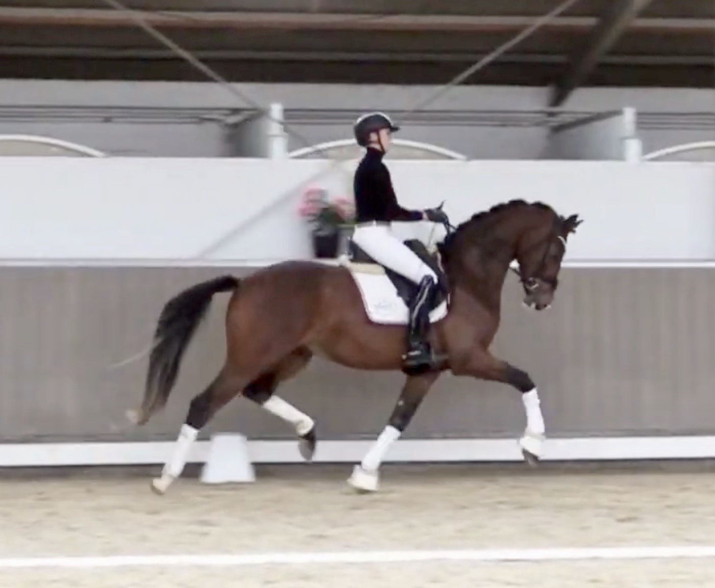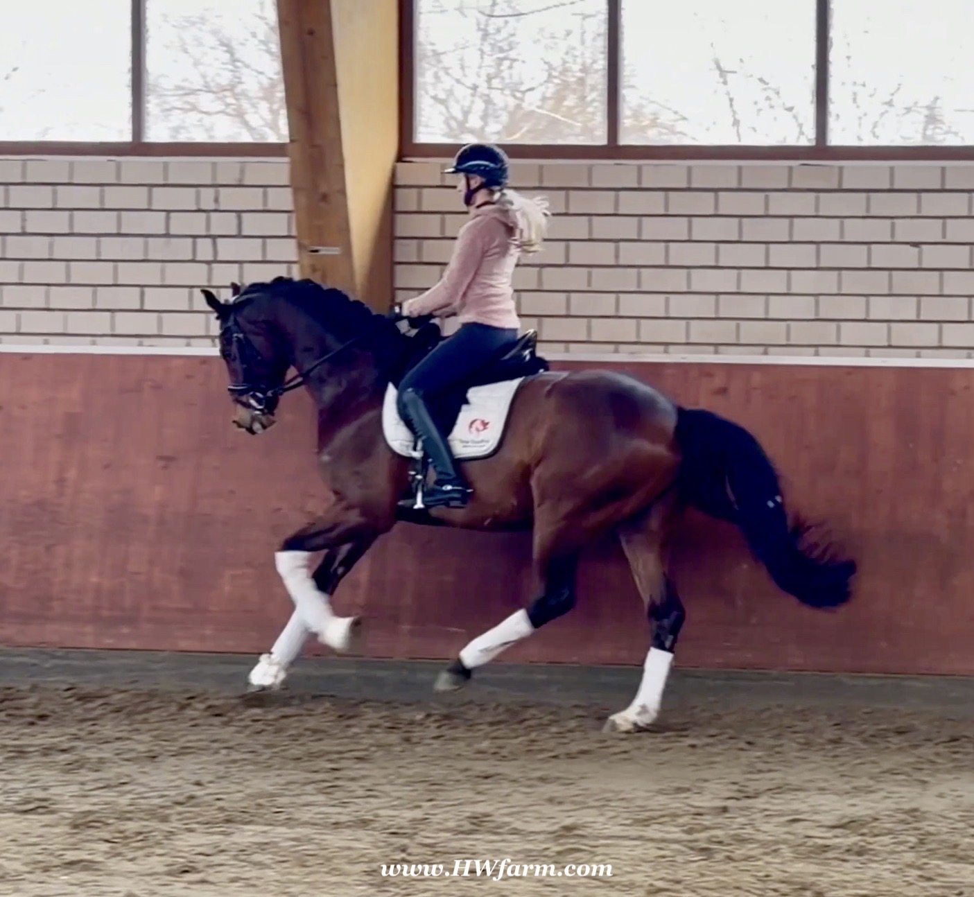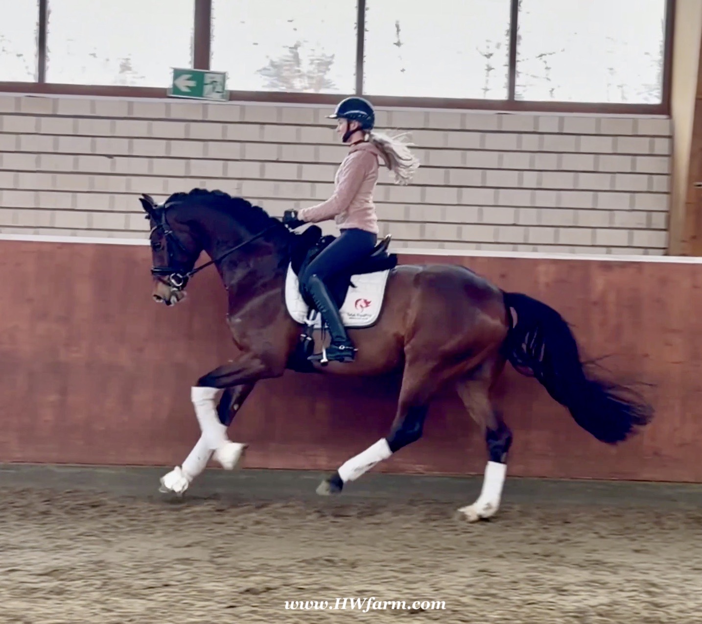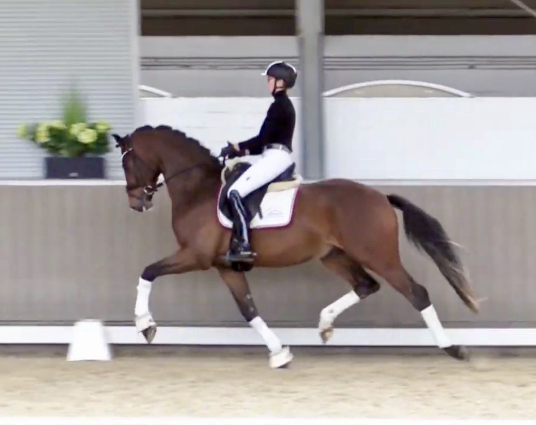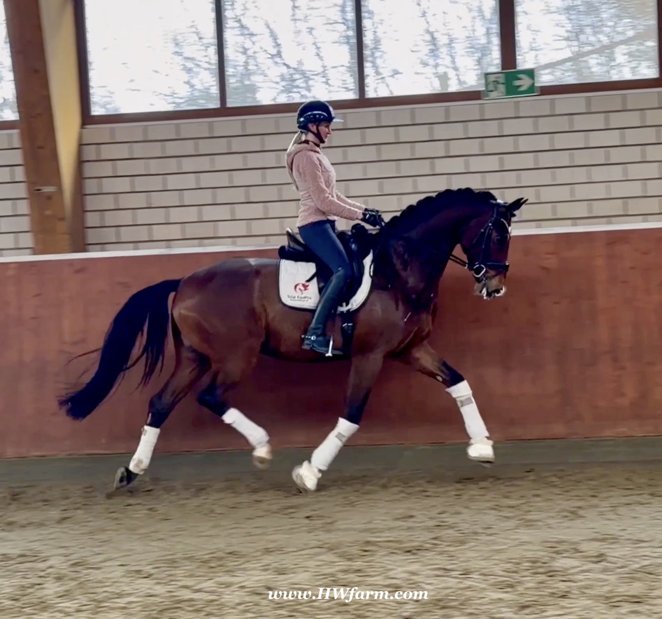 Armani Gold HW, brown Westphalian gelding by Arcachon NRW/Sezuan born in 2020, standing approximately 170 cm or 16.2 hands. Armani Gold HW, is a clone to his sire, in everything we could hope for. The famous Arcachon NRW - series winner in young horse competitions. Arcachon NRW was premium stallion und reserve champion at the licensing in Münster in 2017. With the best dressage result of 8,11 he finished the 14-day-test in Neustadt. In Summer 2018 he managed to impress by winning three consecutive young horse competitions, a series he was able to repeat as a four year old, where one of these competitions was nothing less than the NRW-youth meeting, which he won with a whopping 8,6. But nevertheless the biggest success of his young career took place at the "Bundeschampionat" 2019, the German championships for young horses. After the win in the preliminary test of the four year old stallions, he managed to win the bronze medal in a thrilling final. The quality of his foals became clear after his offspring had presented itself in an great way at several different foal shows. On the basis of his promising offspring and his sports career, the Westphalian association honored him with the name suffix "NRW". It serves as a seal of quality, usually given to top-performing dressage horses, show jumpers, or licensed stallions that have achieved distinction. The beautiful Arcachon NRW combines very modern and sportive bloodlines with the three international Grand Prix winners Apache, Blue Hors Hotline and TCN Partout in the direct pedigree. His father Apache, who died far too early, is one of the most successful sires of the KWPN breeding and had an exemplary career from sporting and breeding perspective. With his rider Emmelie Scholtens he became part of the Dutch Olympian squad in 2015 and was nominated for the European championships in Gothenburg. With his offspring he dominated the licensing in s' Hertogenbosh and turned to became one of the most requested stallions in Europe. Grandfather Hotline won his first GP Special in 2013. In 2016 he was part of the winning Danish squad at the nations cup in Odense and helped the damish squad to succeed at the CHIO Aachen with impressive results over 70%. His most successful offspring is the Grand Prix winner Hermes ridden by the german Uwe Schwanz. The third father in his pedigree, Sunny Boy, is a direct offspring of the "Finnländerin"-damline and was a small-tour-winner. With special pleasure Johann Hinnemann thinks back at TCN Partout, the fourth Father of Arcachon NRW, who was very successful on international Grand Prix Level and contributed to the dutch-german showdown in the international dressage world. Arcachons dutch dameline (Schridde 381) produced numerous successful sport horses. Several Grand Prix horses and licensed stallions are directly related to Arcachon's NRW third mother Ofurstinels.