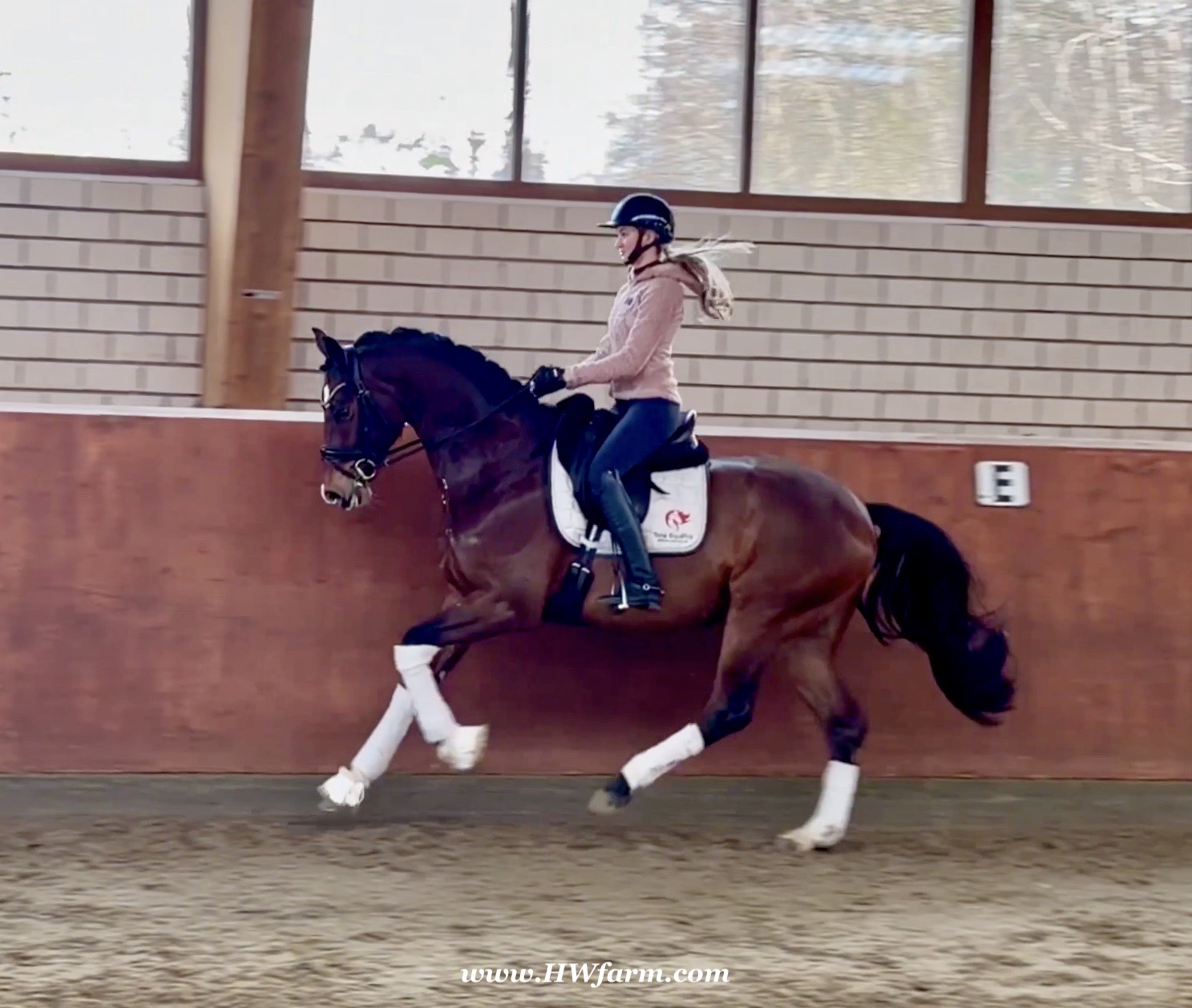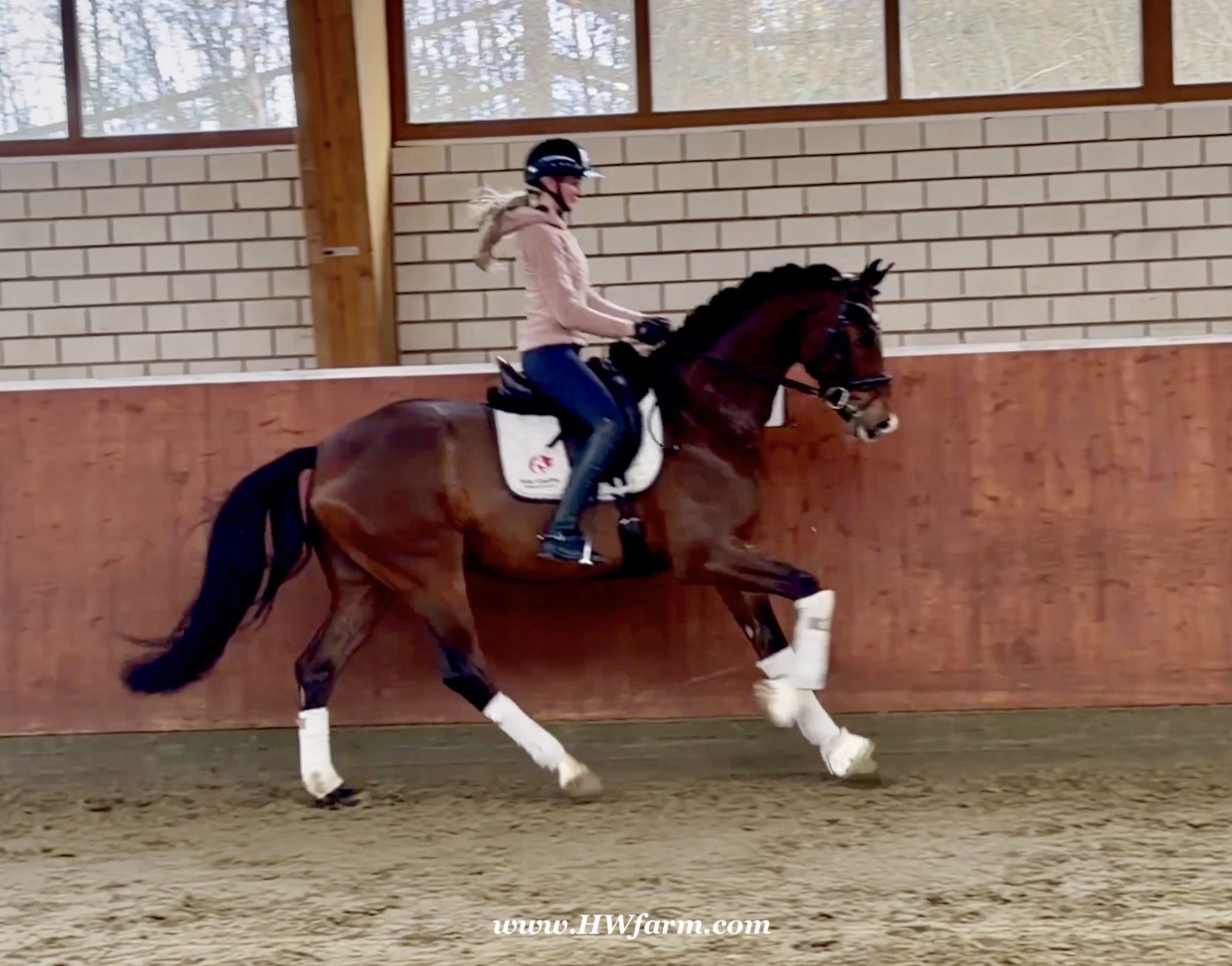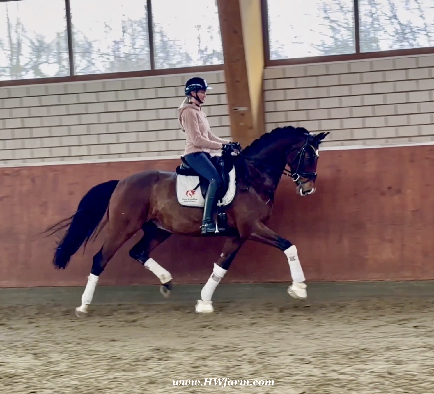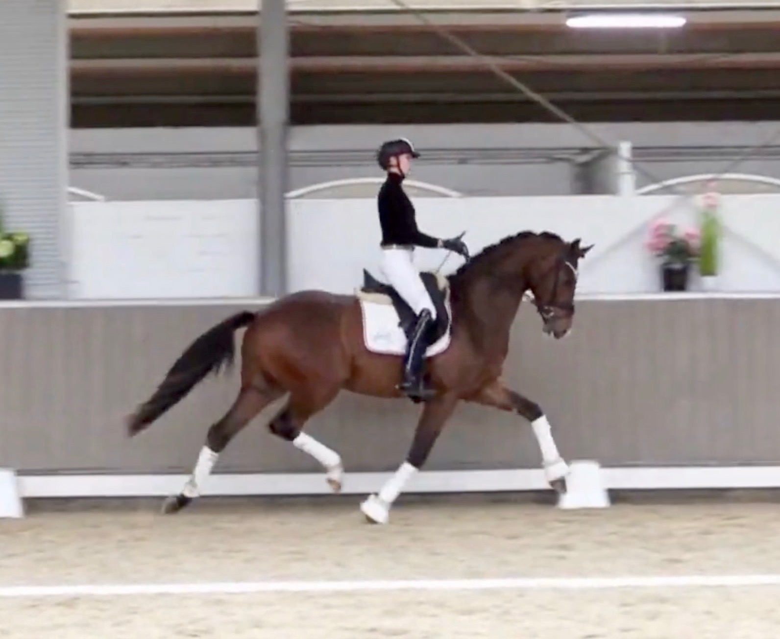 Armani Gold HW, brown Westphalian gelding by Arcachon NRW/Sezuan born in 2020, standing approximately 170 cm or 16.2 hands. Armani Gold HW, is a clone to his sire, in everything we could hope for. The famous Arcachon NRW - series winner in young horse competitions. Arcachon NRW was premium stallion und reserve champion at the licensing in Münster in 2017. With the best dressage result of 8,11 he finished the 14-day-test in Neustadt. In Summer 2018 he managed to impress by winning three consecutive young horse competitions, a series he was able to repeat as a four year old, where one of these competitions was nothing less than the NRW-youth meeting, which he won with a whopping 8,6. But nevertheless the biggest success of his young career took place at the "Bundeschampionat" 2019, the German championships for young horses. After the win in the preliminary test of the four year old stallions, he managed to win the bronze medal in a thrilling final. The quality of his foals became clear after his offspring had presented itself in an great way at several different foal shows. On the basis of his promising offspring and his sports career, the Westphalian association honored him with the name suffix "NRW". It serves as a seal of quality, usually given to top-performing dressage horses, show jumpers, or licensed stallions that have achieved distinction. The beautiful Arcachon NRW combines very modern and sportive bloodlines with the three international Grand Prix winners Apache, Blue Hors Hotline and TCN Partout in the direct pedigree. His father Apache, who died far too early, is one of the most successful sires of the KWPN breeding and had an exemplary career from sporting and breeding perspective. With his rider Emmelie Scholtens he became part of the Dutch Olympian squad in 2015 and was nominated for the European championships in Gothenburg. With his offspring he dominated the licensing in s' Hertogenbosh and turned to became one of the most requested stallions in Europe. Grandfather Hotline won his first GP Special in 2013. In 2016 he was part of the winning Danish squad at the nations cup in Odense and helped the damish squad to succeed at the CHIO Aachen with impressive results over 70%. His most successful offspring is the Grand Prix winner Hermes ridden by the german Uwe Schwanz. The third father in his pedigree, Sunny Boy, is a direct offspring of the "Finnländerin"-damline and was a small-tour-winner. With special pleasure Johann Hinnemann thinks back at TCN Partout, the fourth Father of Arcachon NRW, who was very successful on international Grand Prix Level and contributed to the dutch-german showdown in the international dressage world. Arcachons dutch dameline (Schridde 381) produced numerous successful sport horses. Several Grand Prix horses and licensed stallions are directly related to Arcachon's NRW third mother Ofurstinels.