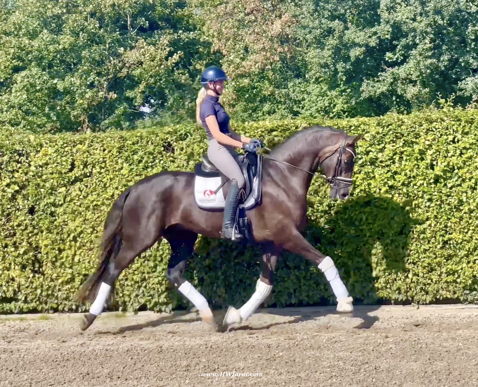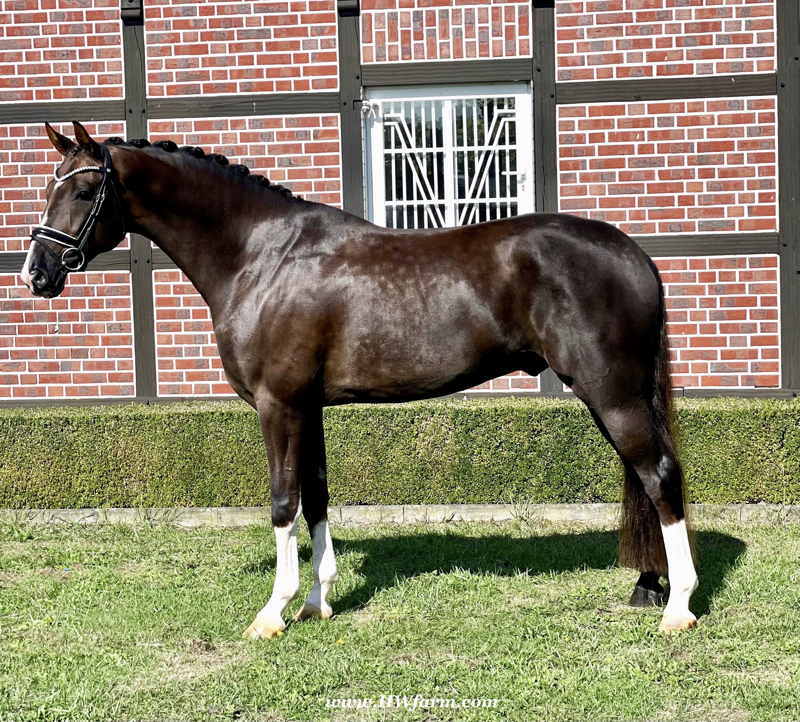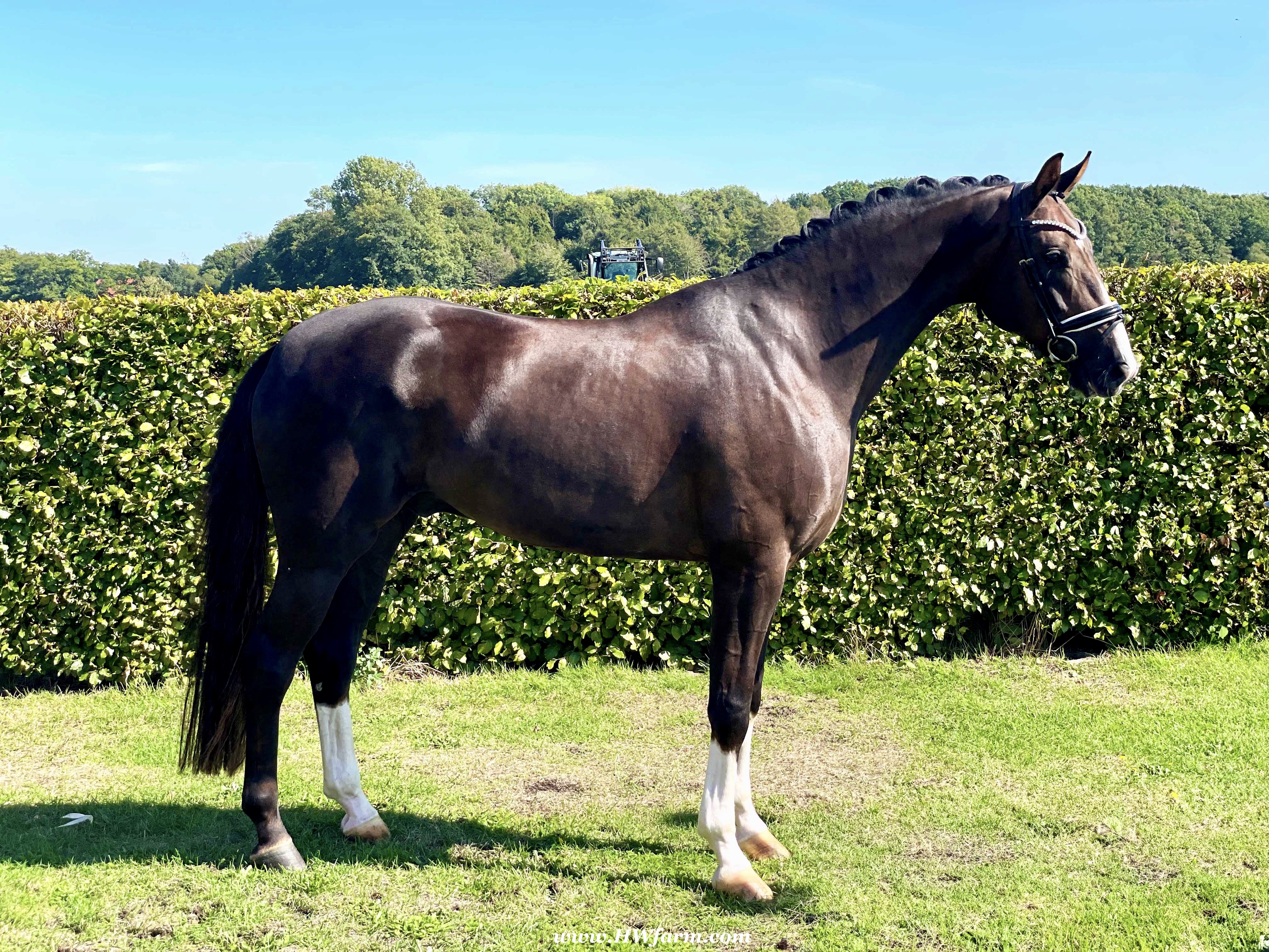 | Bon Excellent HW, liver chestnut Oldenburg gelding by Bonds/Quaterback, born in 2021, standing approximately 170 cm or 16.2 hands. Bon Excellent HW has an amazing gene pool, his sire is Bonds, a highly celebrated champion of the licensing in Vechta. Majestic occurrence, ultramodern type brilliance, outstanding movements, perfectly formed self-hold - Bonds surpassed the high-quality Oldenburger crop up in Vechta by a mile and was hailed as a champion stallion frenetically. The sire Benicio became 2011, Anna Sophie Fiebelkorn terrific scores for dressage horses Bundeschampion: 10.0 for the trot and the step 9.5 for overall impression and 9.0 for the canter. The 30-day test in Schlieckau he finished with ten times the maximum score 10.0. The dressage score yielded 9.88 and was thus even higher than the record rating of his sire Belissimo M NRW. Meanwhile, he could celebrate successes to Inter Series II. 2015, three of his sons licensed, including a further premium stallion. The grandsire Sir Donnerhall I has long been considered trademark stallion of modern dressage horse breeding. The granddam St.Pr.St. Rhea Silva 2003 was Brilliant Ring Mare. Her son "Forever You" is in M ** - successful dressage. Great-grandfather is the legendary Rubinstein. Bon Excellent HW's dam is by the phenomenal Bundeschampion Quaterback. A stallion that seems like he could only come from another planet - with his light-footed, brilliant movement and perfect cadence, all eyes become riveted on Quaterback when he appears. He was the radiant Bundeschampion of the three-year-old riding horses in 2006 with the highest scores for his trot and canter. The test riders in Warendorf even gave him this dream score of 10.0. Prior to this test, he had won several tests for young riding horses. He was also the winner of his 30-day test with a final score of 9.14 in dressage, an 8.43 for jumping and an overall score of 8.88. As if it were not enough to have unbelievably dynamic movement, he was also blessed with an outstanding type. Quaterback comes from one of the most successful mare lines of modern day. His dam Passionata is a half-sister of the unforgettable World Champion and double Bundeschampion, Poetin. Her full brothers Samba Hit I to IV put on convincing presentations at the Bundeschampionate. Samba Hit I was also a finalist in the 2006 Nürnberg Burgpokal and the sire of Samba's Diamond who became the Champion Stallion of the licensing in Berlin-Brandenburg and Sachsen-Anhalt that same year. Quarterback's successful advanced (S) level sire Quaterman also participated in several Bundeschampionats and is deemed one of the best sires for passing on good movements in the new German States. The grand-sire Quando-Quando took 15th place at the World Championships in Aachen in 2006 under Kristy Oatley-Nist. With a pedigree geared for performance from all sides and from the famous Neustädter P family, all doors are open for Quaterback. Quaterback in the end excelled as a performance producer, which his HEK-breed value of 155 and a fourth place in the WBFSH-ranking for dressage horse-producers reflect. From 87 descendants with successes at the S-level, 19 already reached the Grand Prix-level. His oldest descedants are only 13 years of age, in other words, many are not yet ma-ture enough for Grand Prix-classes. Ten-year-old Quantaz out of a Hohenstein dam, is most successful. Quantaz had the talent to get to Isabell Werth. In 2020, they participated in six Grand Prix-classes, and won them all. Quaterback sired no less than 72 licensed sons in Germany and has 532 daughters registered as broodmares, no less than 145 of them are state premium. His most successful offspring are Quantaz (Isabell Werth), Quater Back Junior (Nicolas Wagner), Quatermain (Marina Mattsson), Quotenkönig (Theresa Friesdorf), Quantum Vis MW (Dorothee Schneider), Quebec and Quantum (Ulrike Prunthaller), Pathetique (Dorothee Schneider), Touchdown (Patrik Kittel), Queensland (Kristin Biermann), Quam Libet (Lisa-Marie Klossinger), Qatar (Berill Szoke Toth), Mister-C (Dorothee Schneider), Quaterboy (Estelle Wettstein), Quentano (Emile Faurie), Quadroneur, Quincy, Quintus, Quaterback I, Quater Figlio, Qredit Hilltop, Quaterbold du Payrol, and many many more. He passes his big and fleet-footed movement to his offspring, and therefore has produced a lot of foal champions and auction foals. One of them was sold for 120.000 euros at a Hanoverian auction. Quaterback was ranked 47th in the 2017 WBFSH Dressage Sire rankings, 22nd in 2018 and in 2019 he made an impressive jump to the #5 spot as a top sire of the world! In 2019 he sired two Grand Prix horses, one for Dorothee Schneider and one for Isabell Werth. In 2012, Quaterback was the sire of the Vice-Bundeschampion. Quaterback sired no less than 72 licensed sons in Germany and has 532 daughters registered as broodmares, no less than 145 of them are state premium. Bon Excellent HW is the definition of a modern dressage superstar, captivating audiences with movement blessed with extreme elasticity, profound suspension, and incredible air time. This elegant gelding showcases a powerful, free shoulder paired with a super active hind leg-the foundation of a true Grand Prix powerhouse. Beyond his athletic talent, Bon Excellent HW is breathtakingly beautiful, featuring a beautifully set 'stallion neck,' a chiseled head, and a heart of gold. Smart, willing, and striving for perfection every day, this young gentleman is a certain FEI candidate. Don't simply look for potential; buy the established su-perstar. Secure Bon Excellent HW now and step directly into the winners' circle at the Young Horse Championships or the BundesChampionships. X-rays on file! US $80,000 to $150,000 - check out his video clip!!! Please e-mail Irene@HWfarm.com Or text 239-772-7722 for Irene, managing member, HorseSales LLC We take pride in answering every e-mail right away (at least at the same day) and to return each call. If you don't get a re