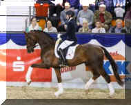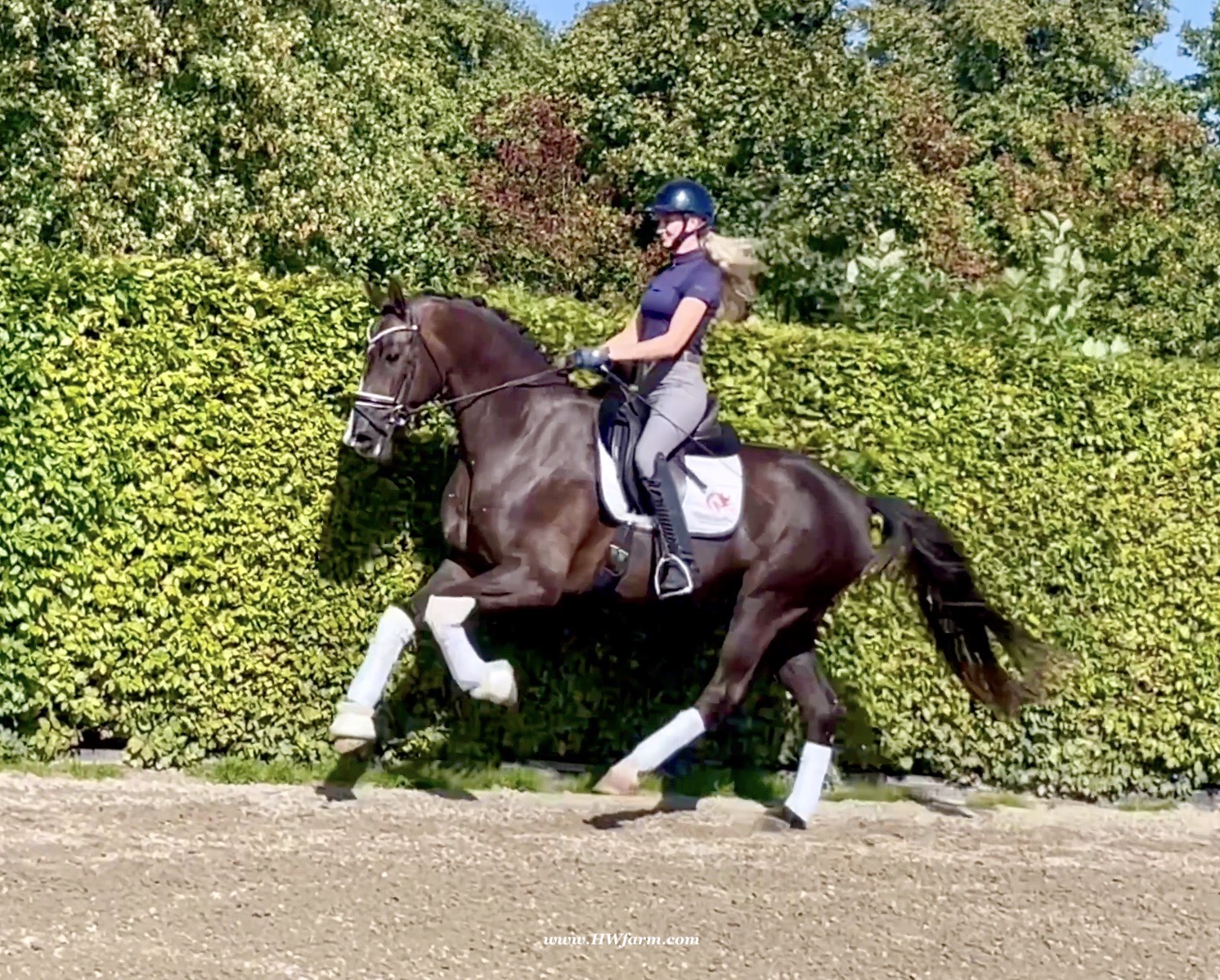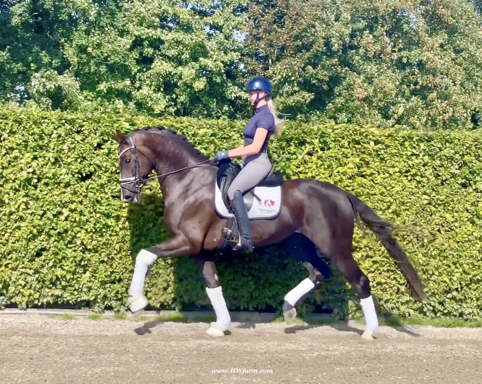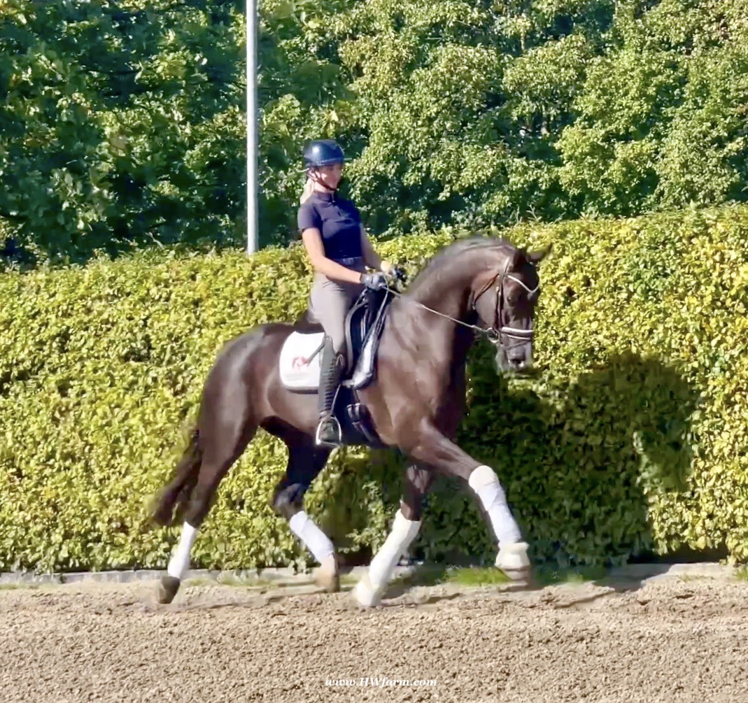 | Bon Excellent HW, liver chestnut Oldenburg gelding by Bonds/Quaterback, born in 2021, standing approximately 170 cm or 16.2 hands. Bon Excellent HW has an amazing gene pool, his sire is Bonds, a highly celebrated champion of the licensing in Vechta. Majestic occurrence, ultramodern type brilliance, outstanding movements, perfectly formed self-hold - Bonds surpassed the high-quality Oldenburger crop up in Vechta by a mile and was hailed as a champion stallion frenetically. The sire Benicio became 2011, Anna Sophie Fiebelkorn terrific scores for dressage horses Bundeschampion: 10.0 for the trot and the step 9.5 for overall impression and 9.0 for the canter. The 30-day test in Schlieckau he finished with ten times the maximum score 10.0. The dressage score yielded 9.88 and was thus even higher than the record rating of his sire Belissimo M NRW. Meanwhile, he could celebrate successes to Inter Series II. 2015, three of his sons licensed, including a further premium stallion. The grandsire Sir Donnerhall I has long been considered trademark stallion of modern dressage horse breeding. The granddam St.Pr.St. Rhea Silva 2003 was Brilliant Ring Mare. Her son "Forever You" is in M ** - successful dressage. Great-grandfather is the legendary Rubinstein. Bon Excellent HW's dam is by the phenomenal Bundeschampion Quaterback. A stallion that seems like he could only come from another planet - with his light-footed, brilliant movement and perfect cadence, all eyes become riveted on Quaterback when he appears. He was the radiant Bundeschampion of the three-year-old riding horses in 2006 with the highest scores for his trot and canter. The test riders in Warendorf even gave him this dream score of 10.0. Prior to this test, he had won several tests for young riding horses. He was also the winner of his 30-day test with a final score of 9.14 in dressage, an 8.43 for jumping and an overall score of 8.88. As if it were not enough to have unbelievably dynamic movement, he was also blessed with an outstanding type. Quaterback comes from one of the most successful mare lines of modern day. His dam Passionata is a half-sister of the unforgettable World Champion and double Bundeschampion, Poetin. Her full brothers Samba Hit I to IV put on convincing presentations at the Bundeschampionate. Samba Hit I was also a finalist in the 2006 Nürnberg Burgpokal and the sire of Samba's Diamond who became the Champion Stallion of the licensing in Berlin-Brandenburg and Sachsen-Anhalt that same year. Quarterback's successful advanced (S) level sire Quaterman also participated in several Bundeschampionats and is deemed one of the best sires for passing on good movements in the new German States. The grand-sire Quando-Quando took 15th place at the World Championships in Aachen in 2006 under Kristy Oatley-Nist. With a pedigree geared for performance from all sides and from the famous Neustädter P family, all doors are open for Quaterback. Quaterback in the end excelled as a performance producer, which his HEK-breed value of 155 and a fourth place in the WBFSH-ranking for dressage horse-producers reflect. From 87 descendants with successes at the S-level, 19 already reached the Grand Prix-level. His oldest descedants are only 13 years of age, in other words, many are not yet ma-ture enough for Grand Prix-classes. Ten-year-old Quantaz out of a Hohenstein dam, is most successful. Quantaz had the talent to get to Isabell Werth. In 2020, they participated in six Grand Prix-classes, and won them all. Quaterback sired no less than 72 licensed sons in Germany and has 532 daughters registered as broodmares, no less than 145 of them are state premium. His most successful offspring are Quantaz (Isabell Werth), Quater Back Junior (Nicolas Wagner), Quatermain (Marina Mattsson), Quotenkönig (Theresa Friesdorf), Quantum Vis MW (Dorothee Schneider), Quebec and Quantum (Ulrike Prunthaller), Pathetique (Dorothee Schneider), Touchdown (Patrik Kittel), Queensland (Kristin Biermann), Quam Libet (Lisa-Marie Klossinger), Qatar (Berill Szoke Toth), Mister-C (Dorothee Schneider), Quaterboy (Estelle Wettstein), Quentano (Emile Faurie), Quadroneur, Quincy, Quintus, Quaterback I, Quater Figlio, Qredit Hilltop, Quaterbold du Payrol, and many many more. He passes his big and fleet-footed movement to his offspring, and therefore has produced a lot of foal champions and auction foals. One of them was sold for 120.000 euros at a Hanoverian auction. Quaterback was ranked 47th in the 2017 WBFSH Dressage Sire rankings, 22nd in 2018 and in 2019 he made an impressive jump to the #5 spot as a top sire of the world! In 2019 he sired two Grand Prix horses, one for Dorothee Schneider and one for Isabell Werth. In 2012, Quaterback was the sire of the Vice-Bundeschampion. Quaterback sired no less than 72 licensed sons in Germany and has 532 daughters registered as broodmares, no less than 145 of them are state premium. Bon Excellent HW is the definition of a modern dressage superstar, captivating audiences with movement blessed with extreme elasticity, profound suspension, and incredible air time. This elegant gelding showcases a powerful, free shoulder paired with a super active hind leg-the foundation of a true Grand Prix powerhouse. Beyond his athletic talent, Bon Excellent HW is breathtakingly beautiful, featuring a beautifully set 'stallion neck,' a chiseled head, and a heart of gold. Smart, willing, and striving for perfection every day, this young gentleman is a certain FEI candidate. Don't simply look for potential; buy the established su-perstar. Secure Bon Excellent HW now and step directly into the winners' circle at the Young Horse Championships or the BundesChampionships. X-rays on file! US $80,000 to $150,000 - check out his video clip!!! Please e-mail Irene@HWfarm.com Or text 239-772-7722 for Irene, managing member, HorseSales LLC We take pride in answering every e-mail right away (at least at the same day) and to return each call. If you don't get a re