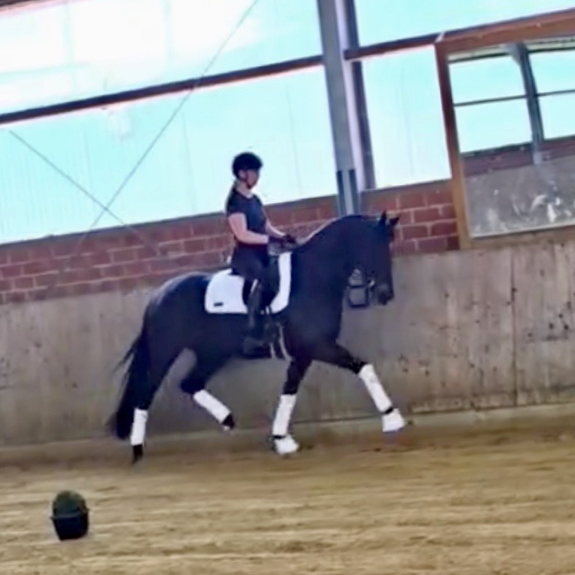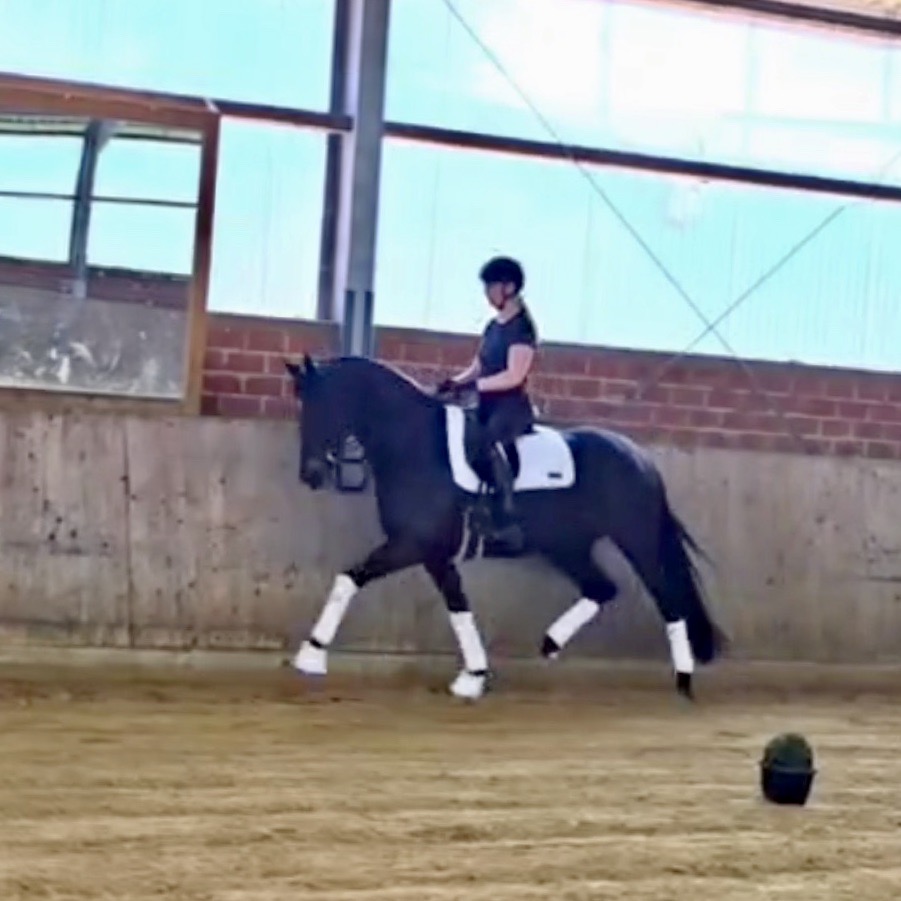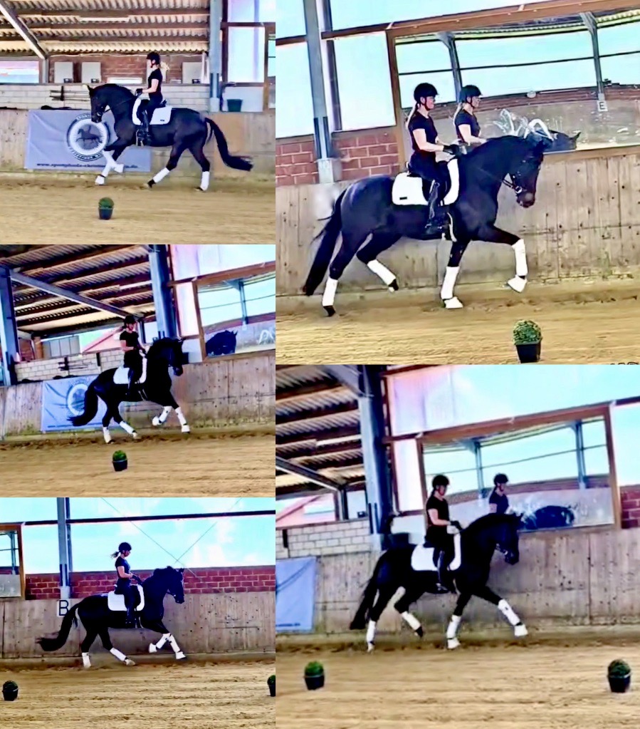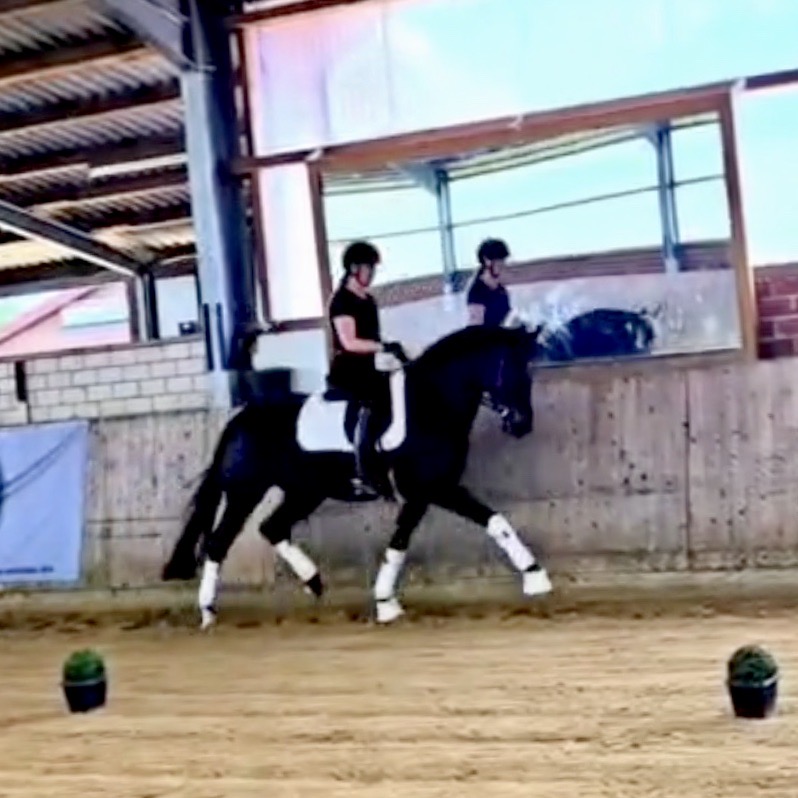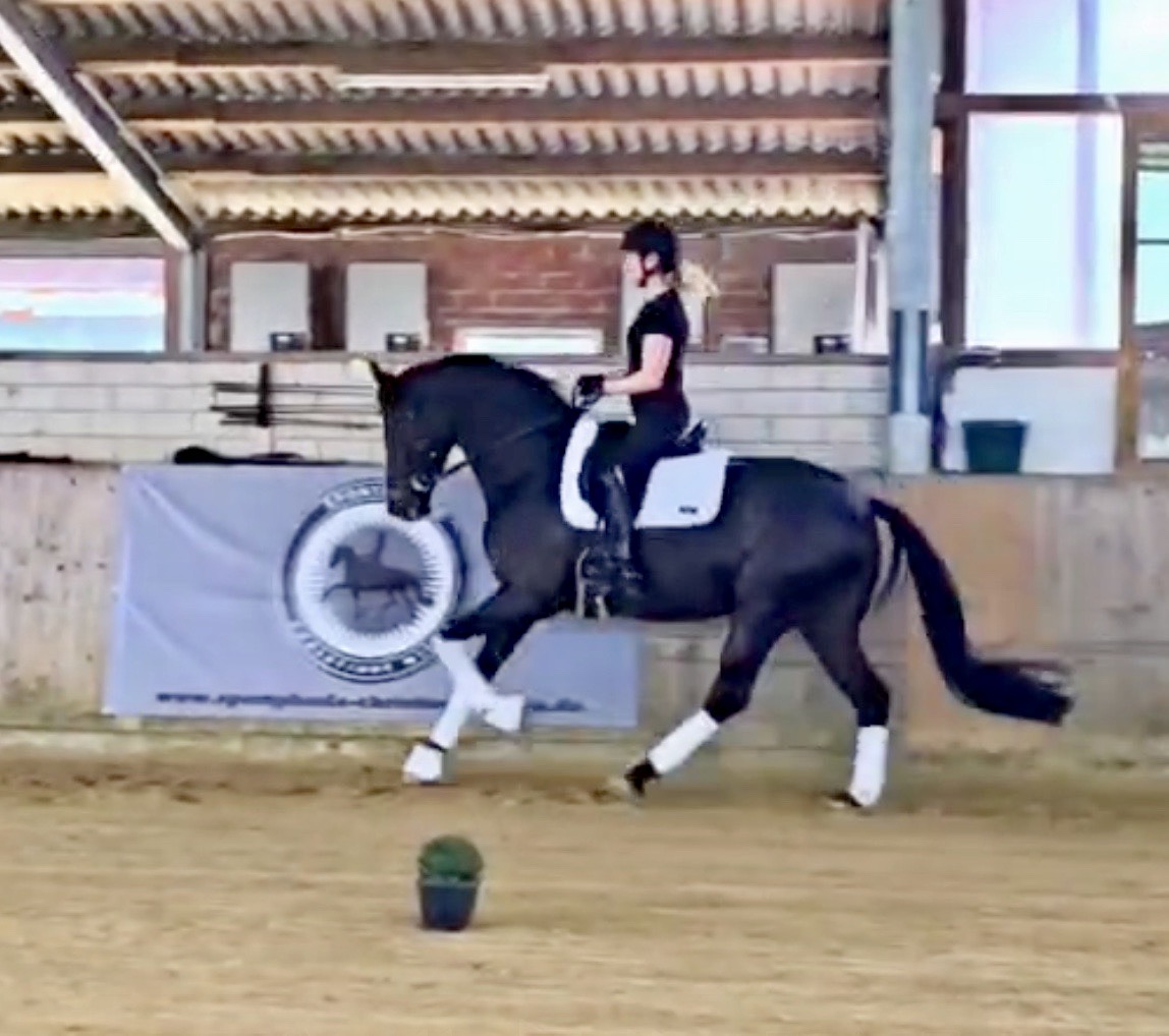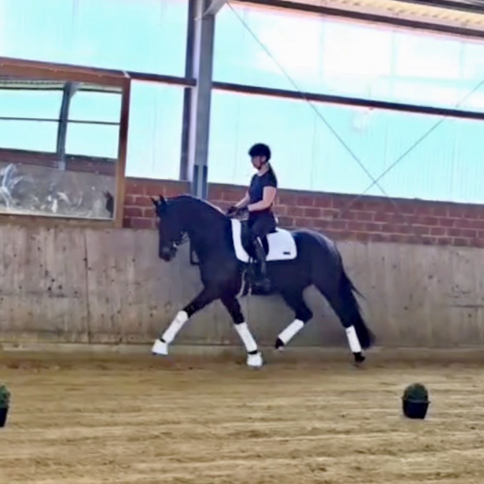 EscaHit HW, black/bay Westphalian gelding, by silver and bronze medallist at the World Championships for young dressage horses Escamillo/German national champion, World Champion of six-year-old dressage horses Sandro Hit, born in 2020, standing approximately 169 cm or 16.2 hands. EscaHit HW has an impressive pedigree and his famous sire is Escamillo, Vice World Champion of six-year-old dressage horses Bronze medal World Championship of seven-year-old horses "What an amazing performance," the judges praised Escamillo's performance in the World Championship final for seven-year-old dressage horses in their commentary, "we love this horse and see a very big future in him." Once again, Escamillo received dream scores at this prestigious meeting of the world's best young dressage horses. 9.5 for trot and perspective, 9.0 for walk and canter, 8.5 for submission - and a fantastic 91 percent and the bronze medal. The year before, Escamillo, ridden by the Spanish rider Manuel Dominguez Bernal, who rides for Helen Langehanenberg's yard, had already received scores of 9.0 and higher in the World Championship's arena, earning him the silver medal in the six-year-olds class. Breeding-wise Escamillo also puts one exclamation mark after the next behind his hereditary power. He has already produced over 30 licensed stallions, among them the Neustadt Champion Stallion Element of Crime, the Hanoverian Premium Stallion and 700,000-euro Stallion Market top price Energy, the Westphalian Reserve Champion Stallions Escaneno, Espléndido MT and Excalibur as well as our stallions Escanto PS, two-time stallion performance test record winner, Expectation PS and Escamour, the stallion performance test winner Eleven HW and the bronze medallist of the Hanoverian Championships, Estupendo. The German and Westphalian Champion Eivissa ridden by Jessica Lynn Thomas/SWE stands out amongst his first sport offspring. She received a 10 for both trot and canter and a 9.5 for rideability and conformation in Warendorf. Embolo, third in the "Westfalen-Wappen" class at the "Turnier der Sieger", achieved the sensational knockdown price of 590,000 euros, the highest price ever achieved by a riding horse at a Westphalian auction. Eyecatcher W won the Austrian Warmblood Championships for three-year-olds in Stadl-Paura/AUT. Escamillo's daughter, Exclusive, won the Herwart van der Decken Show in Verden. Escamillo began his career as premium stallion at his licensing in 2017 in Verden, passed his 14-day test in 2018 with a dressage score of 9.08 and completed his sport test in 2020 with Helen Langehanenberg with a winning score of 9.36. Ridden by the Olympic team silver medallist, he also qualified for the German Championships for young dressage horses as a five-year-old with 9.5. In 2021, with Manuel Dominguez Bernal, he won the intermediate (M) level dressage test for young horses in Haftenkamp with a score of 8.8 (also qualifier for the German Championships for six-year-olds). The same year, Escamillo was awarded the Weltmeyer Prize by the Hanoverian Association. His sire, the Westphalian and double German Champion Escolar, was placed in the final of the Burg Cup, the final of the Louisdor Prize and at the German Championships with the Olympic Champion and riding master Hubertus Schmidt/GER. They were part of the German Olympic squad. His dam Verb.Pr.St. Cassila is the full sister of the licensed stallions Romanist (advanced S* level dressage) and Romeo Niro (intermediate M** level dressage). His grand-sire Rohdiamant was German Champion in 1993 and competed at Grand Prix level with Lisa Wilcox/USA. Around 50 of his sons have been licensed. His most successful offspring include Valentina Truppa's/ITA Olympic partner Eremo del Castegno and Helen Langehanenberg's Responsible OLD. His grand-dam Chantal is the full sister of Dumont/Juliane Brunkhorst/GER and Hartwig Burfeind/GER, licensed stallion and successful in Grand Prix, and her half brother Aquavit (by Argentinus) is successful in competitions for young show jumping horses. De Niro, Landadel and Zeus also appear in the pedigree. His great-grand-dam St.Pr./El.St. Caruge is the full sister of the licensed stallion Laphroaig/Leporello and produced several state premium mares. Her full sister is no other than the German Champion Mare St.Pr./El.St. C-Dur, who produced four licensed stallions. Line of El.St. Cinderella, from which descend the five German Champion full siblings Sir Heinrich OLD, Cindy OLD, Candy OLD, Caty OLD and Casey OLD (all by Sir Donnerhall I), the Grand Prix dressage horse Radondo (by Romanov)/Ashley Holzer/USA, as well as the stallions Zymbal I and II (both by Zeus), First Class I and II (both by Furioso II), Sesostris (by Silvio I), Rubino Rosso (by Rubinstein), Castus I and II (both by Classiker), Stiefelkönig (by Silvano), Grand Marnier (by Galoubet A), Pharaoh (by Parabol), RTL (by Rubinstein), Routinier (by Rohdiamant), Solo Hit (by Sandro Hit), Get Smart (by Granulit), Fortune Hunter (by First Class I), Casanova (by Castro) and Si bon (by Sir Donnerhall I). Closely related to the famous Wendel's German Champion quintet. EscaHit HW's dam sire is the famous Sandro Hit. Sandro Hit has been one of the world's best dressage sires in the WBFSH ranking for twelve years. In 2021 he was even number one. Sandro Hit has left his lasting mark on modern dressage horse breeding with his brilliantly typed and extremely light-footed offspring. He is considered the founding stallion of our station - and line founder. At the Olympic Games in Tokyo, Showtime FRH/Dorothee Schneider and Salvino/Adrienne Lyle were on the gold and silver teams from Germany and the USA. This was the second Olympic gold for Showtime FRH, after European Championship team gold and double individual silver. Salvino was also part of the US dressage silver team at the 2018 World Equestrian Games in Tryon, USA. Also at the start in Tokyo/JPN: Sir Donnerhall II OLD/Morgan Barbançon/FRA, Sebastien/Lindsay 