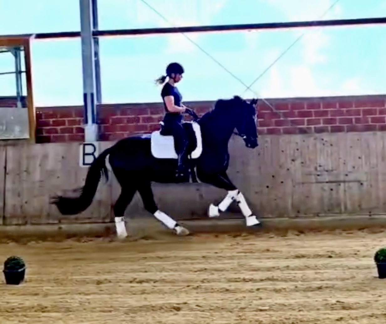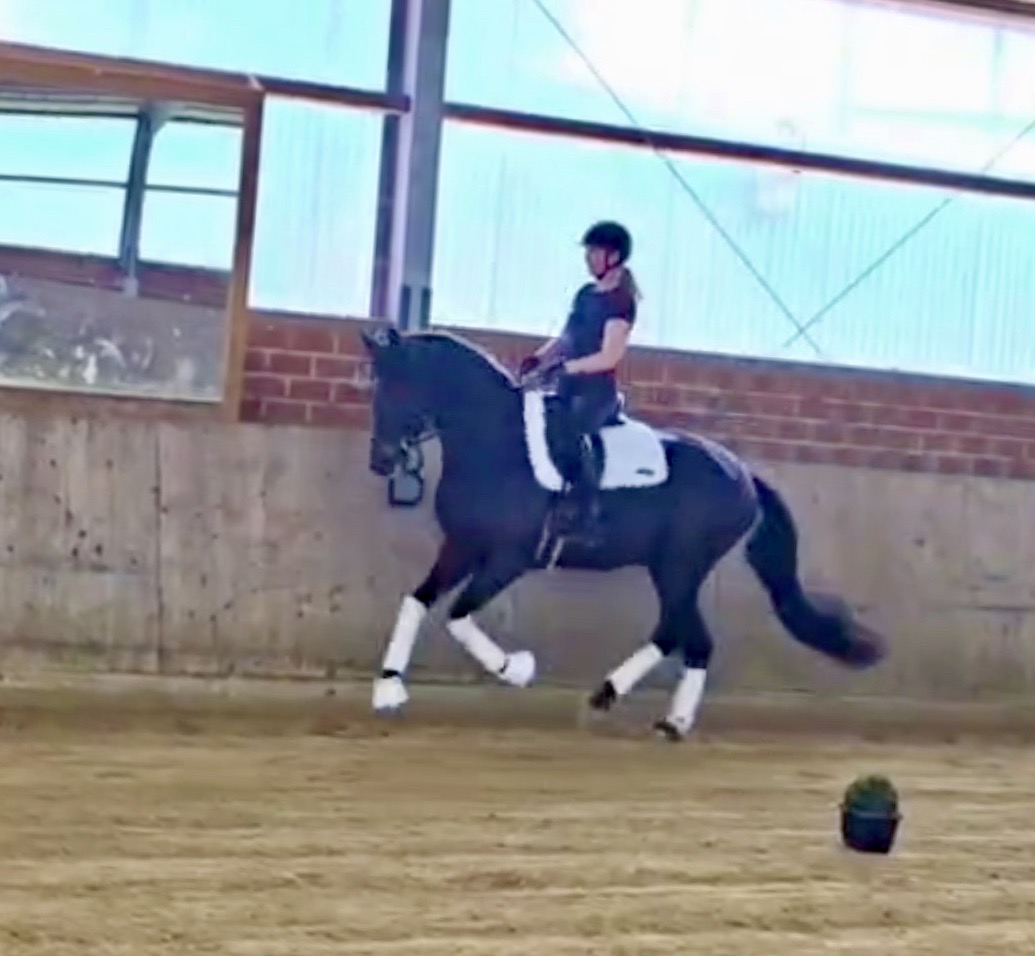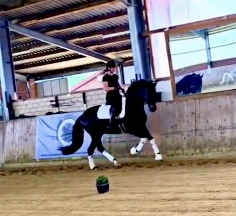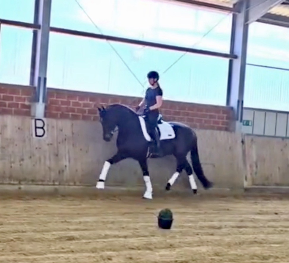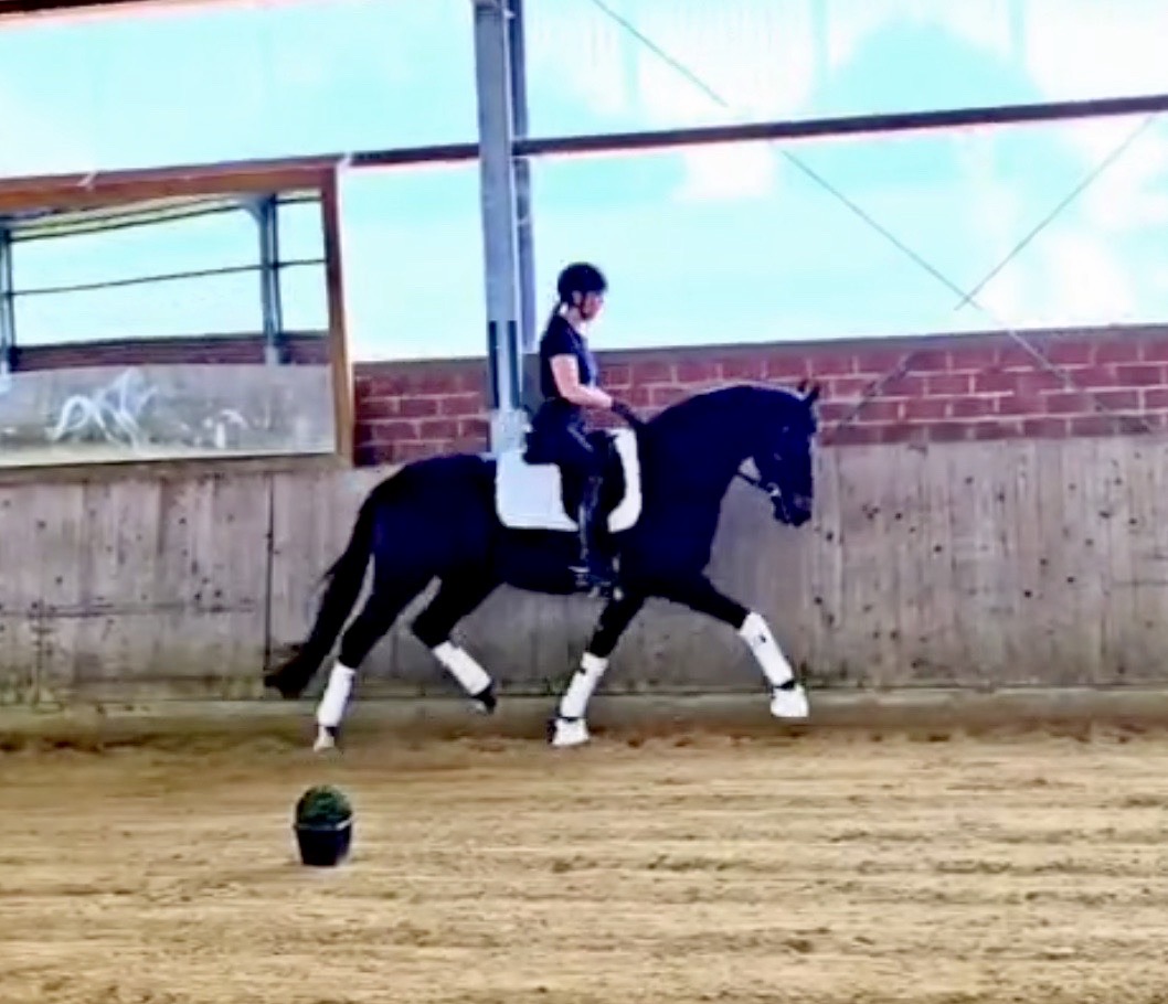 EscaHit HW, black/bay Westphalian gelding, by silver and bronze medallist at the World Championships for young dressage horses Escamillo/German national champion, World Champion of six-year-old dressage horses Sandro Hit, born in 2020, standing approximately 169 cm or 16.2 hands. EscaHit HW has an impressive pedigree and his famous sire is Escamillo, Vice World Champion of six-year-old dressage horses Bronze medal World Championship of seven-year-old horses "What an amazing performance," the judges praised Escamillo's performance in the World Championship final for seven-year-old dressage horses in their commentary, "we love this horse and see a very big future in him." Once again, Escamillo received dream scores at this prestigious meeting of the world's best young dressage horses. 9.5 for trot and perspective, 9.0 for walk and canter, 8.5 for submission - and a fantastic 91 percent and the bronze medal. The year before, Escamillo, ridden by the Spanish rider Manuel Dominguez Bernal, who rides for Helen Langehanenberg's yard, had already received scores of 9.0 and higher in the World Championship's arena, earning him the silver medal in the six-year-olds class. Breeding-wise Escamillo also puts one exclamation mark after the next behind his hereditary power. He has already produced over 30 licensed stallions, among them the Neustadt Champion Stallion Element of Crime, the Hanoverian Premium Stallion and 700,000-euro Stallion Market top price Energy, the Westphalian Reserve Champion Stallions Escaneno, Espléndido MT and Excalibur as well as our stallions Escanto PS, two-time stallion performance test record winner, Expectation PS and Escamour, the stallion performance test winner Eleven HW and the bronze medallist of the Hanoverian Championships, Estupendo. The German and Westphalian Champion Eivissa ridden by Jessica Lynn Thomas/SWE stands out amongst his first sport offspring. She received a 10 for both trot and canter and a 9.5 for rideability and conformation in Warendorf. Embolo, third in the "Westfalen-Wappen" class at the "Turnier der Sieger", achieved the sensational knockdown price of 590,000 euros, the highest price ever achieved by a riding horse at a Westphalian auction. Eyecatcher W won the Austrian Warmblood Championships for three-year-olds in Stadl-Paura/AUT. Escamillo's daughter, Exclusive, won the Herwart van der Decken Show in Verden. Escamillo began his career as premium stallion at his licensing in 2017 in Verden, passed his 14-day test in 2018 with a dressage score of 9.08 and completed his sport test in 2020 with Helen Langehanenberg with a winning score of 9.36. Ridden by the Olympic team silver medallist, he also qualified for the German Championships for young dressage horses as a five-year-old with 9.5. In 2021, with Manuel Dominguez Bernal, he won the intermediate (M) level dressage test for young horses in Haftenkamp with a score of 8.8 (also qualifier for the German Championships for six-year-olds). The same year, Escamillo was awarded the Weltmeyer Prize by the Hanoverian Association. His sire, the Westphalian and double German Champion Escolar, was placed in the final of the Burg Cup, the final of the Louisdor Prize and at the German Championships with the Olympic Champion and riding master Hubertus Schmidt/GER. They were part of the German Olympic squad. His dam Verb.Pr.St. Cassila is the full sister of the licensed stallions Romanist (advanced S* level dressage) and Romeo Niro (intermediate M** level dressage). His grand-sire Rohdiamant was German Champion in 1993 and competed at Grand Prix level with Lisa Wilcox/USA. Around 50 of his sons have been licensed. His most successful offspring include Valentina Truppa's/ITA Olympic partner Eremo del Castegno and Helen Langehanenberg's Responsible OLD. His grand-dam Chantal is the full sister of Dumont/Juliane Brunkhorst/GER and Hartwig Burfeind/GER, licensed stallion and successful in Grand Prix, and her half brother Aquavit (by Argentinus) is successful in competitions for young show jumping horses. De Niro, Landadel and Zeus also appear in the pedigree. His great-grand-dam St.Pr./El.St. Caruge is the full sister of the licensed stallion Laphroaig/Leporello and produced several state premium mares. Her full sister is no other than the German Champion Mare St.Pr./El.St. C-Dur, who produced four licensed stallions. Line of El.St. Cinderella, from which descend the five German Champion full siblings Sir Heinrich OLD, Cindy OLD, Candy OLD, Caty OLD and Casey OLD (all by Sir Donnerhall I), the Grand Prix dressage horse Radondo (by Romanov)/Ashley Holzer/USA, as well as the stallions Zymbal I and II (both by Zeus), First Class I and II (both by Furioso II), Sesostris (by Silvio I), Rubino Rosso (by Rubinstein), Castus I and II (both by Classiker), Stiefelkönig (by Silvano), Grand Marnier (by Galoubet A), Pharaoh (by Parabol), RTL (by Rubinstein), Routinier (by Rohdiamant), Solo Hit (by Sandro Hit), Get Smart (by Granulit), Fortune Hunter (by First Class I), Casanova (by Castro) and Si bon (by Sir Donnerhall I). Closely related to the famous Wendel's German Champion quintet. EscaHit HW's dam sire is the famous Sandro Hit. Sandro Hit has been one of the world's best dressage sires in the WBFSH ranking for twelve years. In 2021 he was even number one. Sandro Hit has left his lasting mark on modern dressage horse breeding with his brilliantly typed and extremely light-footed offspring. He is considered the founding stallion of our station - and line founder. At the Olympic Games in Tokyo, Showtime FRH/Dorothee Schneider and Salvino/Adrienne Lyle were on the gold and silver teams from Germany and the USA. This was the second Olympic gold for Showtime FRH, after European Championship team gold and double individual silver. Salvino was also part of the US dressage silver team at the 2018 World Equestrian Games in Tryon, USA. Also at the start in Tokyo/JPN: Sir Donnerhall II OLD/Morgan Barbançon/FRA, Sebastien/Lindsay 