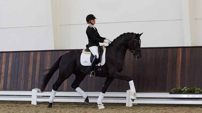 Bonjour, black stallion, Hanoverian, by Vice Bundechampion Bon Coeur (Benetton Dream/Sandro Hit) x Reserve Champion Fuerst Nymphenburg (Florencio/Hochadel) born in 2018, standing approximately 168cm or 16.2 hands. Premium stallion in Verden 2020 A majestic performance at the Hanoverian licensing earned Bonjour a place in the premium ring. "Beautiful and charismatic. In movement this stallion, clearly marked by his sire Bon Coeur, always presented himself in an uphill frame and super elastic", Heike Kemmer summarized the enthusiastic judgment of the licensing commission. With his outstanding paces and exceptional ground-cover, this jet-black stallion sets new standards. His sire Bon Coeur was premium stallion of the Hanoverian licensing in 2014. He finished his 30-day test in 2015 in Schlieckau with a dressage-focused end mark of 9.1. He completed his sport tests with scores of 9.0 and 8.9. As a three-year-old, he was Vice German Champion and Vice Regional Champion, as a four-year-old, he won the Hanoverian Regional Championship and was once again Vice German Champion. He won international competitions up to Inter I representing Sweden. He has produced around 25 licensed stallions, including the Oldenburg Champion Stallion Bellany and numerous premium stallions, such as Bon Courage, who was Vice German Champion of three-year-old stallions in 2019. His dam St.Pr.St. Fenja has also produced his full brother, the licensed stallion Bonfire HW, premium stallion of the Hanoverian licensing in 2019. His grand-sire Fürst Nymphenburg I, who stands at the Celle State Stud in Lower Saxony, was victorious in sport up to Inter II. He produced seven licensed stallions. The proven sires Hochadel and Carbid appear in the third and fourth generations of his pedigree. His great-grand-dam Chanel produced several internationally successful show jumping horses, including the licensed stallion Freigeist (by For Edition I) who was placed in 1.45m international show jumping competitions with Linda Heed/SWE. Quincy (by Quaid I)/Anika Kuhn was also placed in 1.40m show jumping competitions. Order by Post (by Quaid I) successfully competed for Great Britain in 1.35m show jumping competitions. From the dam line of the thoroughbred mare Princess Corvig xx also descend the 1.60m show jumping horse Lesthago (by Levisto Z)/David Will as well as further dressage and show jumping horses. Bonjour is licensed in Hanover, Holstein Global, Mecklenburg, Oldenburg, Rhineland, Southern German stud books, Westphalia WFFS Negative Bonjour is located at Helgstrand Germany.