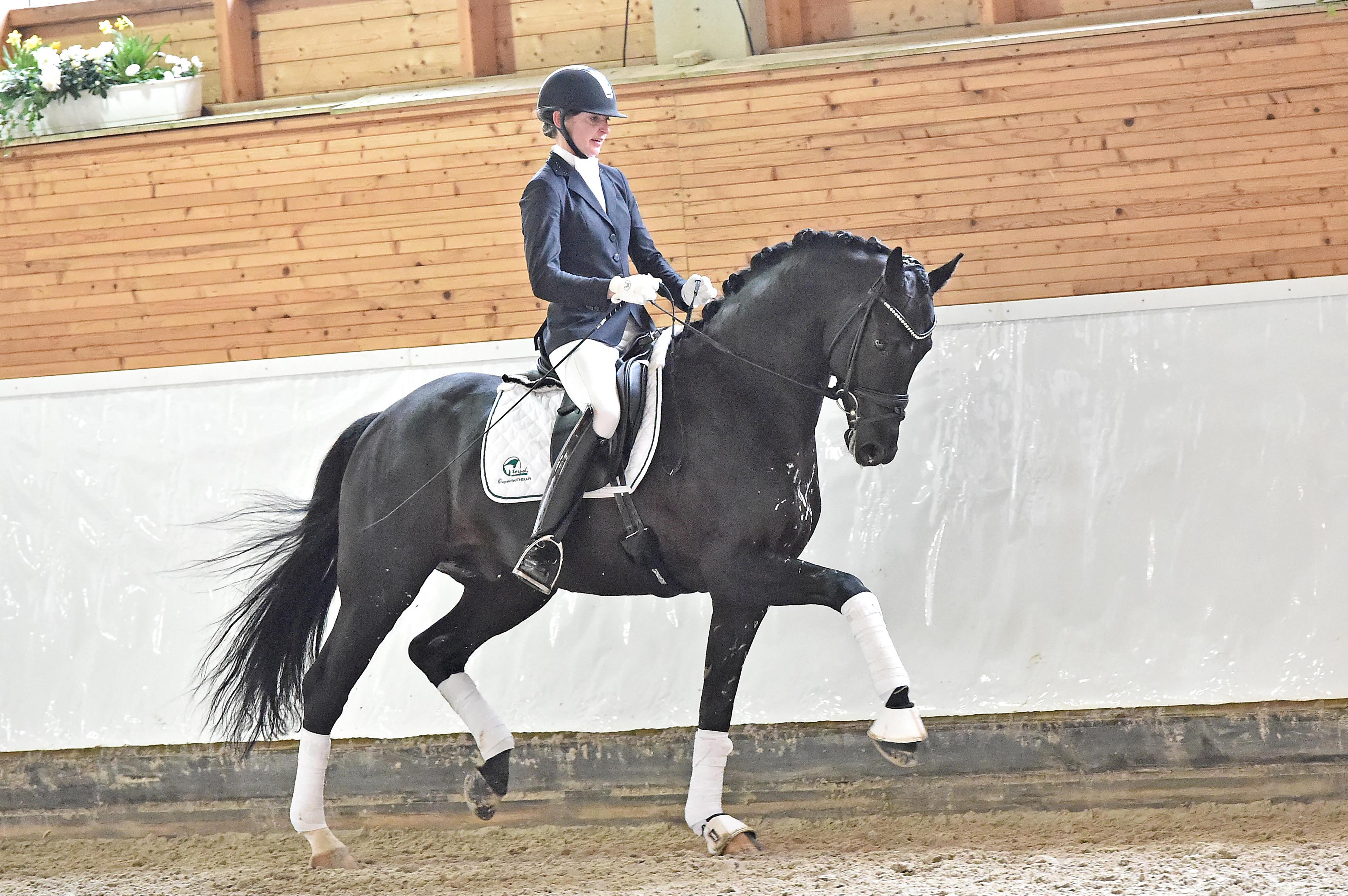 Hochelegant und mit schier unbegrenzten Bewegungsmöglichkeiten ausgestattet ist Bossanova ein echter Hingucker. Typbrillant von seinen blütigen Vorfahren geprägt, begeistert Bossanova mit spektakulärer Vor- UND Hinterhandmechanik bei größtmöglicher Elastizität durch den ganzen Körper. Er absolvierte einen hervorragenden 30-Tage-Test und sammelte Siege und Platzierungen in Reit- und Dressurpferdeprüfungen. In 2015 gewann er das bayrische Landeschampionat und qualifizierte sich zum Bundeschampionat der 5jährigen Dressurpferde. Bossanovas Vater Boston war Siegerhengst seiner Körung in England und wurde im Stall von Isabell Werth für den großen Dressursport vorbereitet. Mit Jazz, Flemmingh und Purioso verbindet er die erfolgreichsten und vererbungsstärksten Dressurvererber der Niederlande in sich. Hinter seine eigene Vererbung setzte Boston unter anderem mit dem NRW-Siegerhengst 2014 ein absolutes Ausrufungszeichen. Über den Halbblüter Balzac von Bream xx wird Bossanovas Pedigree mit dem nötigen Blutanschluss vervollständigt. Der Vollblüter Bream xx kann mit einer unglaublichen Nachkommen-Lebensgewinnsumme von 160.000€ und S-erfolgreichen Nachkommen in Dressur, Springen und Vielseitigkeit als einer der zuverlässigsten Vollblüter in der Warmblutzucht genannt werden. Alcazaro (v. Alcatraz-Moltke I-Marlon xx), PB Bad.-Wttbg., Baratti (v. Martell-Sahib/Ar.-Logarithmus) PB Rhld., Cabachon (v. Casall-Concerto II-Joost), PB Mecklbg., DK, Oldbg., intenat SPR erf. m. Ulrich Kirchhoff u. Katharina Offel, Caballino (v. Carinjo-Barinello-Ahorn Z) PB, Cameron (v. Coriander-Thuswin xx-Ganeff,) Holst. Verb., PB Sanh., Casa Grande (v. Cassini I-Landgraf I-Capriccio), PB NL, Cascado (v. Cassini I-Calimero-Thuswin xx) PB FRA, Cheenook (v. Caretino-Romantiker-Herbstglanz/T.), PB Holst., Hess., Chemnitz (v. Cassini I-Calimero-Thuswin xx) PB Holst., Consul (v. Caletto II-Martell-Logarithmus) PB Brdbg., Cornell (v. Corleone-Martell-Logarithmus) PB Hess., Cruise Missile (v. Caretino-Capriccio-Libretto) PB Hess., Fackeltanz (v. Favorit-Elegant-Falb) Ldb. Traventhal, Feldherr (v. Fleming-Moltke I-Marlon xx) Holst. Verb., PB Sanh., Sachs., Grundy‘s Sohn (v. Grundyman xx-Lagos-Ganeff) PB Bay, Heidewind (v. Heideläufer-Mackensen-Favorit) Ldb. Traventhal, Lancelot (v. Lorenzo I-Nestor) DE Holst, Lavaletto (v. Landgraf I-Marmor-Calypso I) Holst. Verb., PB Thür. LH Ldg. Marbach, Lenard (v. Ladalco-Moltke I-Marlon xx) PB DK, Liegnitz I(v. Lahnstein-Lehnbach-Favory AA) PB Sachs., Liegnitz II (v. Lahnstein-Lehnbach-Favory AA) PB Sachs., Linos (v. Landgraf I-Moltke I-Marlon xx, Holst. Verb., PB Holst., Lipton (v. Limelight-Martell I-Waldenser xx), PB SWE; internat SPR erf., Mackensen (v. Elegan-Zauberer-Kurt), Ldb. Traventhal, Naskari (v. Numero Uno-Askari-Caletto I) PB ITA, Neurit (v. Nekton-Lovari-Calato) Ldb. Moritzburg, Quintino (v. Quidam de Revel-Calato-Concerto II) PB BEL, Ramiro (v. Ramiro-Martell-Logarithmus) PB CZE, Ramsohn (v. Romantiker-Sterndeuter/T.-Logarithmus) PB NL, Rekord GL (v. Romantiker-Roderich-Martell) PB Rhld, Rhenus (v. Ramzes AA-Logarithmus-Heintze) PB Holst., Romantiker (v. Ramiro-Martell-Logarithmus) PB Holst., SWE, Romeo (v. Roderich-Sterndeuter/T.-Logarithmus) PB SWE. Bossanovas Fohlen überzeugen mit dem blütigen, modernen Auftreten des Vaters und spektakulärer Bewegungsmechanik.