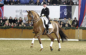 Breitling W, chestnut Hanoverian Stallion, by (Bismarek / Maat I) born in 1991, standing approximately 16.3 1/2 hands. Mass producer of top horses, Grand Prix winner and Bolero lineage preserver He's a breeding phenomenon. Despite only having been used sparingly for breeding purposes during his competitive career, Breitling W has sired a series of absolutely top-rate horses, clearly demonstrating his absolutely spectacular gene pool. His progeny have accumulated more than EUR 100,000 in lifetime competition winnings and include Burgpokal winner Blind Date, the mare that won the CHIO Aachen Small Tour in 2009. Baldessarini W has won Grand Prix classes and her full brother Balmoral W won international Inter I and Prix St. Georges classes as a seven-year-old, Bandor and approved stallion Bertoli W are already competing successfully in short Grand Prix classes and Biagotti W won the bronze medal at the World Championship for Dressage Horses in Verden in 2006 before going on to qualify for the Burgpokal in 2009. Today, he is competing at Grand Prix level. Berkeley W and Meggles Black Jack, Brioni W, Barilla W, Bicachu, Balalaika W are all successful advanced level competition horses. Breitling W has also produced numerous highly placed finalists at the Bundeschampionat and the World Championships. Another remarkable stallion by Breitling W out of a De Niro mare was licensed in Oldenburg in 2010. FN dressage breeding index leader in 2009, Breitling W has won dressage classes up to international Grand Prix level himself. His competitive achievements include 22 first prizes in advanced level dressage classes and a bronze medal at the German Championship. During his illustrious career, Breitling W has earned over EUR 130,000 in prize money. Owner: Wolfram Wittig, Rahden, Germany