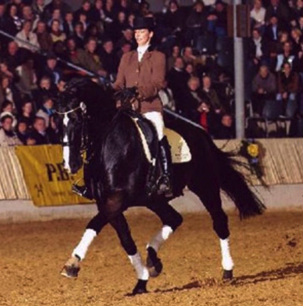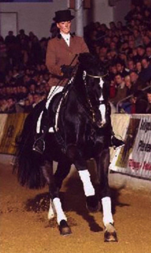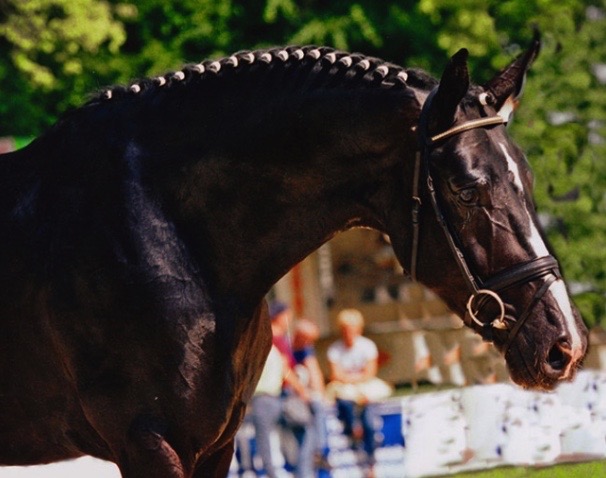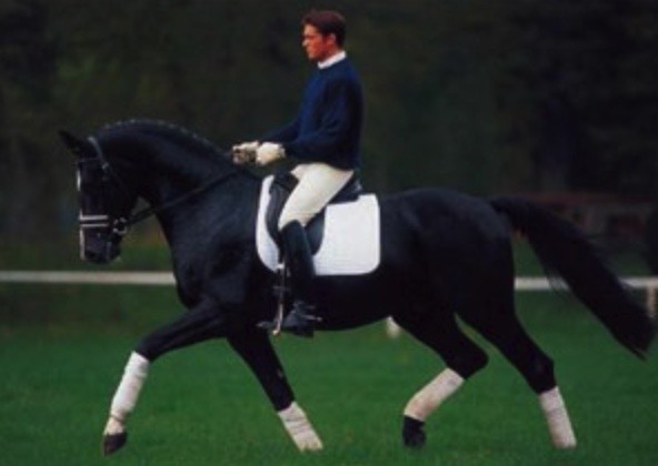 Dressage Royal, black Hanoverian Stallion, by Donnerhall/Rubinstein born in 1998, standing approximately 17.2 hands. Dressage Royal distinguished himself not only because of his excellent conformation, his unimpeachable character and his fantastic pedigree, but also through his own performances: high rideability, his basic gaits and his show jumping skills are of exquisite quality. This was confirmed by the testing committee and the test rider. His rideability for dressage was judged with 8.21 points, his show jumping qualities with a straight 8.00 during his stallion testing. Dressage Royal was fully trained to Grand Prix level and had show success in Germany as a young horse. In 2007 Dressage Royal (age 9) was ranked 15th in the top 1% of all dressage breeding sires in Germany. In 2018, Dressage Royal was ranked in the Top 10 (7th) of the top 1% of breeding stallions in Germany. His breeding value was 151 points assessed. In 2022, Dressage Royal was 24 years old and sadly passed away. Westfalian Licensed Originally owned by Herman and Dorit Kothe, the black Oldenburg bred Dressage Royal was first licensed at the 2000 Westfalian Stallion Licensing in Munster-Handorf, and between 2001 and 2002 he got approved for Hanover, Brandenburg and Oldenburg. He did his 30-day stallion performance test in March 2001 in Munster-Handorf and scored 8.21 for dressage and 8.0 for show jumping. He fulfilled his HLP duties through sport in 2002 and 2003. Sport Anja Hermelink was the first rider to compete him as a 3-year old in 2001. In 2002 Christoph Koschel took over the ride, but halfway through the season Ulla Hansen took over, followed by Ramon Dreyer. The latter rode the stallion to a fourth place at the 2003 Bundeschampionate in the 5-year old finals. In 2004 a show break followed, but Dressage Royal returned to the arena in 2005 under Sonja Franzenburg-Much. She competed him at L-level for a year. In 2007 he made a second come back to the arena under Hannes Krüger at L-level. Breeding Stallion Dressage Royal stood up for stud the majority of his life at his owner's yard, Hengsthaltung Kothe until the couple retired and closed their business. Martin Sprehe took over Dressage Royal and stood him at stud. As of 2018 the stallion spent his time at the "retirement" center Schemder Bergmark, where he enjoyed his quiet time outside and still covered a few mares live. "Because his general condition was deteriorating and the treating vets saw no way for improvement, the Kothe family decided with a heavy heart to put him to sleep," Martin Sprehe stated. Legacy Dressage Royal lives on through his offspring. He sired 4 licensed sons: Damsey, Doringcourt, Diesel CF, and UNO Don Diego - and 9 state premium daughters. Although Dressage Royal was not so much a "popular" breeding stallions, his exceptional Donnerhall x Rubinstein pedigree produced an impressive string of top dressage horses! He has 258 offspring registered for sport in Germany, of which 25 compete at S-level. Louise Leatherdale's Damsey FRH is his most famous son. Under Helen Langehanenberg the stallion won team gold at the 2017 European Dressage Championships and was third in the 2019 World Cup Finals. Other famous offspring are Grand Prix horses Dandy de la Roche (Antonella Joannou) and Dressman (Wolfgang Schade), the 2008 World Young Horse Champion and 2011 Nurnberger Burgpokal winner Desperado OLD, and FEI horses David du Plessis Belliere (Hana Vasaryova), Darek CH (Stephanie Hartmann), and Darius Rubin (Cesar Parra).