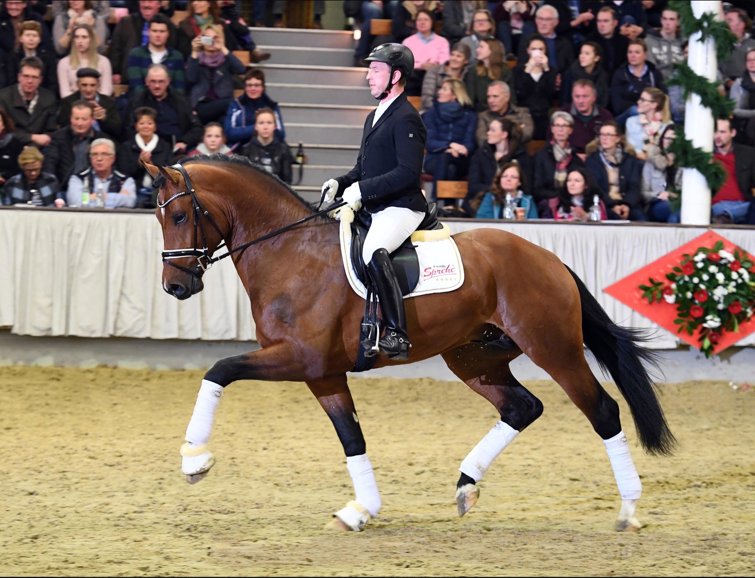 Erdinger, bay Westphalia Stallion, by Escolar / Contender born in 2014, standing approximately 16.3 3/4 hands. Stallion performance test winner 2017 A royal, masculine personality, large-framed and impressive, from the breeding of FC Bayern München trainer Hermann Gerland: that's Erdinger! Getting abundant applause, he trotted constantly in impressive self-carriage and rhythm on the lungeing-rein, giving all spectators the creeps that the shouts of joy seemed never-ending. An energetic stallion that convinces with always engaged hindquarters and great mechanic in trot as well as an uphill canter and a walk, supple moving through the entire body swinging in rhythm with the gait. In 2017, as expected, he was striking at his 14-day test in Neustadt (Dosse) where he finished the test as clear victor of the dressage index with top scores: a 9.5 for trot and an 8.87 in total. We eagerly await his first crop in 2018. The sire Escolar, who characterized Erdinger clearly, was twice Bundeschampion of young stallions under Hermann Burger in 2012 and 2013. In the meantime, he is victorious up to Inter I classes under Hubertus Schmidt. Just recently they placed second in the 2017’ Nürnberg Burg Trophy in Frankfurt. Everywhere, his offspring attract attention as far above-average dressage horses, who dominate the national championships and Bundeschampionate, and place their sire on a top position in the predicted breeding value statistics. The dam produced also the licensed son Puerto Rico (by Peking) and other dressage and show jumping horses for the upper classes, such as Davy Jones (by Don Laurie I) under Victoria Suppert, who succeeded internationally up to Inter II level, or Fernando (by Fürst Piccolo), who was finalist at the foal championship in Lienen and is now on the way into the grand dressage arena.