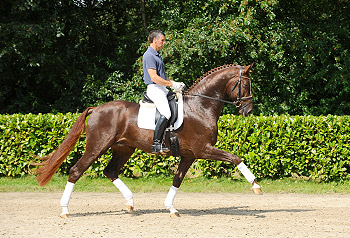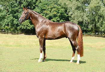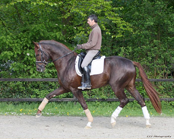 much presence in person, exceedingly high ride ability and super character. The dam of FLORISCOUNT is the Elite Mare “ARKONA” by DONNERHALL. She is creating her own stallion dynasty, having already had 3 licensed sons out of 6 colts born! The grand dam is the StPr/Elite mare “ARWALDIS” by “WALLDORF”. She was the reserve mare at Rastede in 1991 and was one of the highest priced riding horses after her first foal at the Vechta Elite auction in 1993. I see him as an excellent type to use for our market here, where we want to produce "rider friendly" horses in a nice type. His breeder/Owner’s website: www.gut-fuechtel.de