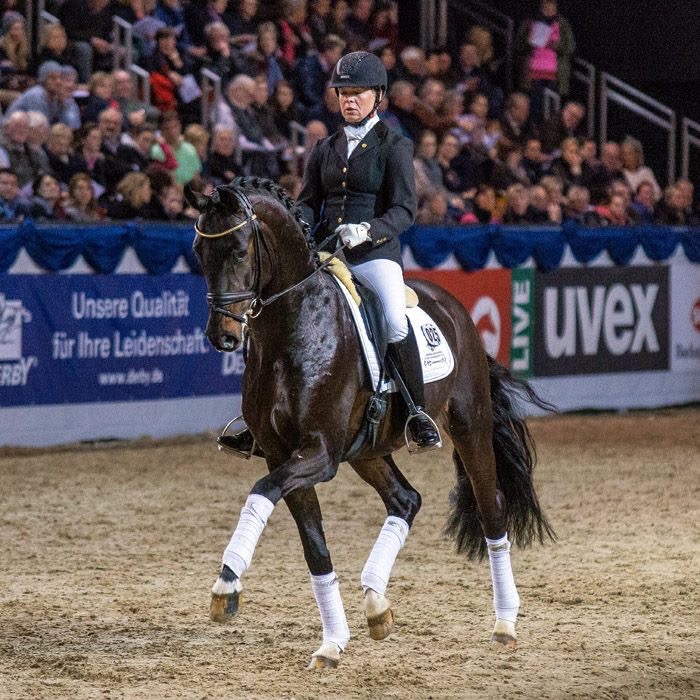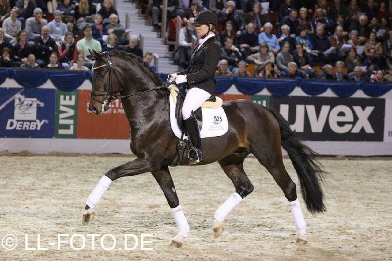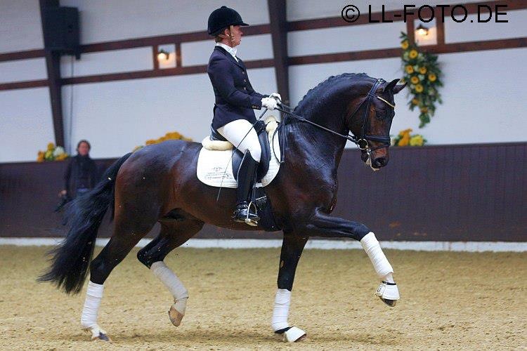 For Romance, bay Oldenburg Stallion, by (Fuerst Romancier / Sir Donnerhall II) born in 2009, standing approximately 17 hands. For Romance – the epitome of a model sire – and from a Voltaire dam line that has been accorded great success. Blessed with three excellent gaits, his canter and trot can only be described with superlatives and his character is also noteworthy. He stood out brilliantly in the strong lot of stallions at the 2011 Oldenburg Verband licensing and the enthusiastic spectators in Vechta gave him standing ovations. As expected, For Romance passed his 30-day test in Schlieckau with super scores. He received a 9.25 for his trot and rideability, a 9.0 for his canter and an 8.88 for character. In the third generation of his pedigree you find Don Schufro who took the Danish Champion title and won team bronze at the 2008 Olympic Games in Hong Kong under Andreas Helgstrand/DEN. He is also the sire of many champions. For Romance's dam line goes back to Voltaire, a Furioso II son who was well-known in breeding and sport the world over. This line is also the origin of the licensed stallions Dusty, Furinos and Platino as well as many international sport horses that were highly successful in show jumping as well as dressage. His sire, Fürst Romancier, was licensed in 2007 and made headlines just two years later when he took fourth place in the World Championships for young dressage horses in the class for five year olds and also fourth place at the Bundeschampionate in Warendorf. Matthias Alexander Rath has taken over Fürst Romancier's training. In 2012, For Romance’s full sister Fasine took the Oldenburg Champion Mare title – a feat that is so far unique in the history of the Oldenburg Verband. The dam's sire, Sir Donnerhall I, gained trademark status early on in his career. He was the 2nd Reserve Champion at his licensing, State Champion, the record-breaking winner of his stallion performance test, Vice World Champion of young dressage horses and Bundeschampion as well as the main premium winner of stallions with emphasis on dressage. More than 50 of his sons have been licensed. In 2010, three of his progeny took Vice Bundeschampion titles in Warendorf: Silbermond – the NRW Champion Stallion, Appassionata and the licensed Snap Shot. He has also siree numerous top auction horses. For Romance I has been honored as the VTV Oldenburg Dressage Stallion of the Year 2019 at the Oldenburg Stallion Licensing in Vechta, Germany, on Saturday 23 November 2019. This highly prestigious award is given to a licensed, Oldenburg stallion for his outstanding achievements in sport and breeding. On the occasion of the Stallion Gala, For Romance I OLD and Chap II was decorated with the VTV sash in the Oldenburg Horse Center Vechta. Heiko Meinen, head of the R+V VTV General Agency, which is specialized in insuring animals, once again took the opportunity this year to reward the breeder, as well as the owner by handing each of them a generous check in the amount of 1,000 euro for their great achievements in breeding. The splendid career of For Romance I OLD, born in 2009 by Fürst Romancier out of Gesina by Sir Donnerhall I - Don Schufro - Sandro - Gepard, bred by Gestüt Lewitz, and owned by Dressurpferde Leistungszentrum Lodbergen GmbH, was launched in 2011 when the Dressurpferde Leistungszentrum Lodbergen acquired the celebrated champion stallion of Oldenburg licensing on the Oldenburg stallion market. Carefully schooled by former auction rider Kira Wulferding and successful in dressage horse tests in classes A through M, this gorgeous stallion celebrated his first triumph in 2016 in advanced classes as well as a place in the top ten at the Nürnberger Burg-Pokal finals in the same year. In late 2017, For Romance I OLD’s further athletic development was taken over by Lodbergen’s head trainer, Therese Nilshagen. This year the pair won silver in both the Intermediaire II tests and the Short Grand Prix. “Romance possesses extremely good rideability and collection. Working together with our trainer Klaus Balkenhol, we now want to concentrate on making him stronger, making optimal use of his excellent hindquarters and work carefully towards Grand Prix sport. Although For Romance I OLD is in great demand as a breeding stallion, he is incredibly sweet and will do almost anything for a lump of sugar. He’s also extremely well-behaved, even when other horses are in the arena ” The 36-year-old Swedish trainer took bronze at the European Championship in Rotterdam this year with her other Oldenburg ambassador, Dante Weltino OLD. This black beauty is not just thrilling horse fans in sport. He’s also sired about 30 licensed and price-winning stallions, including the champion stallions Fashion in Black and Feuerwerk, the HLP champions Ferrero and Fidelio Royal and numerous premium stallions including For Final OLD, national vice-champion and third-place winner in the state championship, likewise stationed at Lodbergen. For Romance I OLD has also sired more than 80 premium mares and numerous championship winners. “His offspring inherit his lovely face, his outstanding typical beauty, his elegance, his rideability and his absolute determination to win”, reports Lodbergen’s manager Wolfgang Stagge. “Romance consistently succeeds in producing not just horses for pro riders but for amateurs as well, as his offspring are easy to handle but always come through when it counts ” For Romance I OLD is a full brother to premium stallion For Romance II, licensed in 2015 in Vechta, For Romance III, licensed in 2019 in Redefin, and champion elite mare and national champion Fasine OLD. He is also half-brother to 2015 Mecklenburg licensing champion Feinrich and to 2017 Oldenburg champion mare Fürstin Gesine by Fürst Heinrich. For Romance I OLD's dam line goes back to the renowned sire Voltaire.