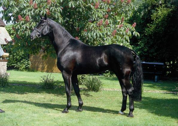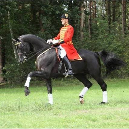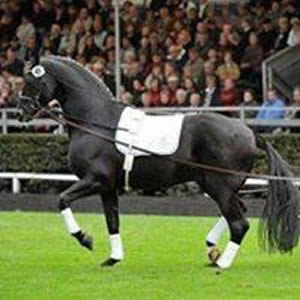 Hochadel, black Hanoverian Stallion, by (Hohenstein/Donnerhall [Donnerwetter]) born in 2000, standing approximately 16.3 hands. After a series of wins and high placings in the young horse tests, Hochadel won the 2003 Stallion Performance Test in Adelheidsdorf earning a perfect score of 10 for rideability. In 2004, he won the Hadelm Riding Horse Prize, and he has since become highly regarded as a sire having produced the licensed sons Hohenzollern, High Crusador, and Hochstern along with the 2010 Bundeschampionate bronze medalist of the 5 yr. old Dressage Horses, Horatio, ridden by Dorothee Schneider. Dorothee and Horatio placed fifth at the 2011 World Championships for the 6 yr. old Dressage Horses, and they recently placed a close third at the 2012 CDI4* Peterhof Dressur Gala in the Prix St. Georges Special scoring a 72.04%. Added to this, Hochadel can boast 55 State Premium Hanoverian daughters. Hochadel’s sire, Hohenstein I had a very successful career. He was named a Premium stallion at the 1993 Trakehner Licensing in Neumunster, and in 1994, he was the Reserve Champion of his performance test. In 1995, he won the Trakehner Championship in Cologne, and won the bronze medal at the Bundeschampionate in Warendorf. At the age of 6, Hohenstein won at M Level in dressage, and went on to the advanced S Level mastering Grand Prix. Aside from Hochadel, Hohenstein was the sire of many approved sons including Harvard, Hero, Hudson, His Highness, I Punkt, Tambour, and the Trakehner Licensing Champion, Munchhausen TSF. In 1999, the Trakehner Association named Hohenstein as an Elite Stallion, and in 2002 he was the Trakehner Stallion of the Year. Hochadel’s damline is also impressive boasting the legendary sire, Donnerhall, along with the lines of Lugano II, Woermann, Goetz, and Lugano I. The success of Donnerhall not only as an international Grand Prix horse, but as one of the most successful dressage sires of all time is well known. The sires Lugano II and his full brother, Lugano I are also tremendous. Lugano II's son, Lungau was the damsire of 4 Olympic horses at the Sydney Olympic Games. The jumper horse, Seven Up, and the dressage horses Brentina and Barclay, as well as the dressage gold medalist, Salinero all had Lungau as their damsire. Hochadel’s FN 2012 Breeding Value is a very impressive 146/93%, and he is well known for improving type.
