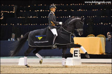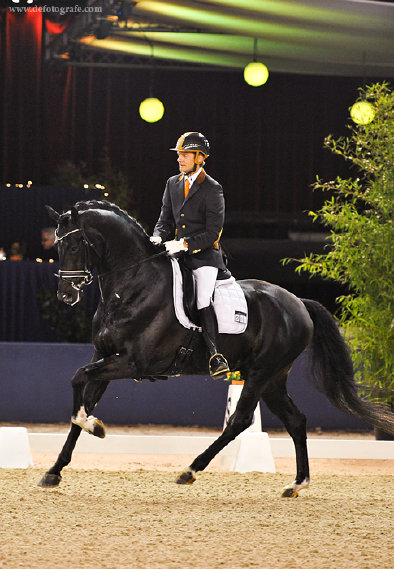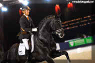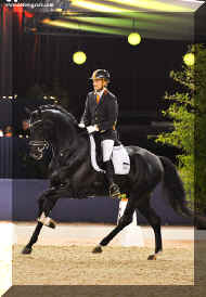 Jack Sparrow, KWPN Stallion, by (Johnson / Wolkentanz II [Don Primero]) born in 1989, standing approximately 16.3 hands. Blood beautiful, jet black and fantastic movements, this is the new top of Edward Gal! The young Oldenburg stallion Jack Sparrow (Johnson x Wolkentanz II x Don Primero) has now moved into the dressage stables Werner & Gal in Harskamp. 's son Johnson has presented himself very well during his inspection at the Süddeutsche Sattelkörung Marbach on October 6, 2010, he had seen it about three very good gaits and was to have with his impressive and spectacular hind. Breeder of the stallion's Hugo Schmid Gall from Wüstenrot.Edward Gal about his new stallion: "I am delighted that a horse like Jack Sparrow on my way. It's a horse, as I want. Bloedmooi, big, strong, intelligent, very willing to work and also a great mover. I'm really looking forward to the future with this great horse. I am sure that with this top back many wonderful things can go see it. " Edward Gal will President's Jack Sparrow to The KWPN stallion selection proposals. Van Dongen & de Roo BV Rhoon main sponsor of President Dressage Stables, the possible purchase of this stallion and wants Edward and his team to a fantastic career with this new addition! President Jack Sparrow on to the second viewing! 24/11/2011 Yesterday, after the final presentation of the stallions in the performance test, the first visit took place for stallions born in 2008 and earlier. President Jack Sparrow (Johnson Wolkentanz x II x Don Primero) has participated in this successful under his rider Edward Gal and was invited to the second round. For this second round of the stallion is to be participated in the Stallion Competition. After the league decides the GMB KNHS / KWPN stallion or stallion nominated for the third round. Hengelo: President's Jack Sparrow takes first win! 30/11/2011 Johnson son Jack Sparrow was last week during the first viewing of the KWPN Stallion Competition for the designated trajectory. Exactly one week later did the sturdy black all the profit in the first league to claim.Ridden by Edward Gal was the sire of the President Stables Wednesday in Hengelo to a handsome score of 85 points, which he in the L section more than the winner. Edward Gal was laughing the ring: "I am very happy with that, but even though Jack Sparrow exploded, so to speak, then I have been happy. I know what I'm for horse and it's a horse with a lot of quality. I really feel I have a couple of years with a wink to piafferen. "Jack Sparrow remained in the L-section for KWPN stallion Chippendale (Lord Leatherdale x Negro), ridden by Severo Jurado Lopez and the Oldenburg Chicago approved MH (Vivaldi x Montecristo), which was proposed by Jonna Schelstraete. Video President's Jack Sparrow and Edward Gal Stegeren November 23, 2011 Video President's Jack Sparrow and Edward Gal Hengelo November 30, 2011 Bloedmooi, gitzwart en fantastische bewegingen, dat is de nieuwe topper van Edward Gal! De 4-jarige Oldenburger hengst Jack Sparrow (Johnson x Wolkentanz II x Don Primero) heeft inmiddels zijn intrek genomen op dressuurstal Werner & Gal in Harskamp. De zoon van Johnson heeft zich zeer goed gepresenteerd tijdens zijn keuring op de Süddeutsche Sattelkörung Marbach op 6 oktober 2010, hij liet daar zien over 3 zeer goede basisgangen te beschikken en viel op met zijn imponerende en spectaculaire achterbeengebruik. Fokker van deze hengst is Hugo Schmidgall uit Wüstenrot. Edward Gal over zijn nieuwe tophengst: "Ik ben heel blij dat een paard als Jack Sparrow op mijn pad komt. Het is een paard, zoals ik ze graag wil. Bloedmooi, groot, sterk, intelligent, ontzettend werkwillig en ook nog eens een super beweger. Ik heb erg veel zin in de toekomst met dit fantastische paard. Ik weet zeker dat we met deze topper weer heel veel mooie dingen mogen gaan meemaken.” Edward Gal zal President’s Jack Sparrow aan de KWPN hengstenkeuringscommissie voorstellen. Van Donge & de Roo B.V. te Rhoon hoofdsponsor van President Dressage Stables heeft de aankoop van deze hengst mogelijk gemaakt en wenst Edward en zijn team een fantastische carriere toe met deze nieuwe aanwinst!