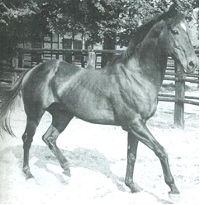 Pik Bube, brown Hanoverian Stallion, by (Pik Koenig / Frustra II) born in 1973, died 1991 standing approximately 16.3 hands. Pik Bube was himself a successful sire in his own right, but