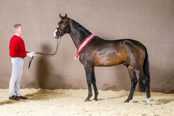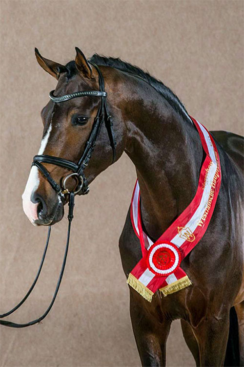 Rock For Me brown Westphalian Stallion (Rock Forever I/ Florencio I [Florestan I]) born in 2011, standing approximately 16.3 hands. Rock For Me is a highly modern stallion with riding horse points that can only be designated absolute extra class and blessed with a talent for movement– and much admired by the licensing committee as well as the spectators. Right from the beginning he took the pole position in the lot of high quality competitors and has meanwhile been approved for breeding in Hanover and Oldenburg. Rock For Me is by Rock Forever I, Reserve Champion Stallion, Westphalian Champion, Vice Bundeschampion, Burg Pokal third and fourth in the German Championships for young riders. Through the dam’s sire Florencio I as well as Longchamp (by Lauries Crusador xx) and the trademark Trakehner stallion Caprimond, the best performance bloodlines flow through his veins. The time-tested dam line is the origin of the licensed stallions Chatman, Lifeclass, Lauscher, Ray Ban, Avus and Maximilian as well as the advanced (S) level dressage horses Crazy Dancer, Fabriano, Ascot, Andric and Norell.
