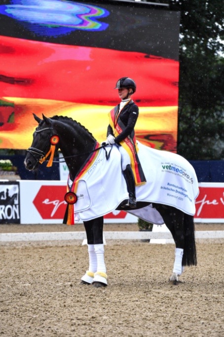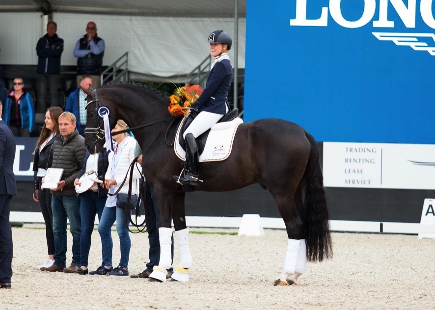 Secret black Baden Württemberger Stallion by (Sezuan / St. Moritz [Sandro Hit]) born 2014, standing approximately 16.3 3/4 hands. The secret "Secret" has been revealed ... this posh youngster was undoubtedly a very special addition to the station. Due to his outstanding type brilliance as well as his exceptional potential for movement, this son of the triple world champion Sezuan is an absolute exception. Three basic gaits in equal measure of high rarity value - step, trot and gallop of the highest quality. This stallion grew up very gently and causes open mouths from the first moment. Hard to beat rideability values complete this impressive model. The very first appearance under the saddle caused a veritable hype far beyond the country's borders. Large advance laurels, which was to be confirmed. But even these high expectations fulfilled Secret effortlessly, as he finished with a dressage end note of 9.5 in Schlieckau. He was able to shine again at the Bundeschampionat in Warendorf, where he was "only" voted Vice Bundeschampion due to the foreign rider scores. A thoroughly controversial decision, because of all the rideability values (Fremdreiternote & Richter) from Schlieckau, there with the grade 4 times the 10.0 rated, could not have been better. Father Sezuan is a celebrated triple world champion of young dressage horses and undoubtedly belongs to the most sought-after dressage horses of the present under Dorothee Schneider. Not to mention the upcoming future in the big square. Both his breeding and his sporting career is marked by highlights. Also in the course of his licensing and in the performances during the World Championships, only scores between 9.5 and 10.0 were awarded for his basic gaits. Thus, he was the title of world champion of young dressage horses 5, 6 and 7 years old undisputed sure. A recipe for success that is second to none - the Secret line's dam line, strain 853 of Sudette, produced numerous internationally recognized performance horses. In addition to this sire, there are already 38 more licensed stallions from this dam line. As a motherfather, we find St. Moritz, who in his unfortunately too short effect on the Gestüt W.M. brought forth a whole series of interesting, sporty, and successful offspring. The maternal pedigree is rounded off by the tried-and-tested combination of successes of the Celler studs Rotspon, Argentan, Woermann and Lugano. The figurehead of this dam line is the latest addition to the Bundeschampion of five-year-old dressage horses and the reigning world champion of six-year-old dressage horses Lordwood's Dancing Diamond under Anne-Kathrin Pohlmeier. Due to the genetic blood combination of the extra class in this flagship pedigree paired with the high performance of this rough diamond we offer the experienced dressage horse breeder of today thus a very special offer.