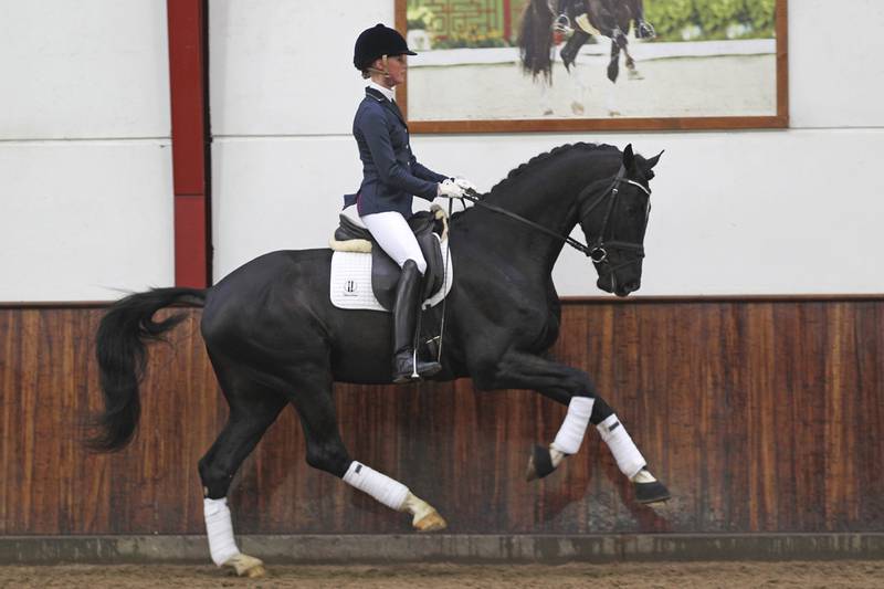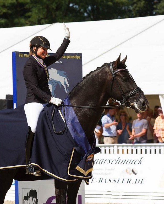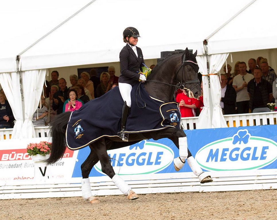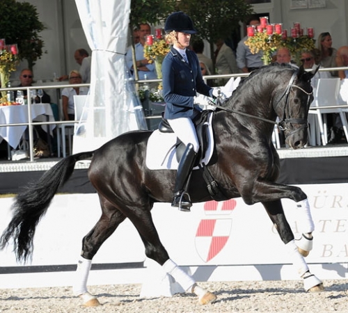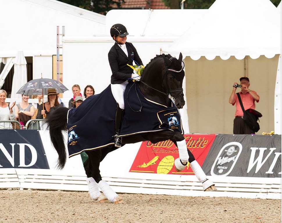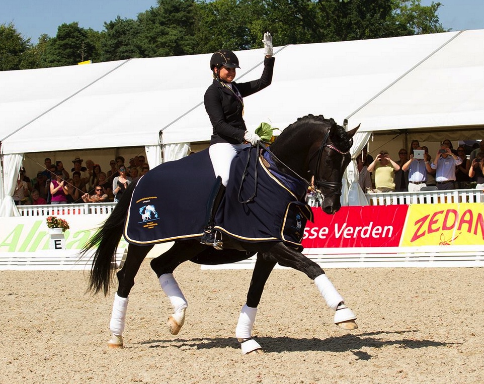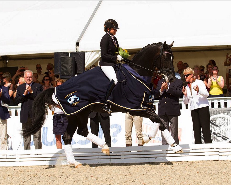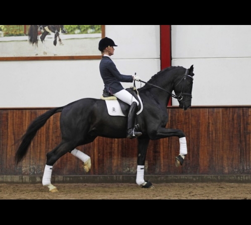 Sezuan, black Danish Warmboold Stallion, by (Zack / Don Schufro) born in 2009, standing approximately 16.3 hands. Sezuan: Triple World Champion!!! The 2013 Danish Warmblood Stallion Champion and the winner of Aage Ravn's trophy for best Danish-bred dressage stallion. Sezuan passed his stallion performance test in 2012 in Denmark with scores never awarded before: He was actually given the highest possible score of 10.0 ten times! In 2013 Sezuan continued his victory march and became the Danish Champion Stallion with 10.0 for his walk and canter and 9.5 for his trot. Already as a 3-year-old stallion, he won many European dressage experts' hearts with his outstanding gaits and high rideability, and as a result he became one of Europe's most popular young stallions. Following this, he went on to become the best four-year-old dressage horse in Denmark at the competition in Odense. Here he was again awarded the dream score of 10.0 for his trot, canter and willingness to perform and 8.9 for his walk. With a total of 9.68, the title was rightfully his. Following his WC-gold win in 2015 with the dream mark of 10.0, Sezuan is now a double champion as in 2016 he won the qualifier for the WC-Final of seven-year-old dressage horses with a final score of 9.52. His rider Dorothee Schneider said of his win, "Everything was perfect. Sezuan is simply a "limelight hog", he wants to be the best, he wants to please." From Sezuan's first crop of foals, the already highly recognized Oldenburg premium sire, Sam, and elsewhere throughout Europe his foals are setting high, new standards. One progeny, the colt Sirocco was auctioned off for a record-breaking price of 74,000 euros in 2014, and the filly Schwarze Schwalbe Macohl became the Danish Foal Champion of 2015. In recent years, his sire Blue Hors Zack has proven his value as a breeding stallion with several approved sons and successful progeny. Blue Hors Zack's pedigree combines extremely valuable bloodlines through Rousseau, Jazz and Belisar and he himself was a Champion Stallion not only in the Netherlands but also in Denmark. In 2015 he was able to celebrate victories up to Inter I level with Daniel Bachmann Andersen of Denmark. Sezuan's dam, Don Romina (by the world-famous Don Schufro who won OL-bronze under Andreas Helgstrand as part of the Danish national team) received the Danish Warmblood's breeder gold medal and was nominated best dressage mare of the year in 2006. Sezuan's grand dam is the bronze medal mare Laina. Unrivalled winner of the performance test with 987.50 points, Sezuan made history when he obtained a record breaking result of 10 x 10.00, meeting the high expectations given him. As a 3-year-old stallion, he won many European dressage experts' hearts with his outstanding gaits and high rideability, and as a result he became one of Europe's most popular young stallions. In recent years, the sire Zack has proven his worth as a breeding stallion with several approved sons. Sezuan's dam, Bøgegårdens Don Romina (by the world-famous Don Schufro, who won Olympic bronze under Andreas Helgstrand as part of the Danish national team) received the Danish Warmblood's breeder medal in gold and was nominated best dressage mare of the year in 2006. The grand dam is the bronze medal mare Bøgegårdens Laina. Breeding is not a coincidence and we are looking very much forward to Sezuan's first offspring. Sezuan is approved in Danish Warmblood and acknowledged in several German breeding associations, including the Oldenburger Verband. Sezuan - Weltmeister der 6jährigen Dressurpferde - WORLD CHAMPION 5 year olds, with Dorothee Schneider, in 2015
