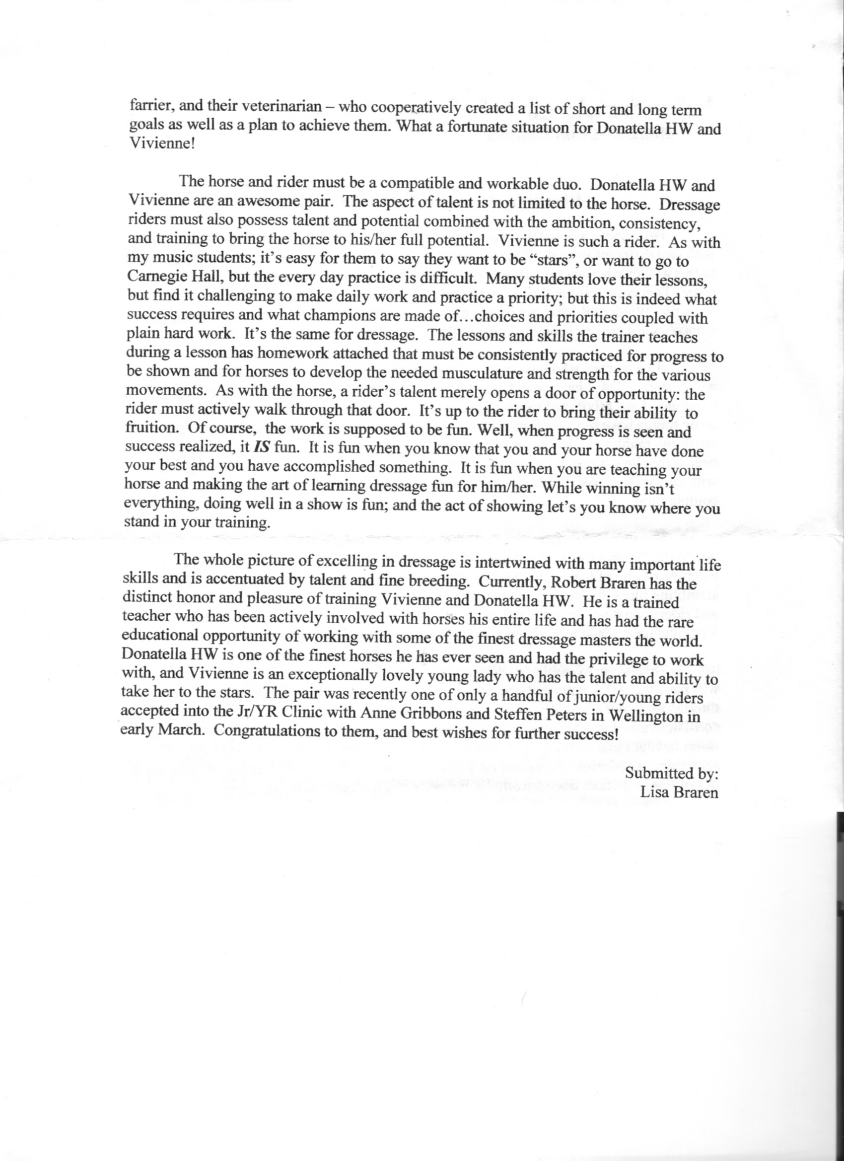 HW, Vivienne Wiederhold and their trainer Bob Braren as well as a huge thank you