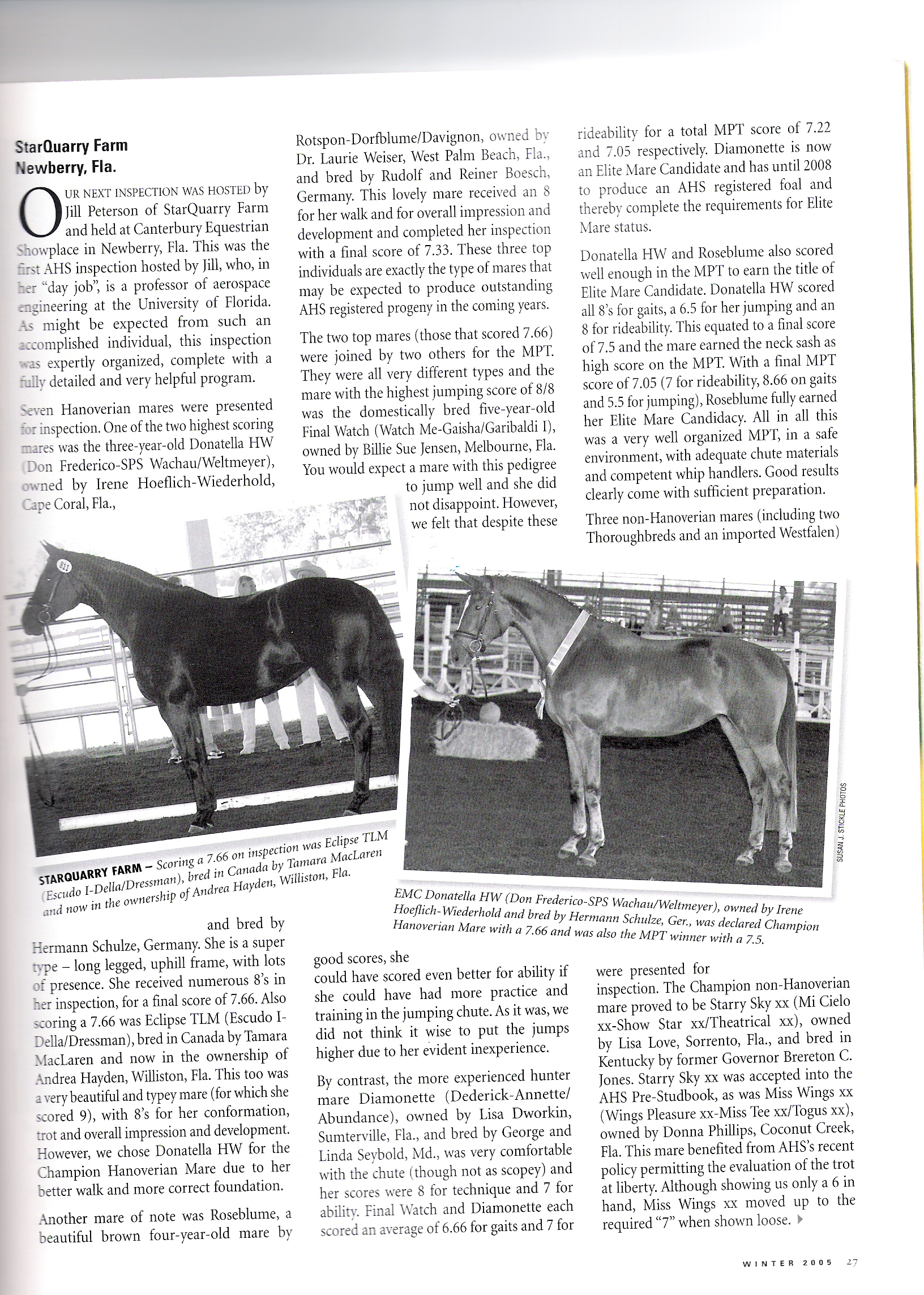 in their Breeder’s Guide, Stallion Directory, Mare Book. She is a New