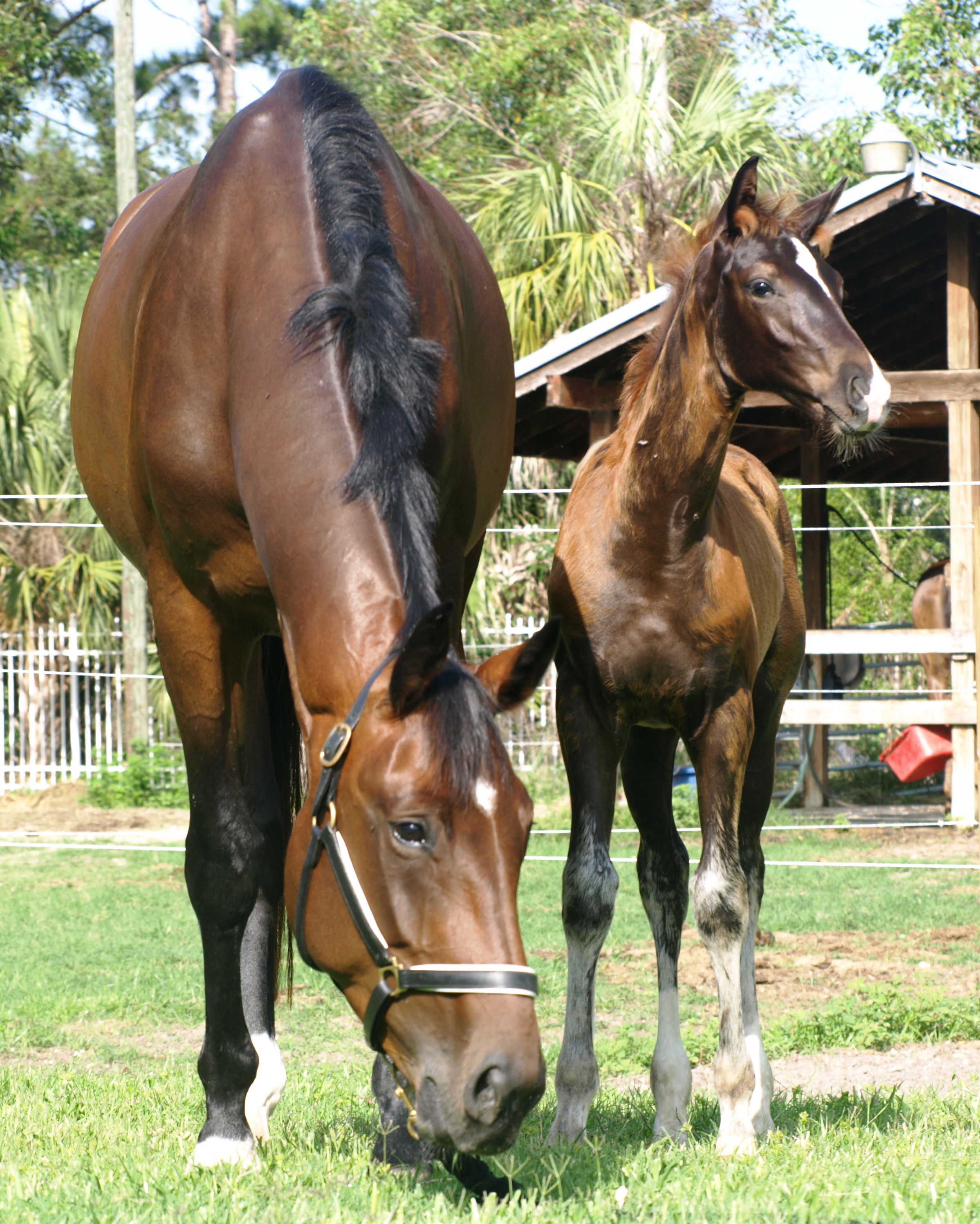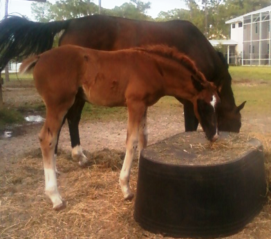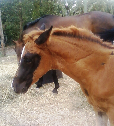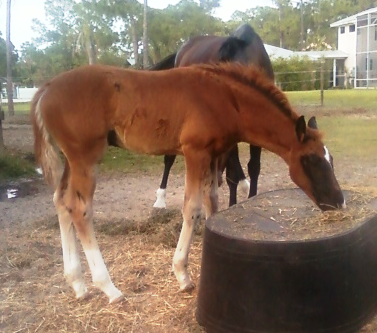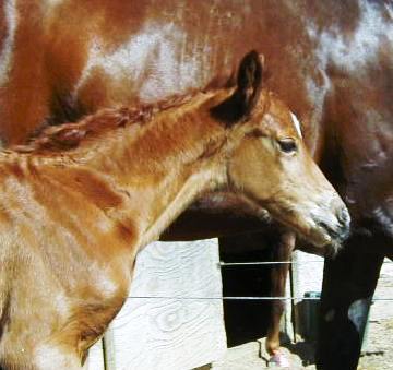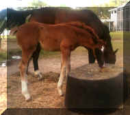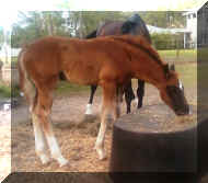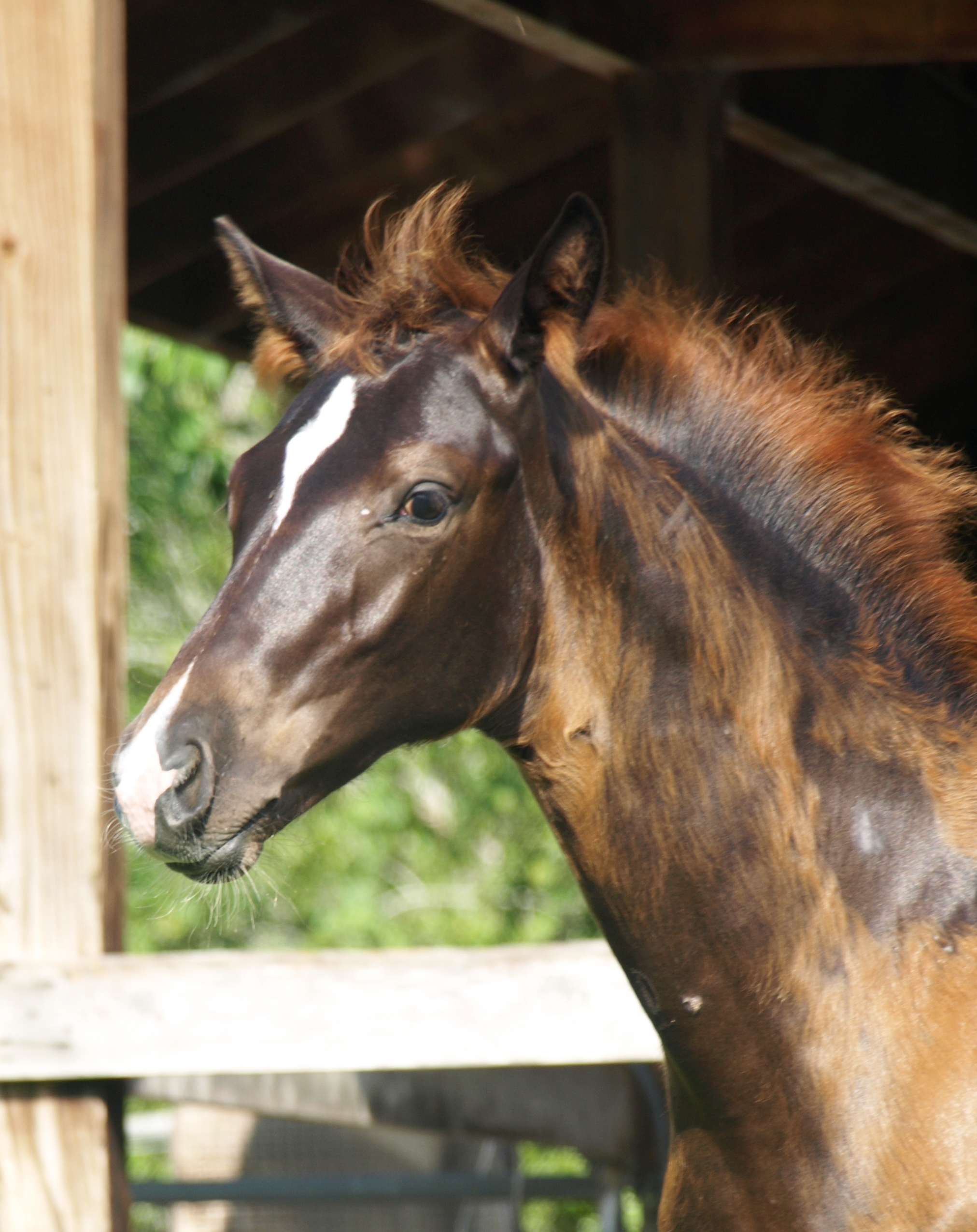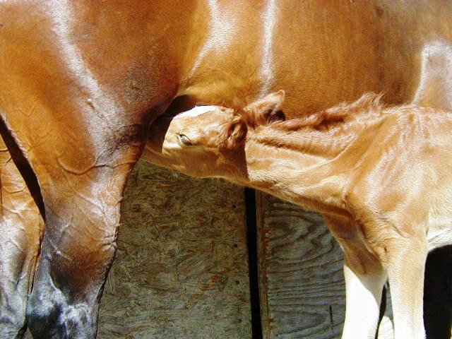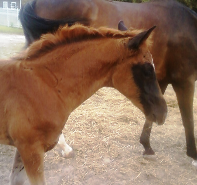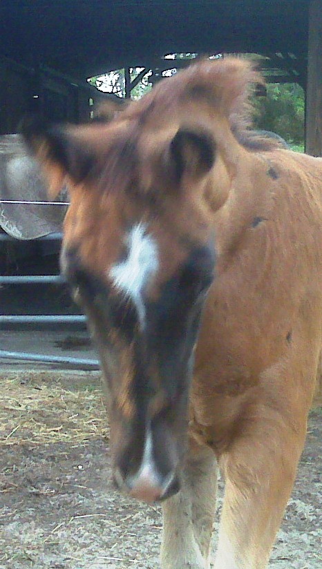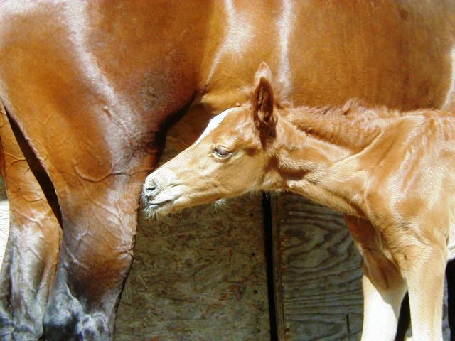 And here he is shedding out super rich liver/chocolate chestnut, he looks nearly black – wow, what a color! Excuse the picture quality….camera phone, we were in a hurry like usually! lol Here is the boy, one week old: February 25th, 2009: