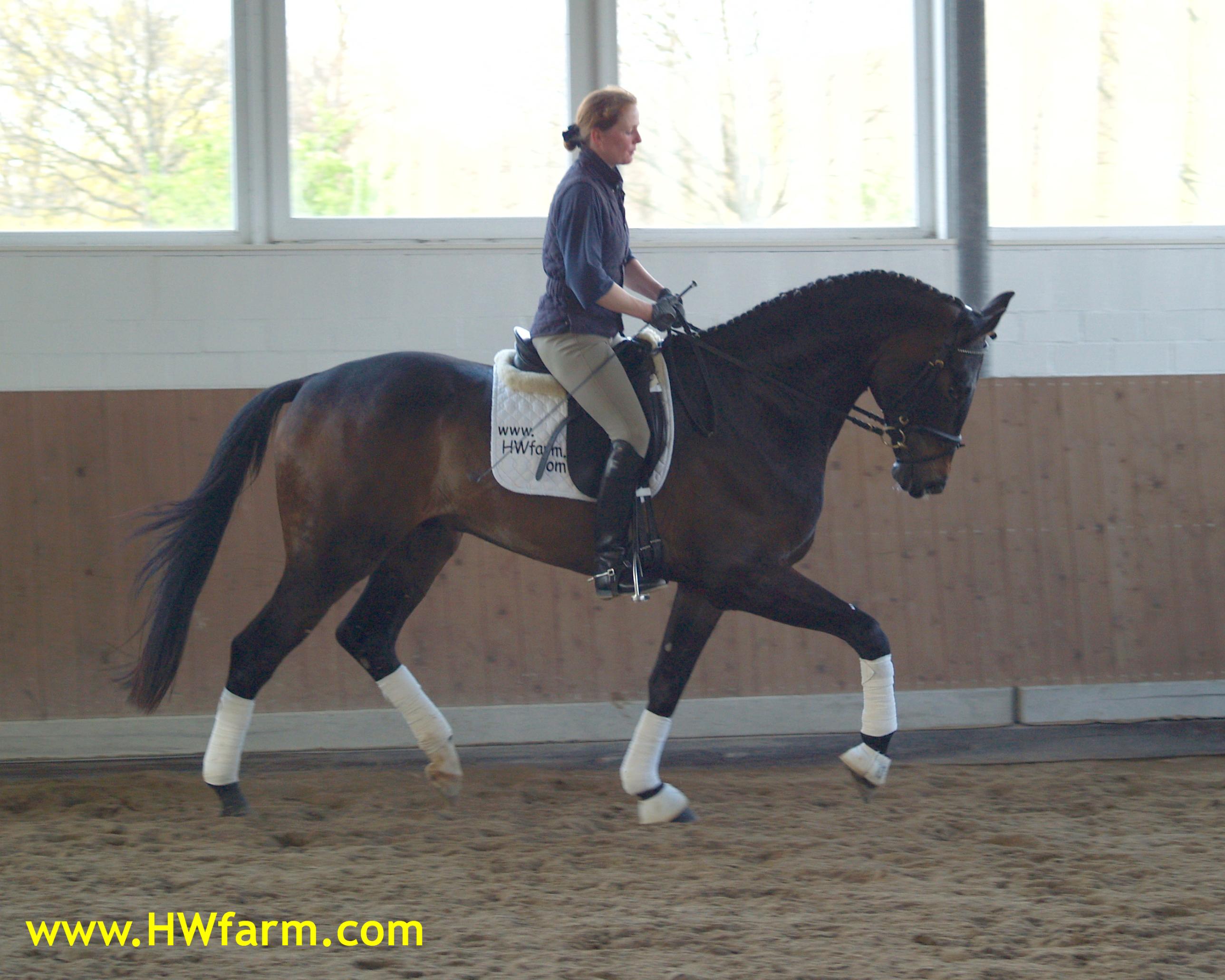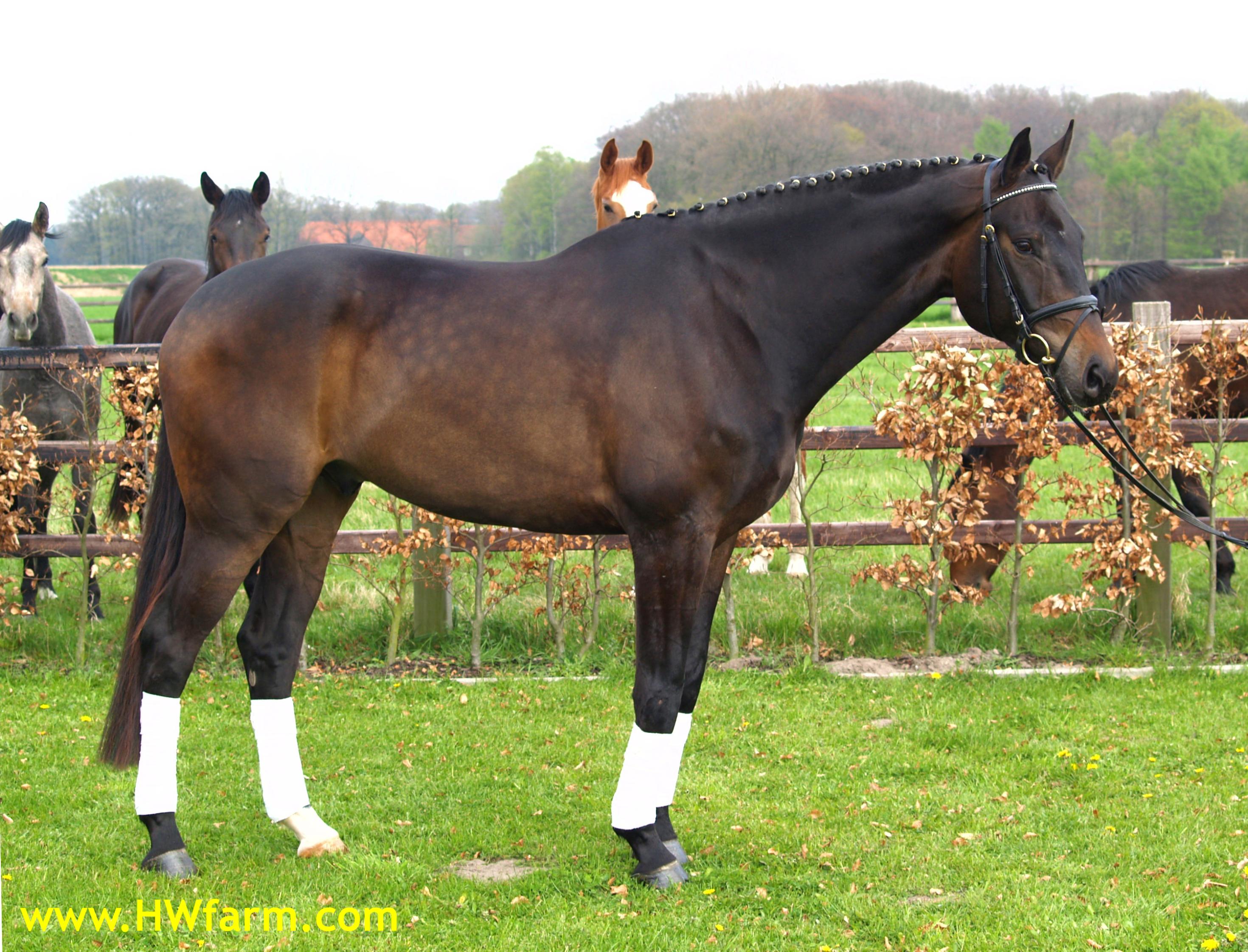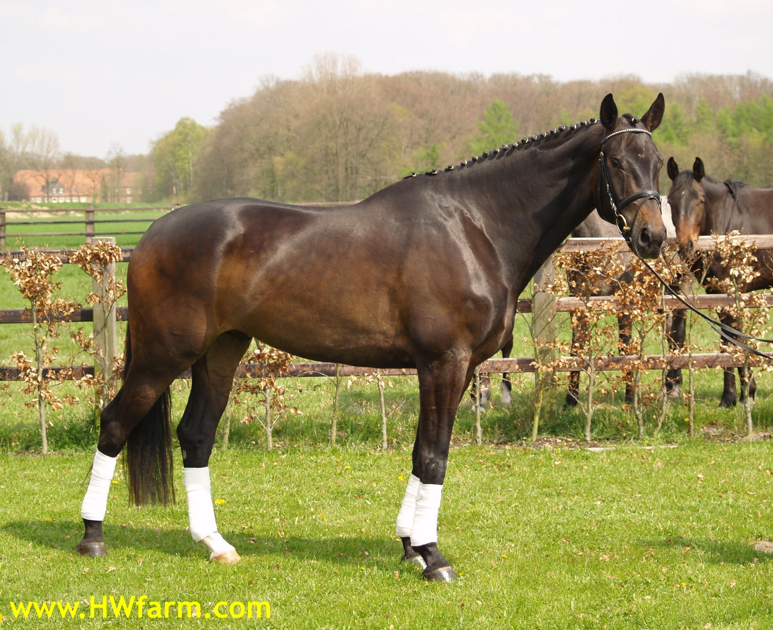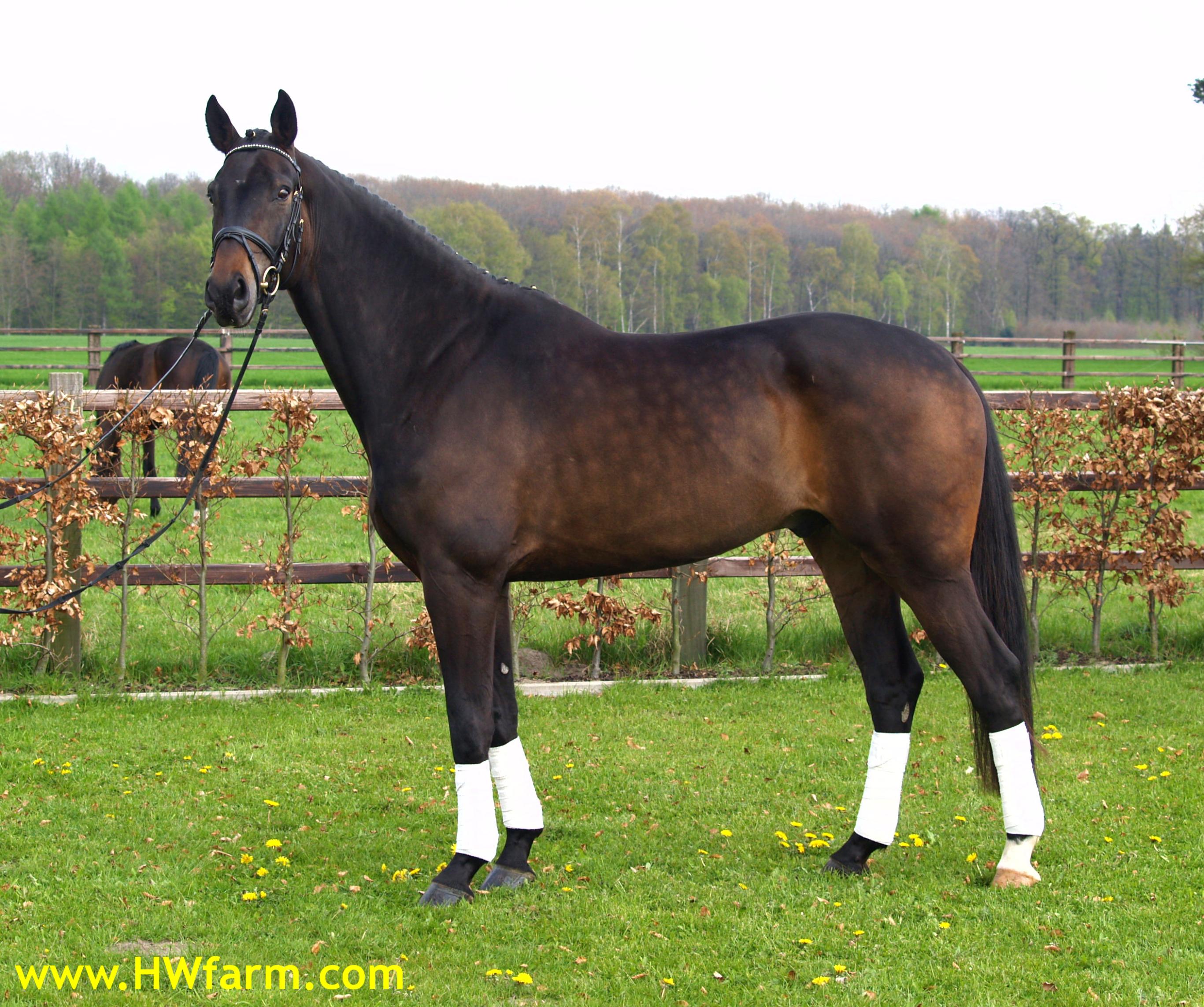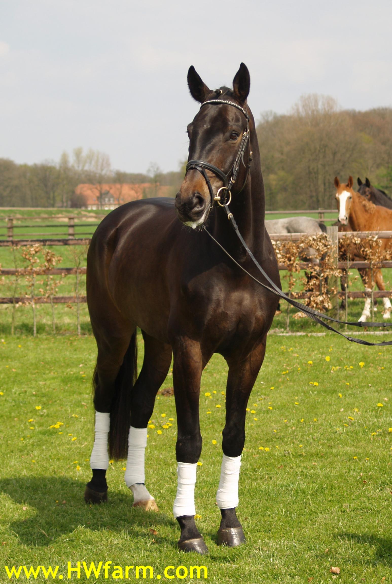 Sagenhaft HW, dark bay Hanoverian gelding by Sandro Hit, out of SPS High Princess (Hohenstein/Donnerhall/Bolero), born May 2003,standing approximately 17.3 hands.