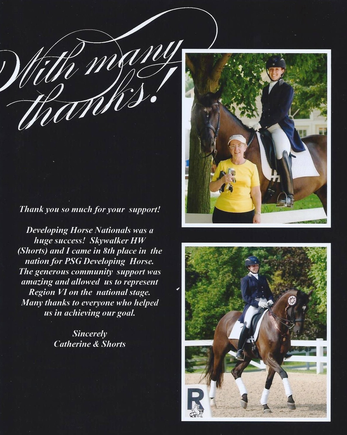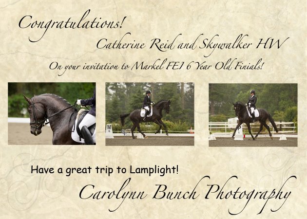 September 28th, 2015: Skywalker HW is 2015 GAIG Region 6 USDF Intermediare 1 OPEN Champion! …honestly, we can’t believe either, that he’s already 9 years old, he was just a 6 month old baby at our farm! Time truly flies. Catherine Reid posted: So super proud of Shortaroo (aka SkyWalker HW). I can't believe he is 9yo already!! Maybe there *will* be a GP horse in there :-)
