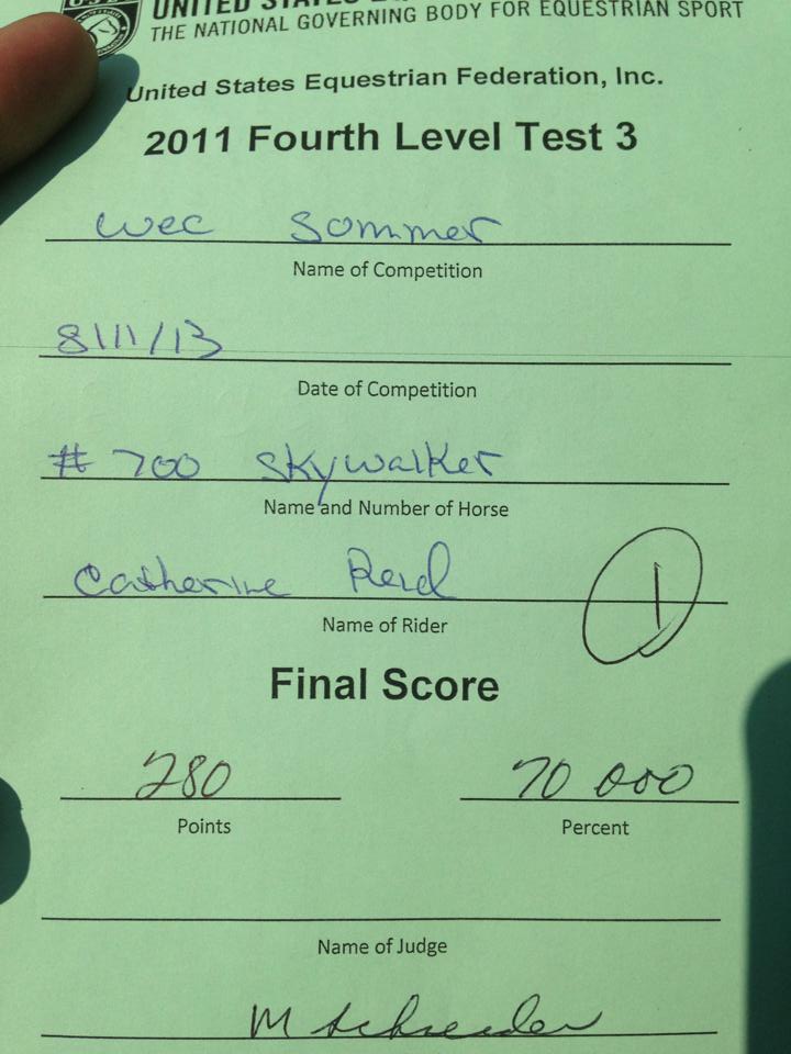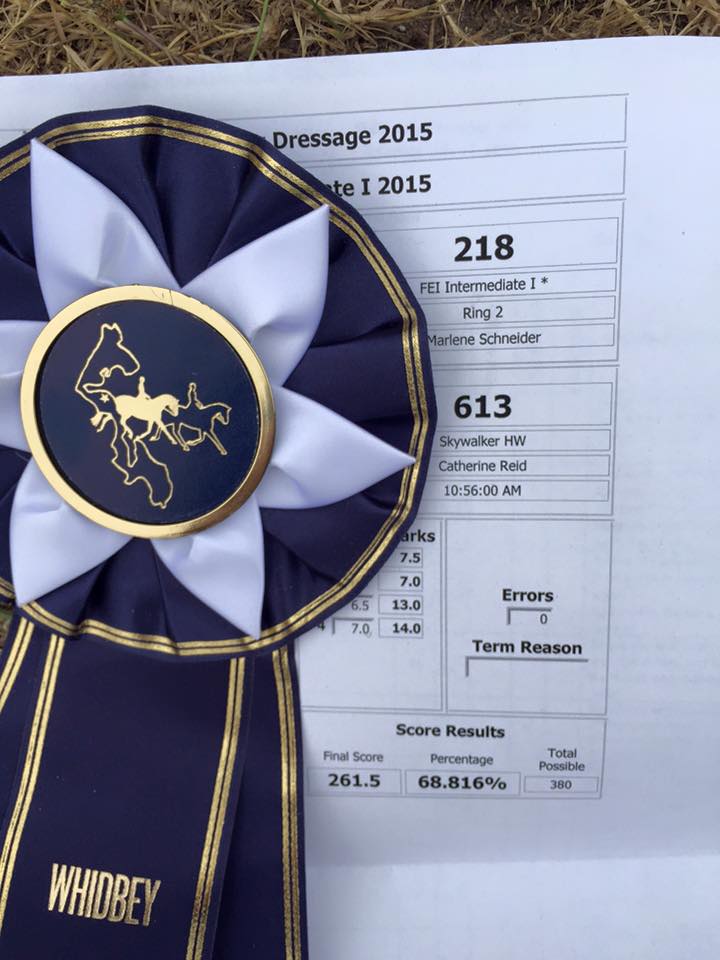 August 9th, 2015: Congratulations to this super team, Catherine and SkyWalker HW Catherine Reid posted: Great show at WEC this weekend 70.78% in the I-1 today!!!! Finally broke a 70 at FEI-- and still room for improvement. Super proud of SkyWalker HW