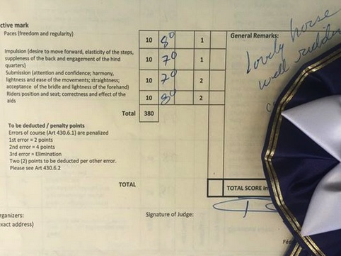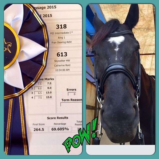Catherine Reid posted the following about her ride with SkyWalker HW, more congratulations are in order: 69.6% and 1st in the I1 today... So close to hitting a 70% at FEI Costly mistakes in the 2s (doing 1s DOESN'T get you bonus points?!? ?) and one pirouette Still, proud of my little black donkey ??